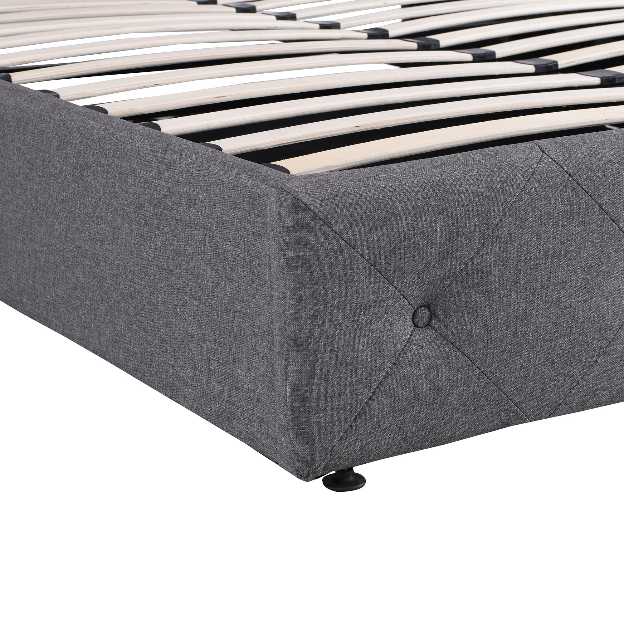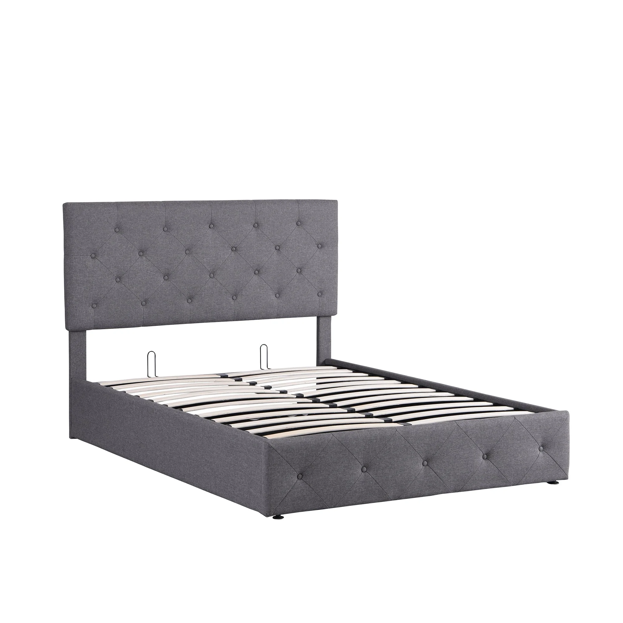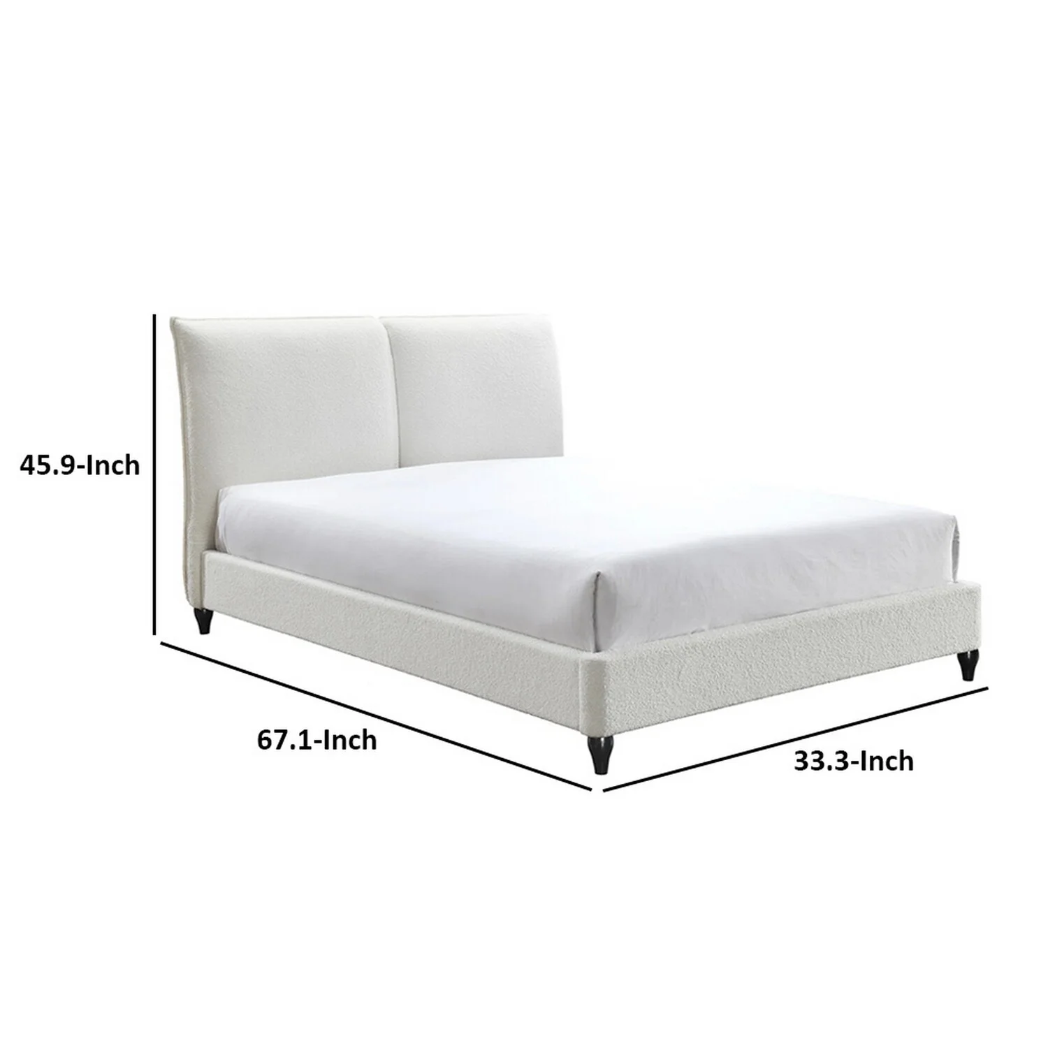 Benjara Sage Queen Size Bed, Low Profile, Cushioned Upholstered Headboard, Charcoal