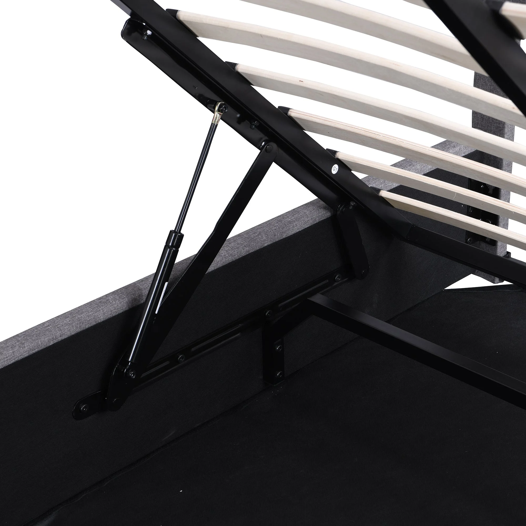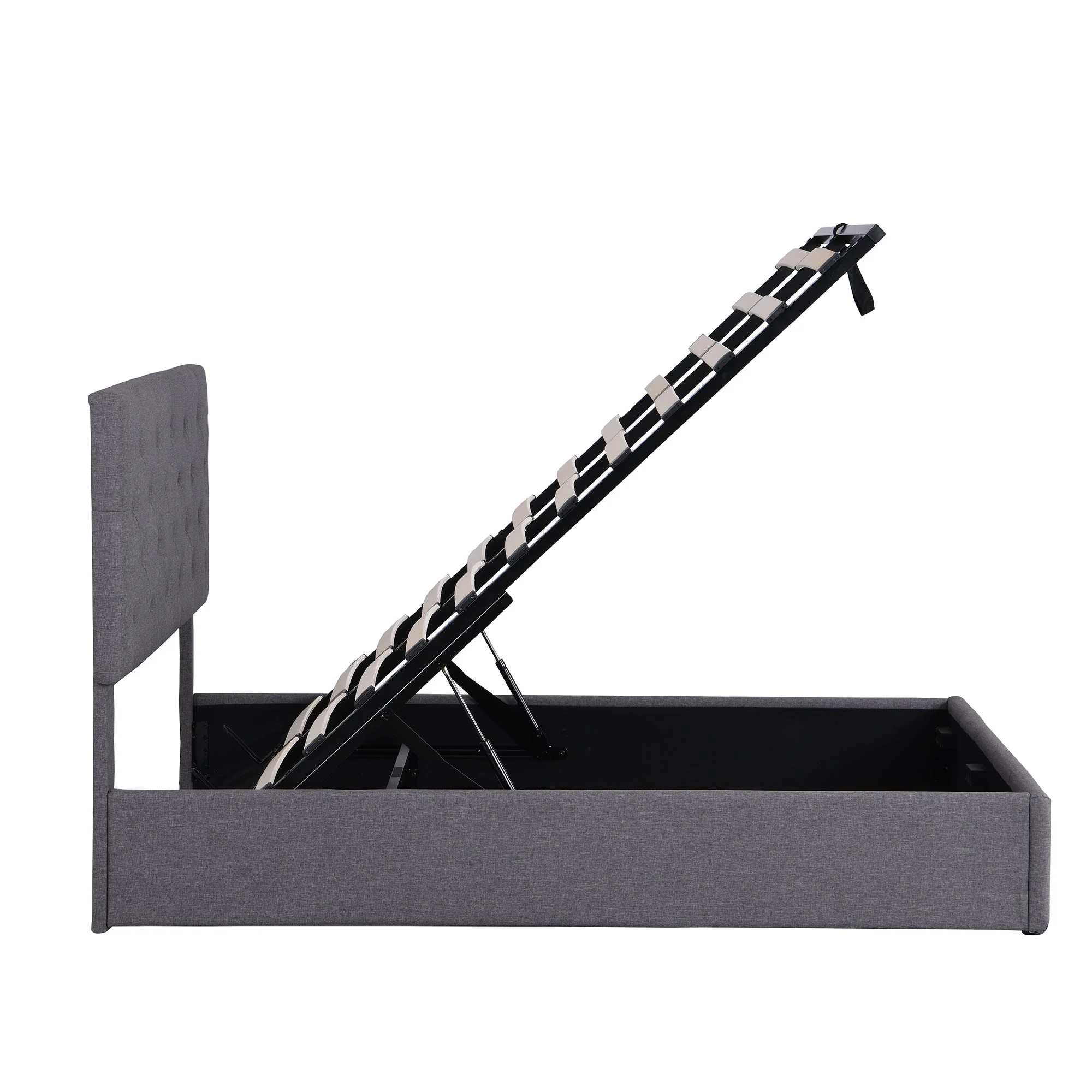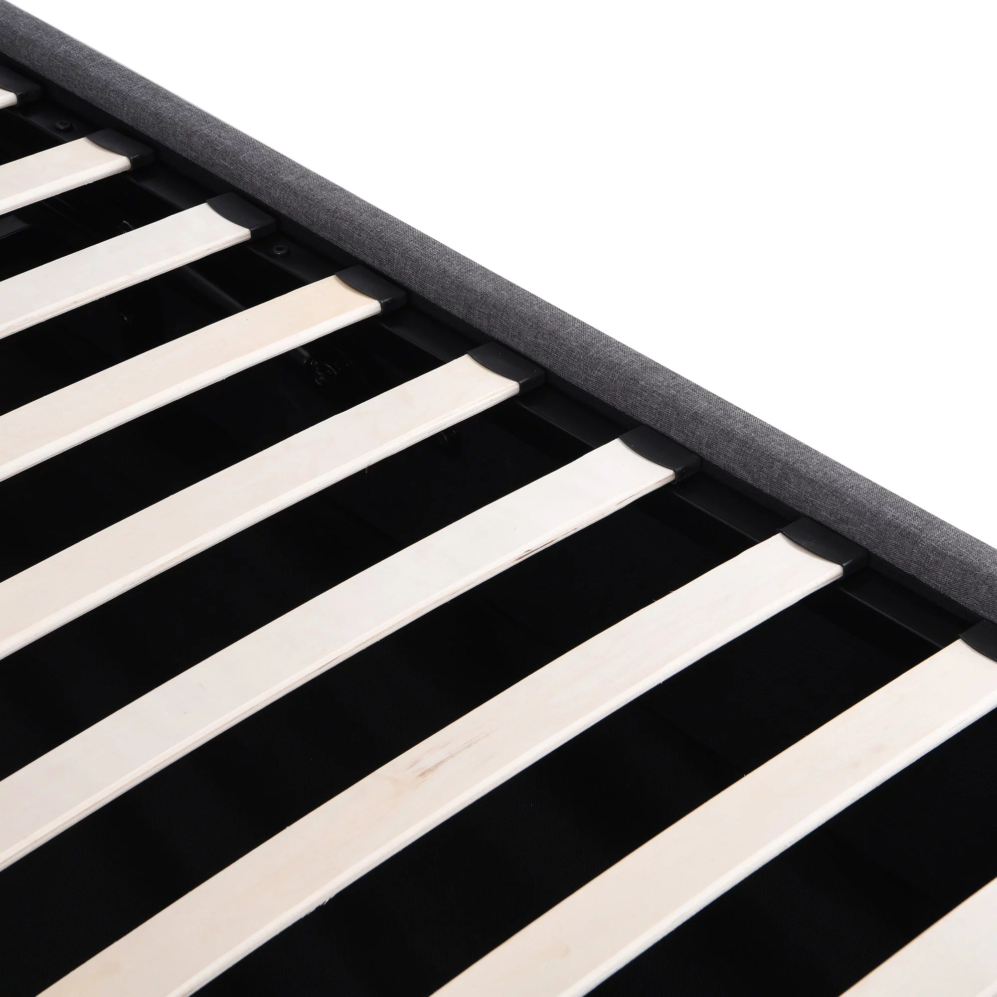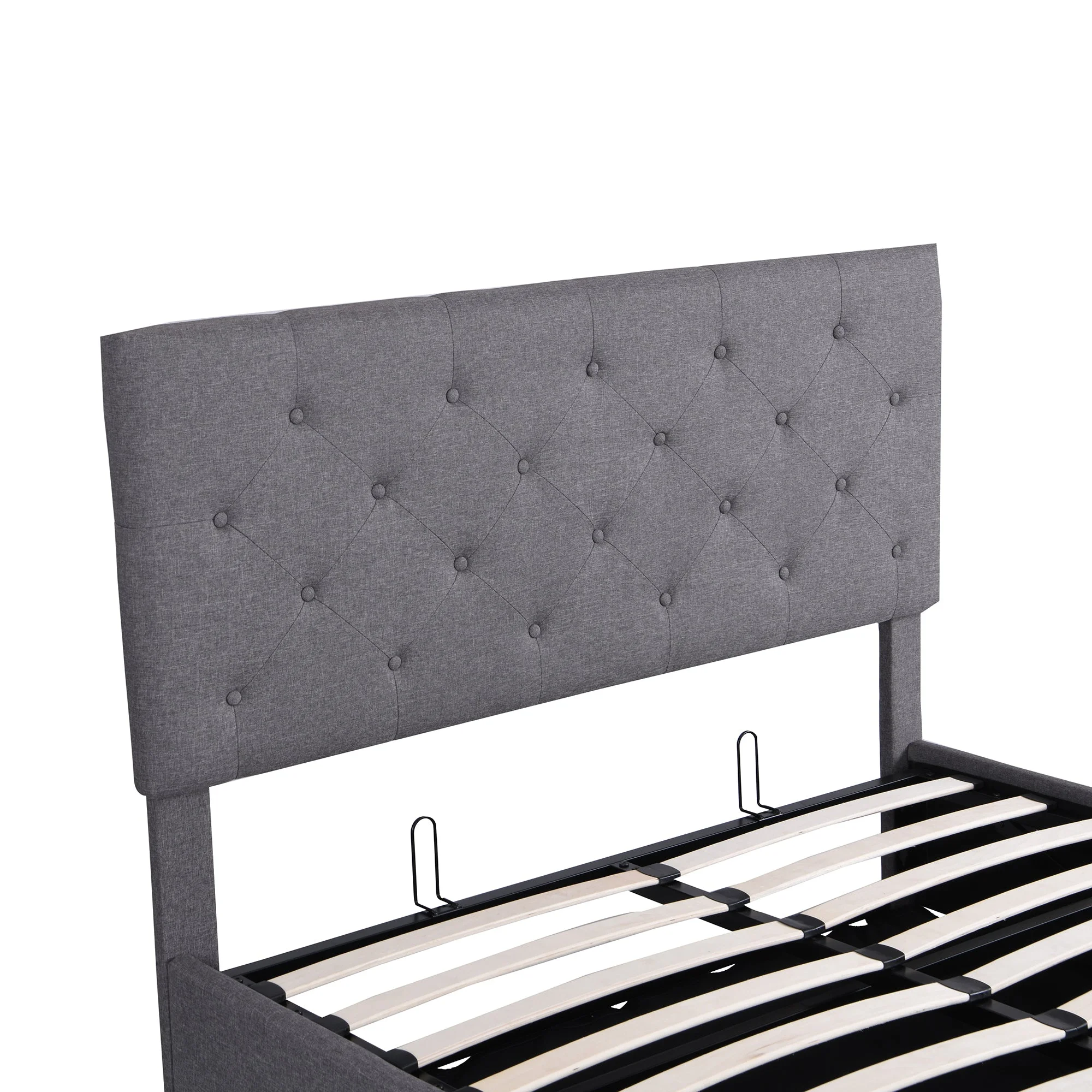 Benjara Sage Queen Size Bed, Low Profile, Cushioned Upholstered Headboard, Charcoal