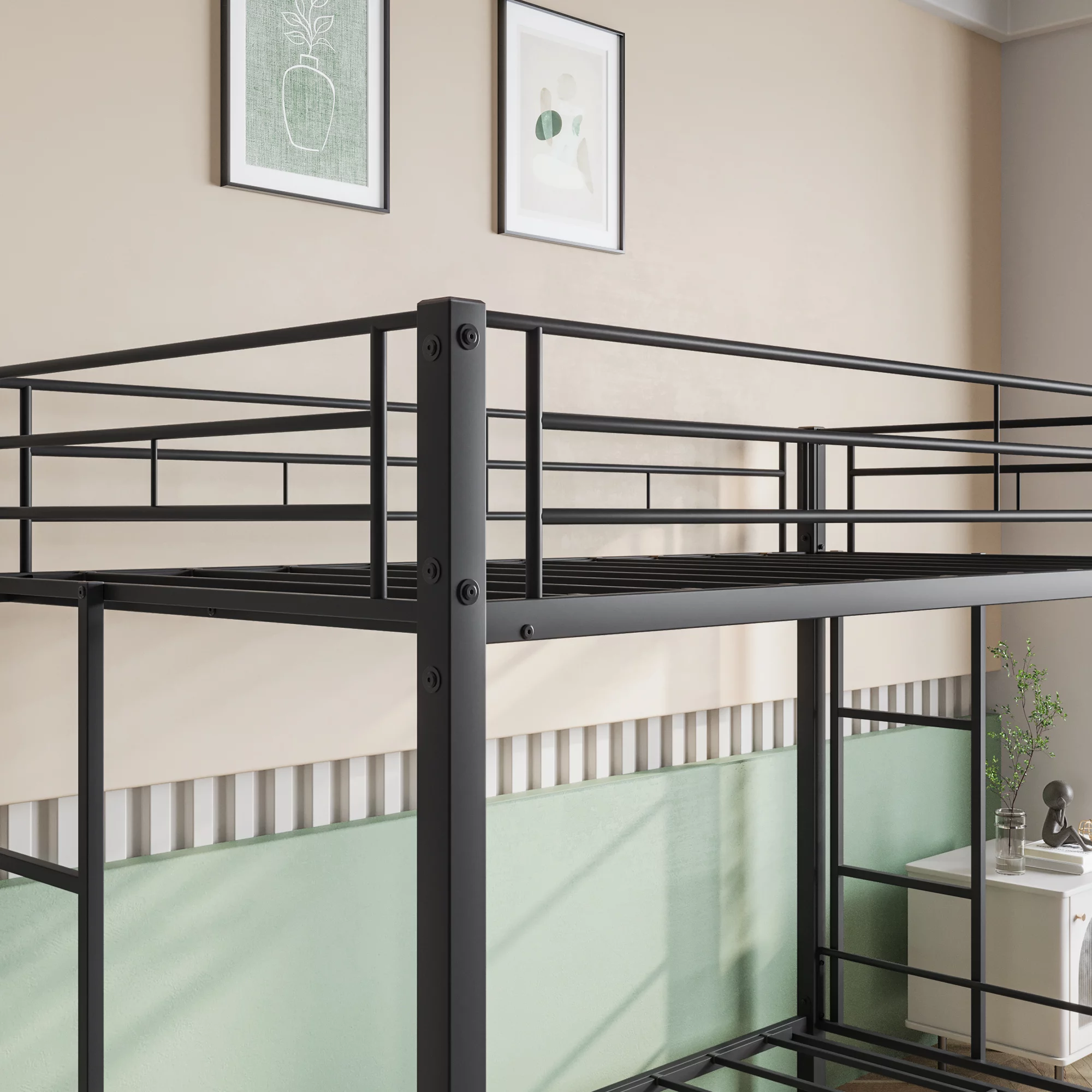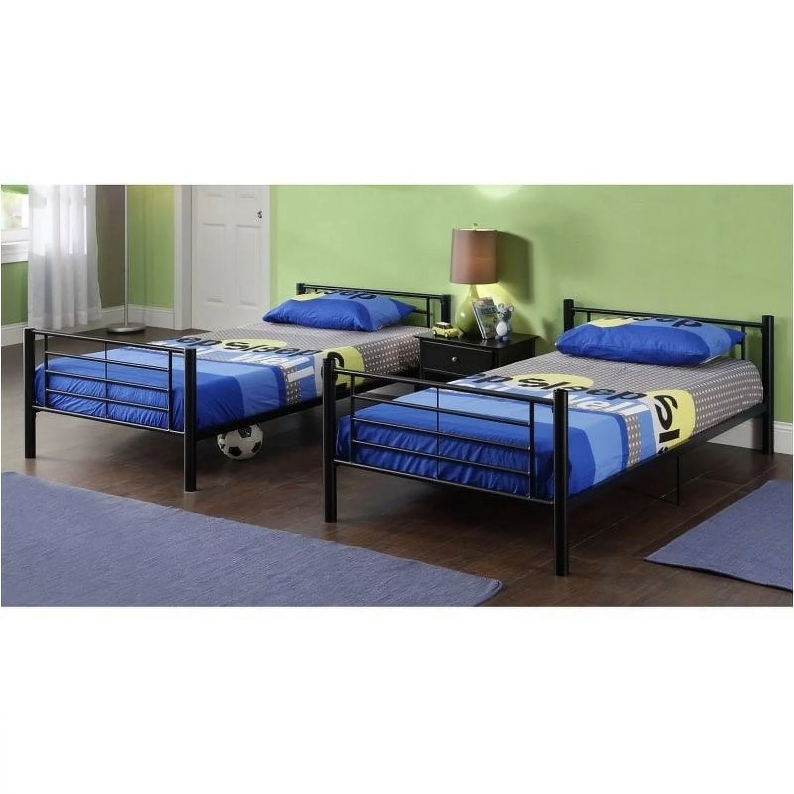Metal Bunk Bed Twin Over Twin, Heavy Duty Twin Bunk Beds with shelf and Slatted Support No Box Spring Needed Black