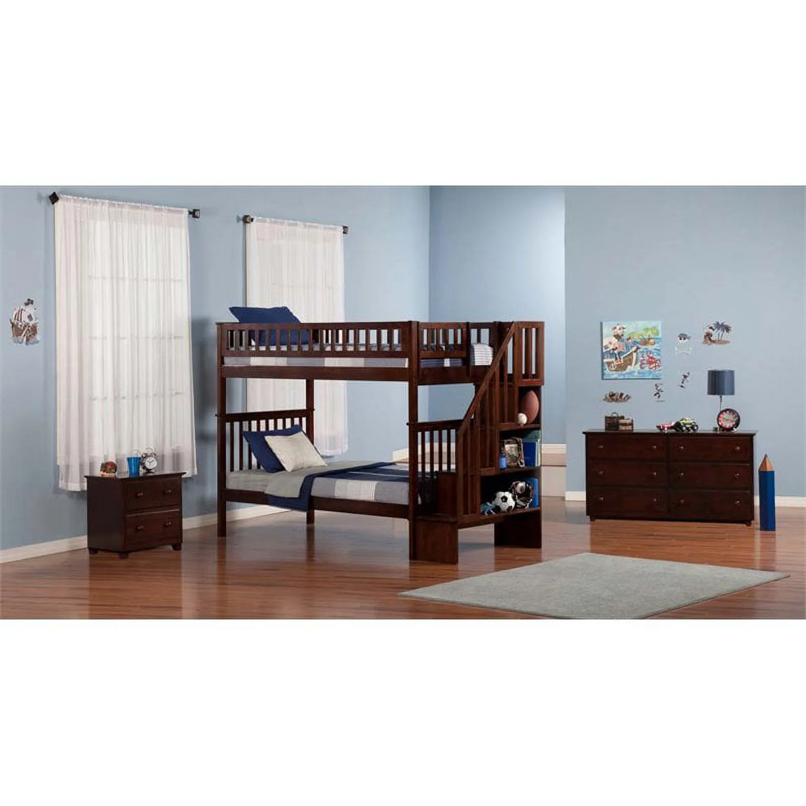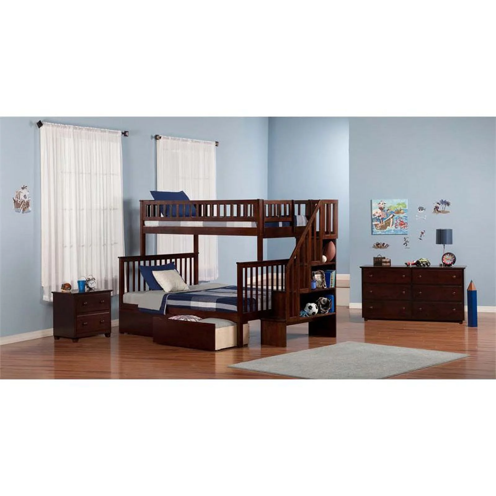 AFI Columbia Staircase Bunk Bed Twin over Twin with Twin Trundle in Walnut