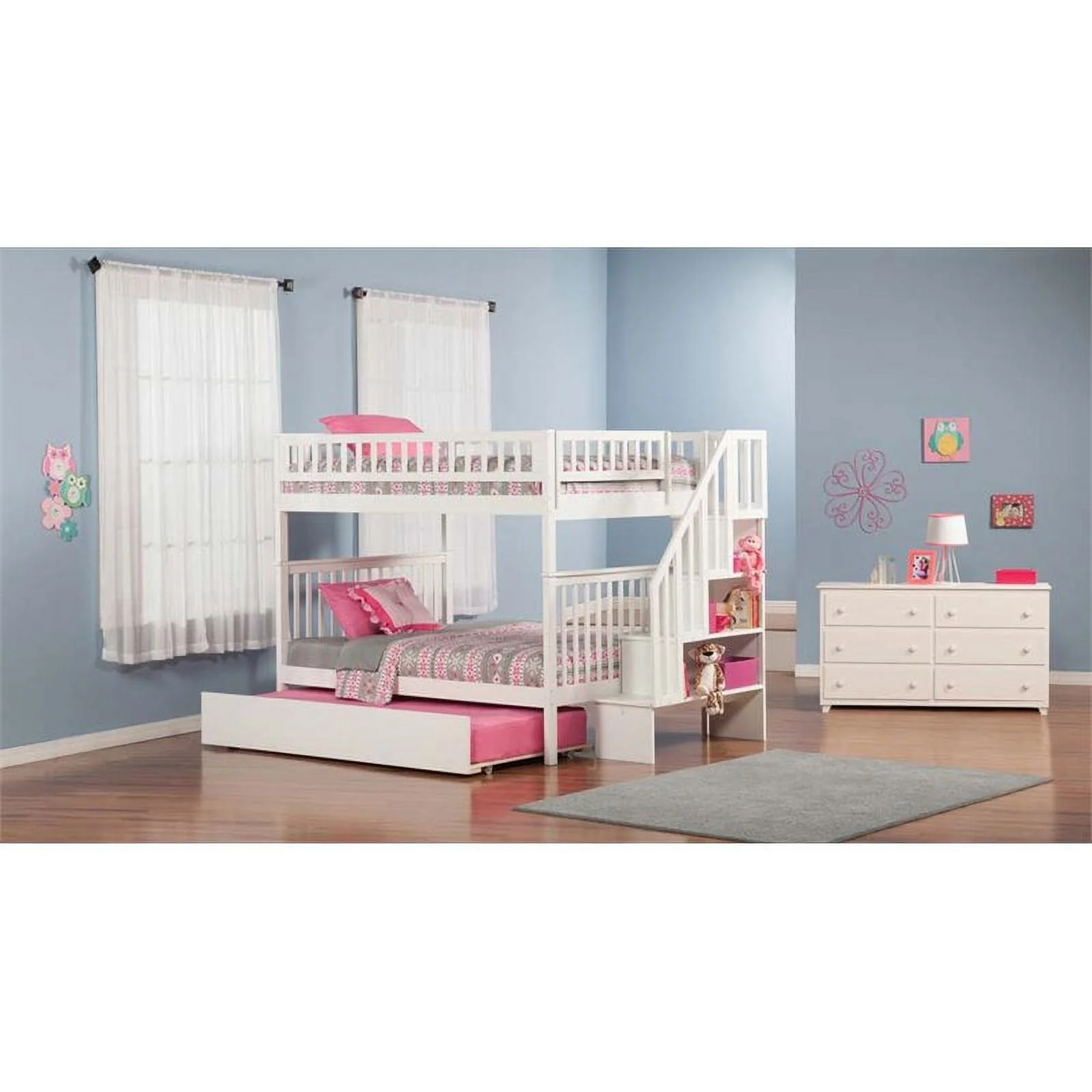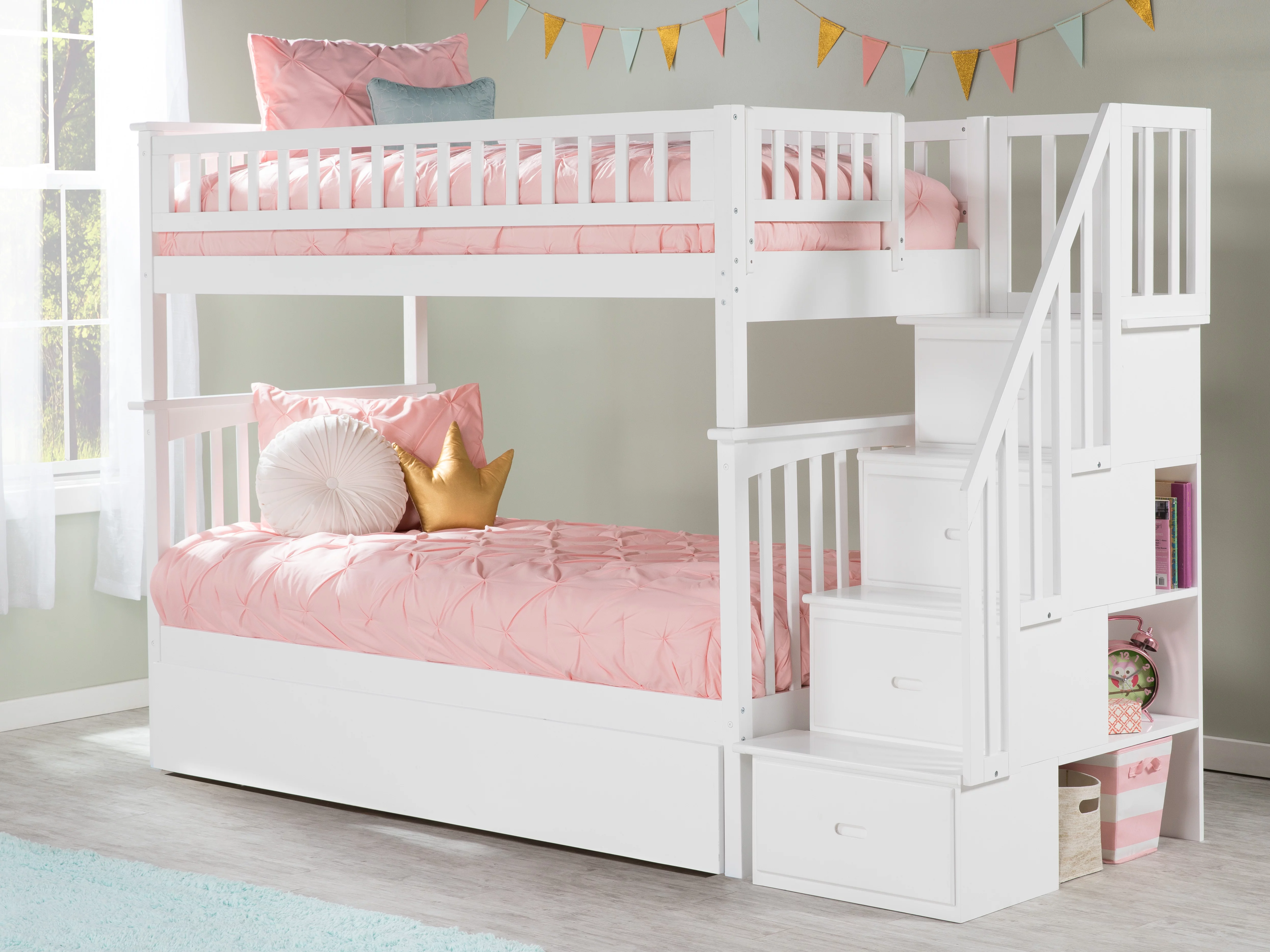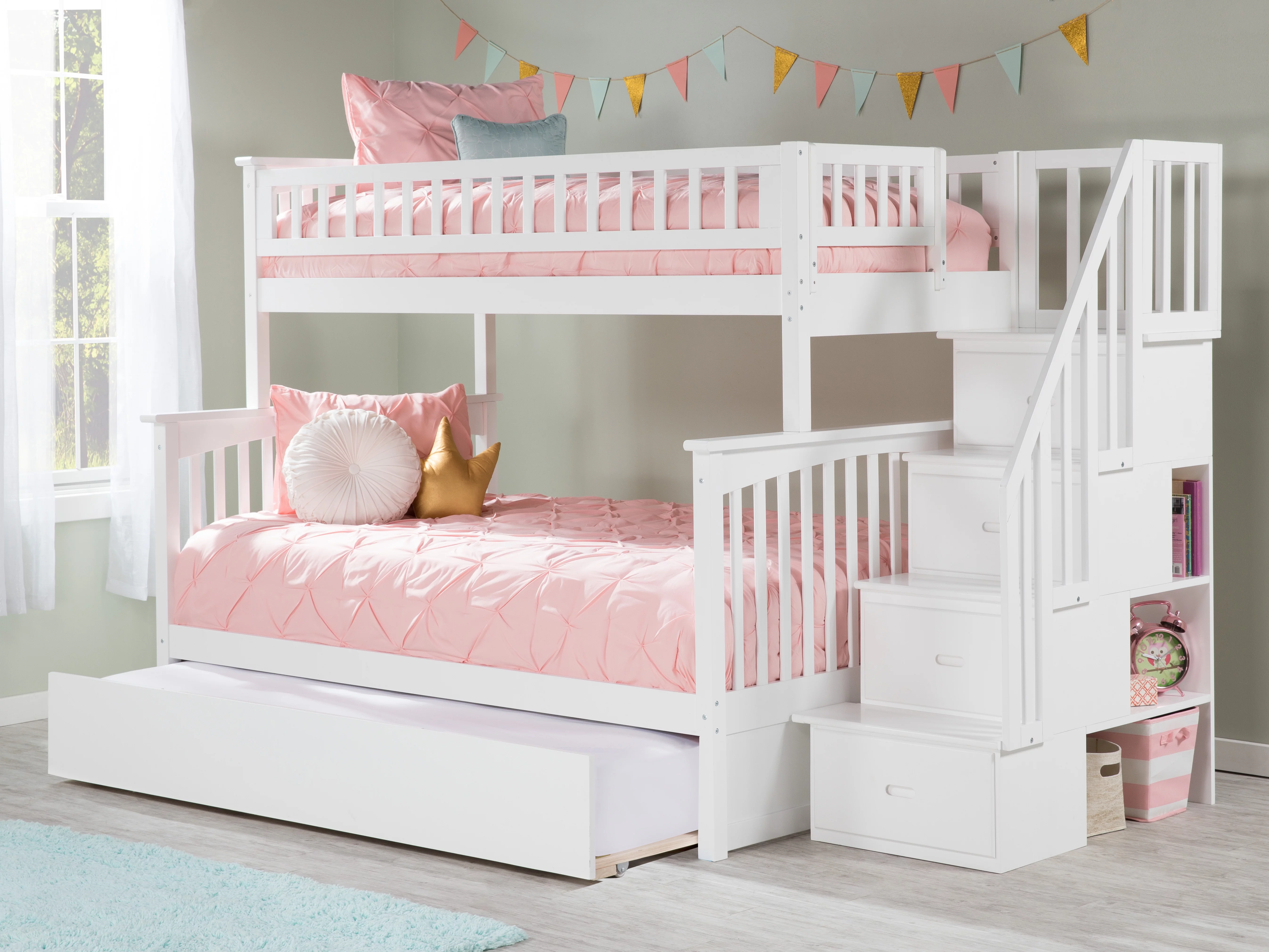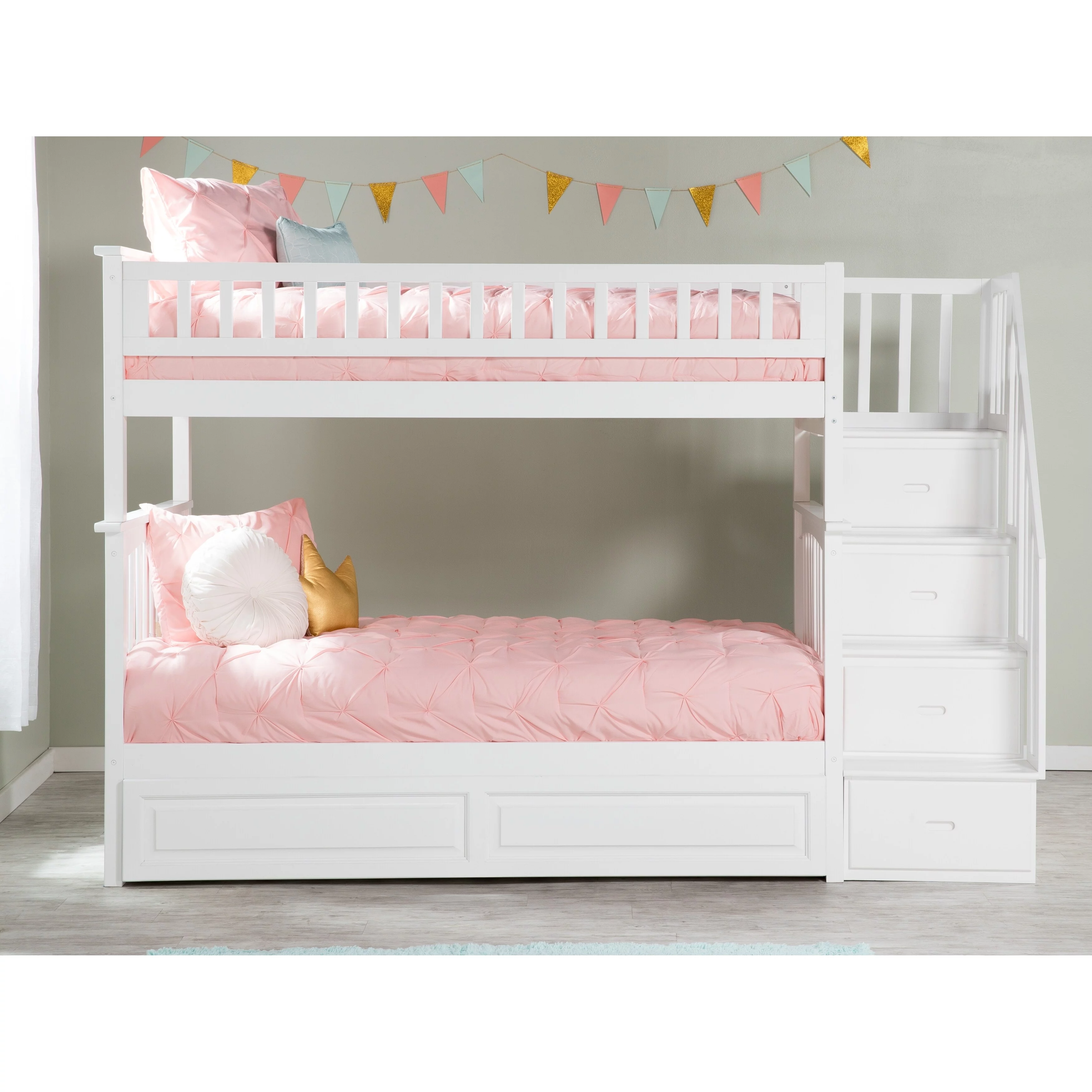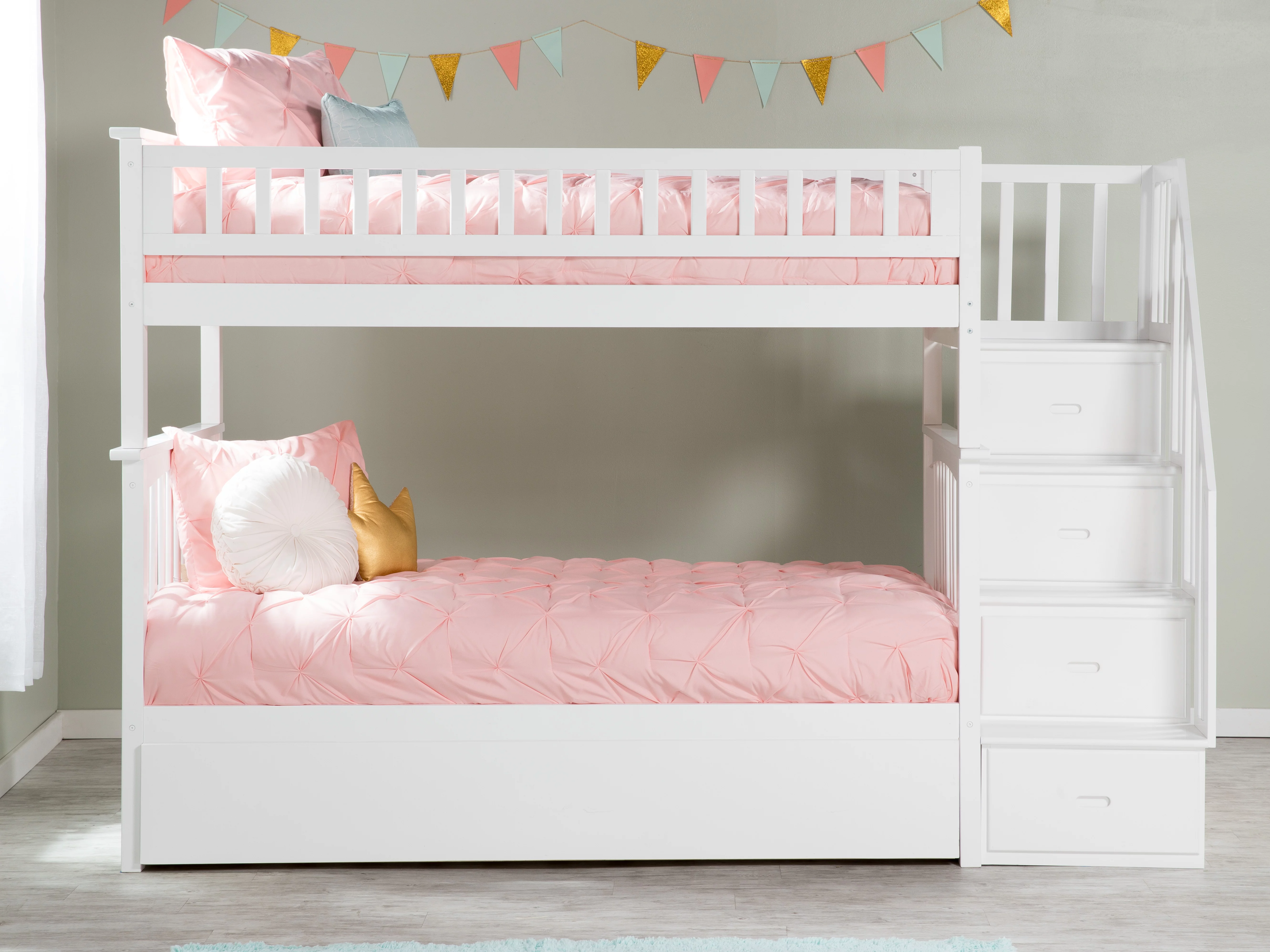 AFI Columbia Staircase Bunk Bed Twin over Twin with Twin Trundle in White
