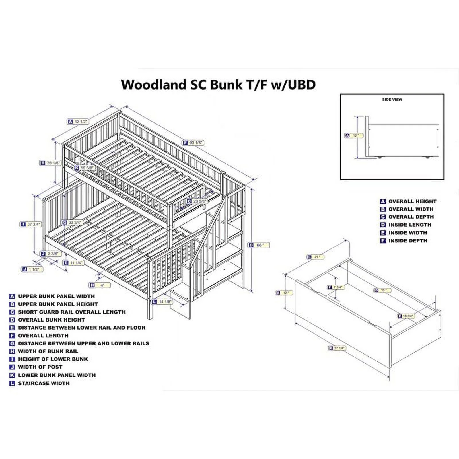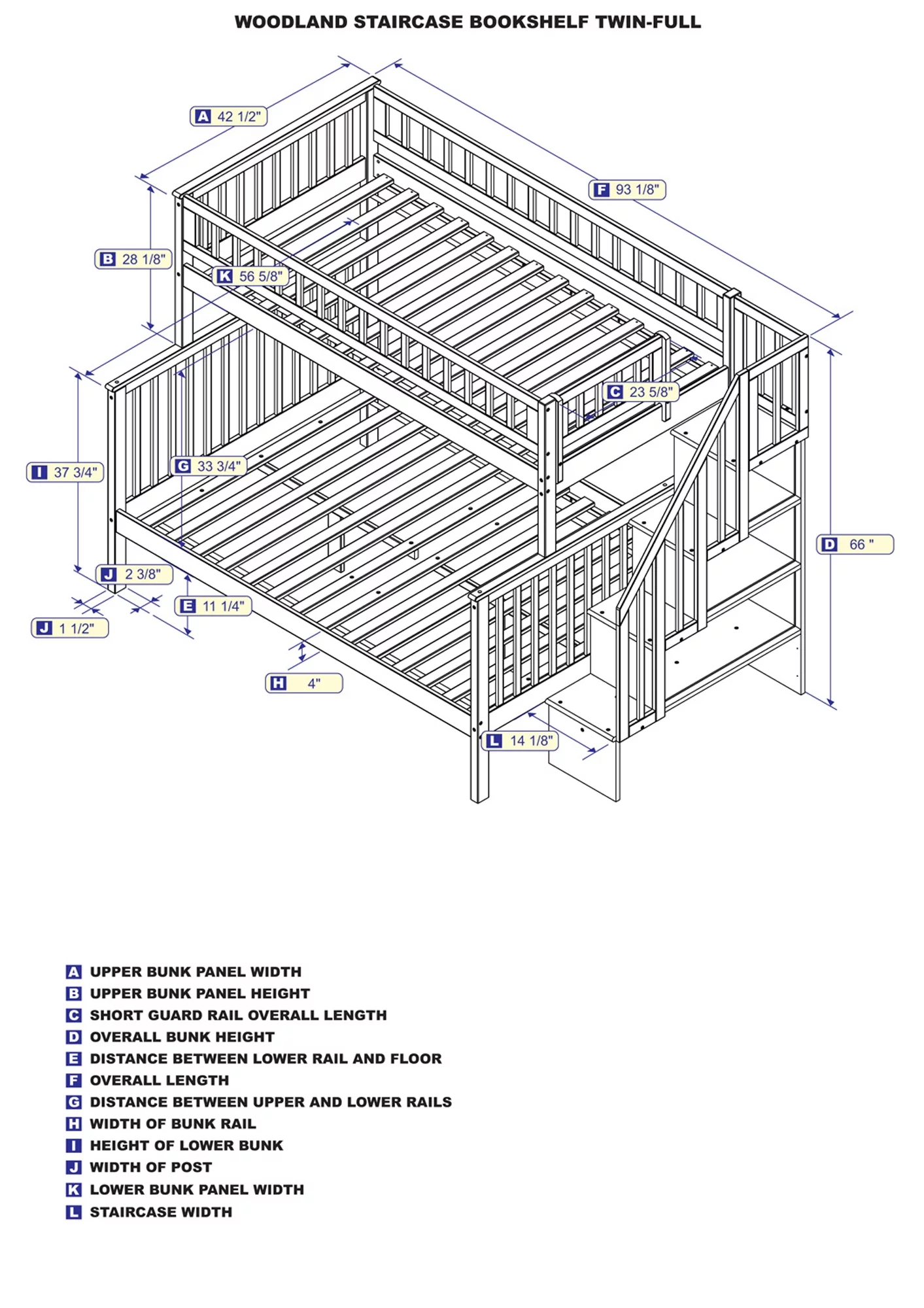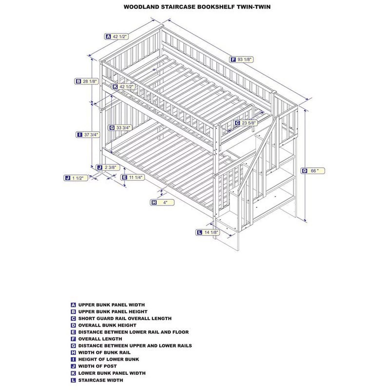 Columbia Staircase Bunk Bed Twin over Twin in Multiple Colors and Configurations