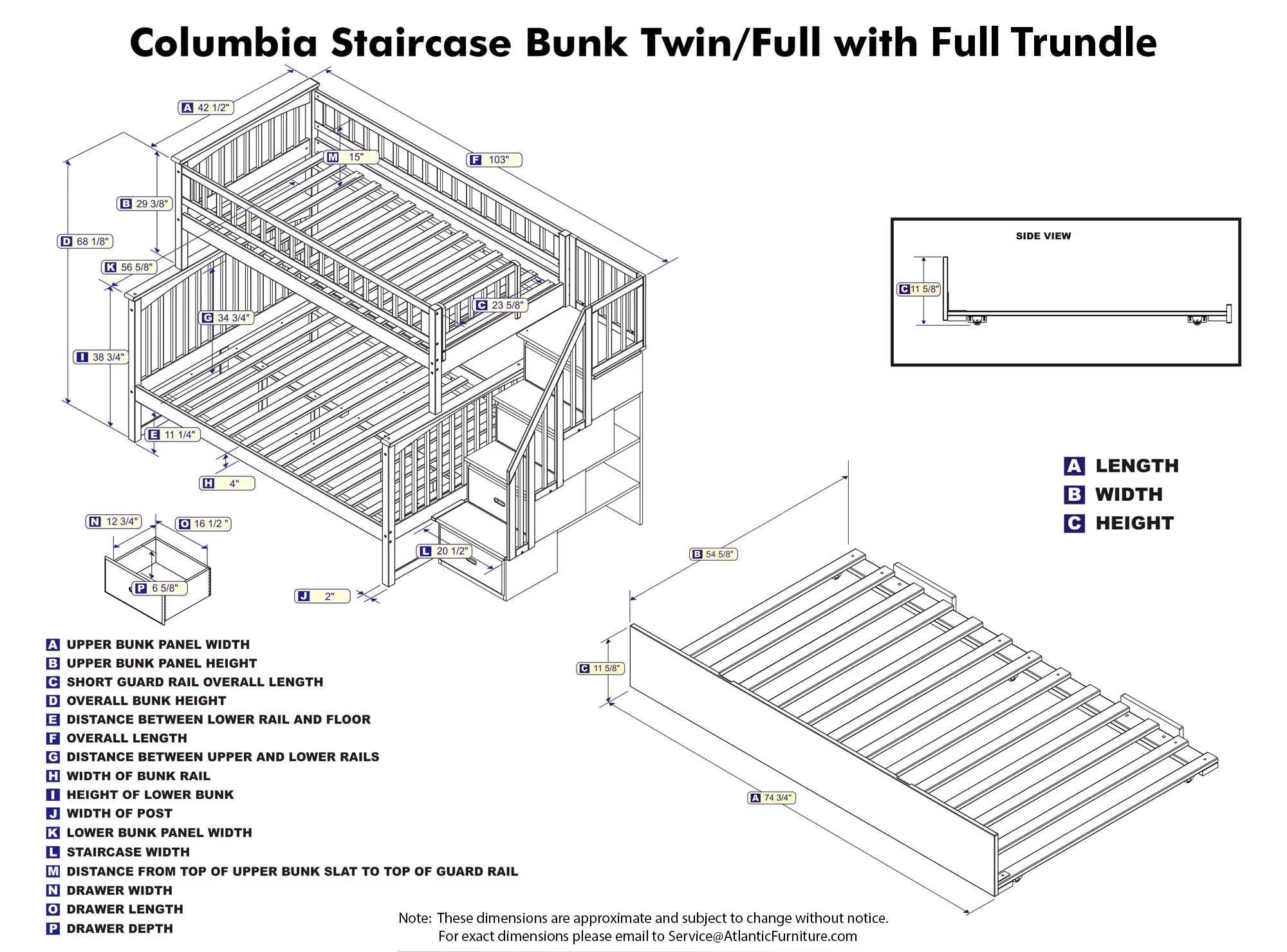 Columbia Staircase Bunk Bed Twin over Full with Full Size Urban Trundle Bed in White