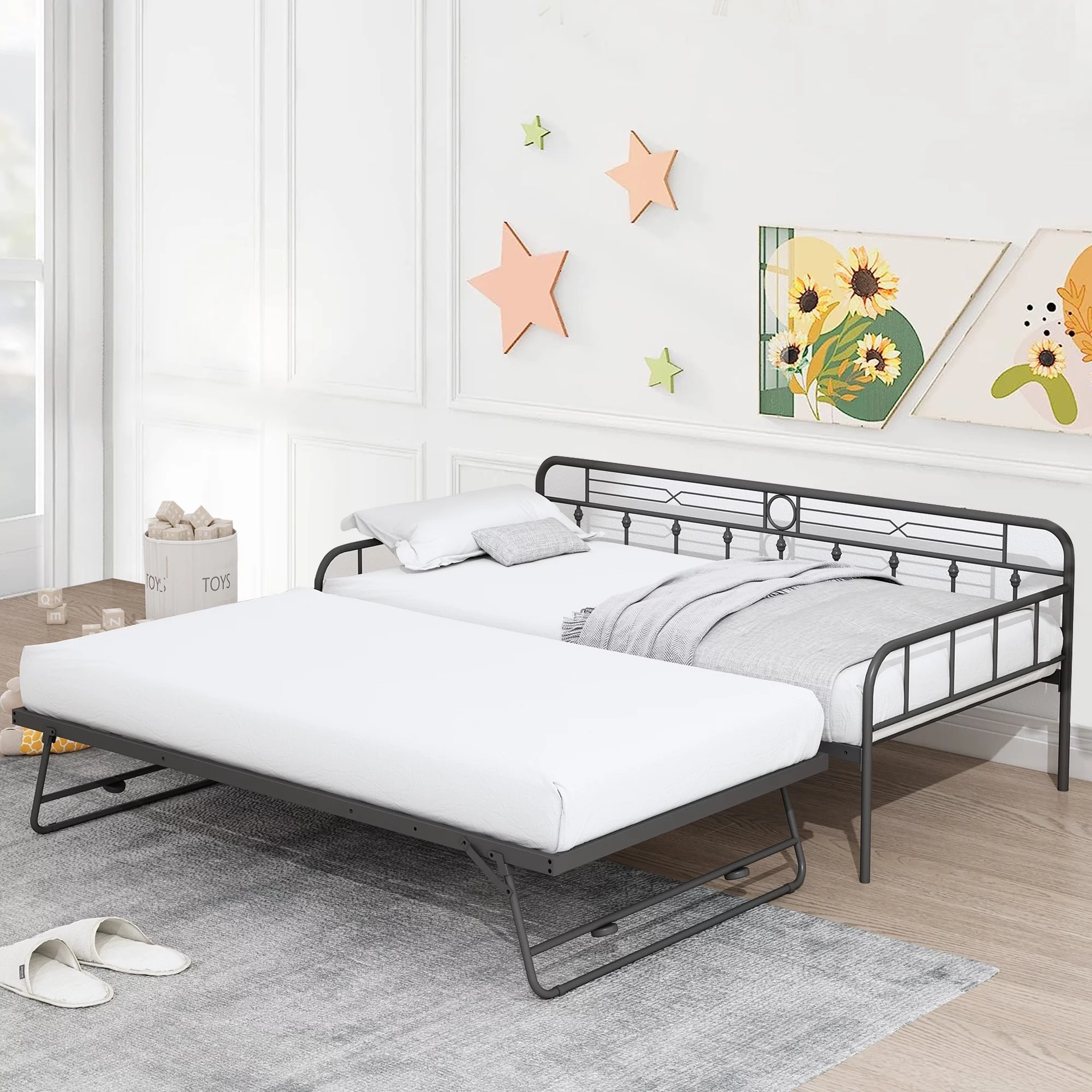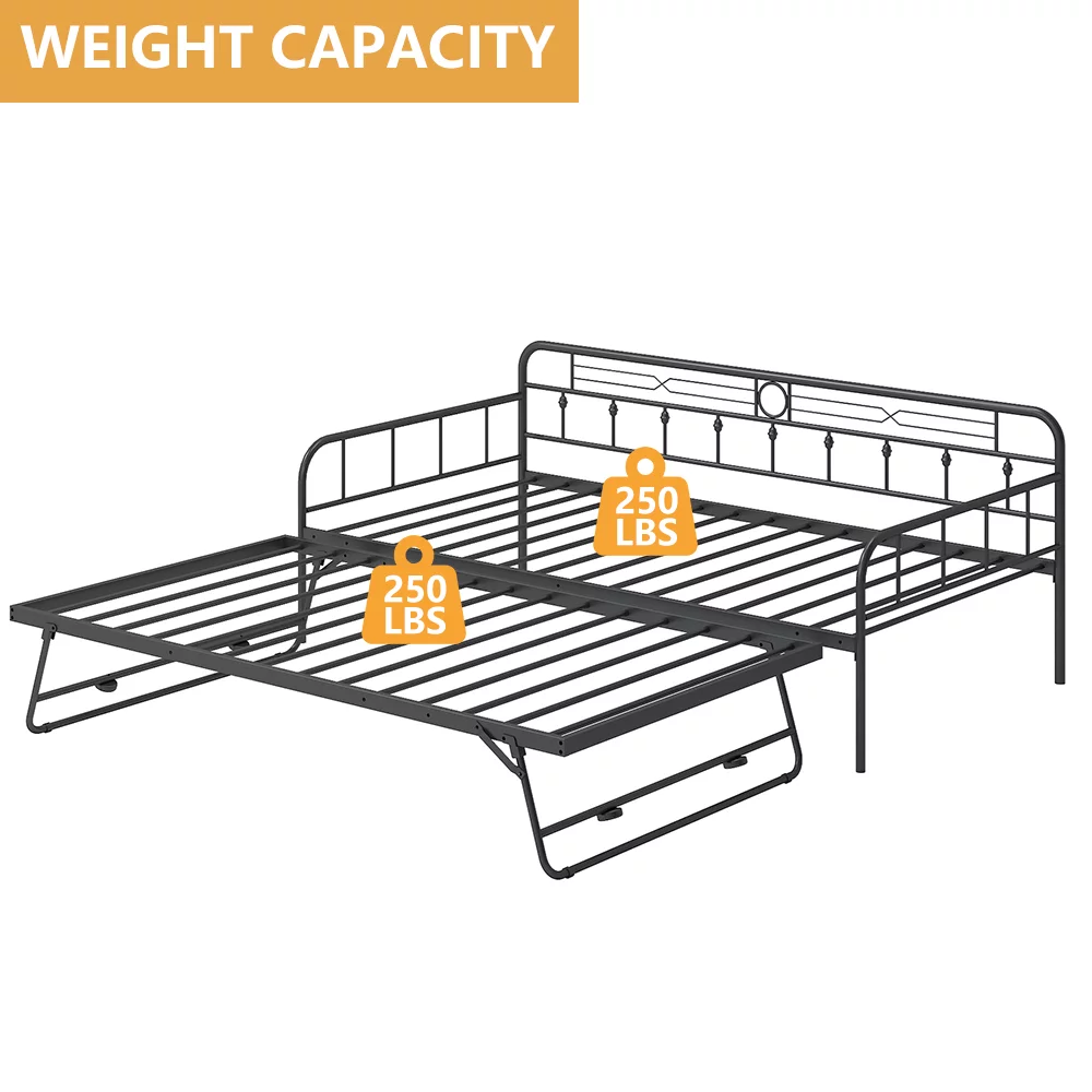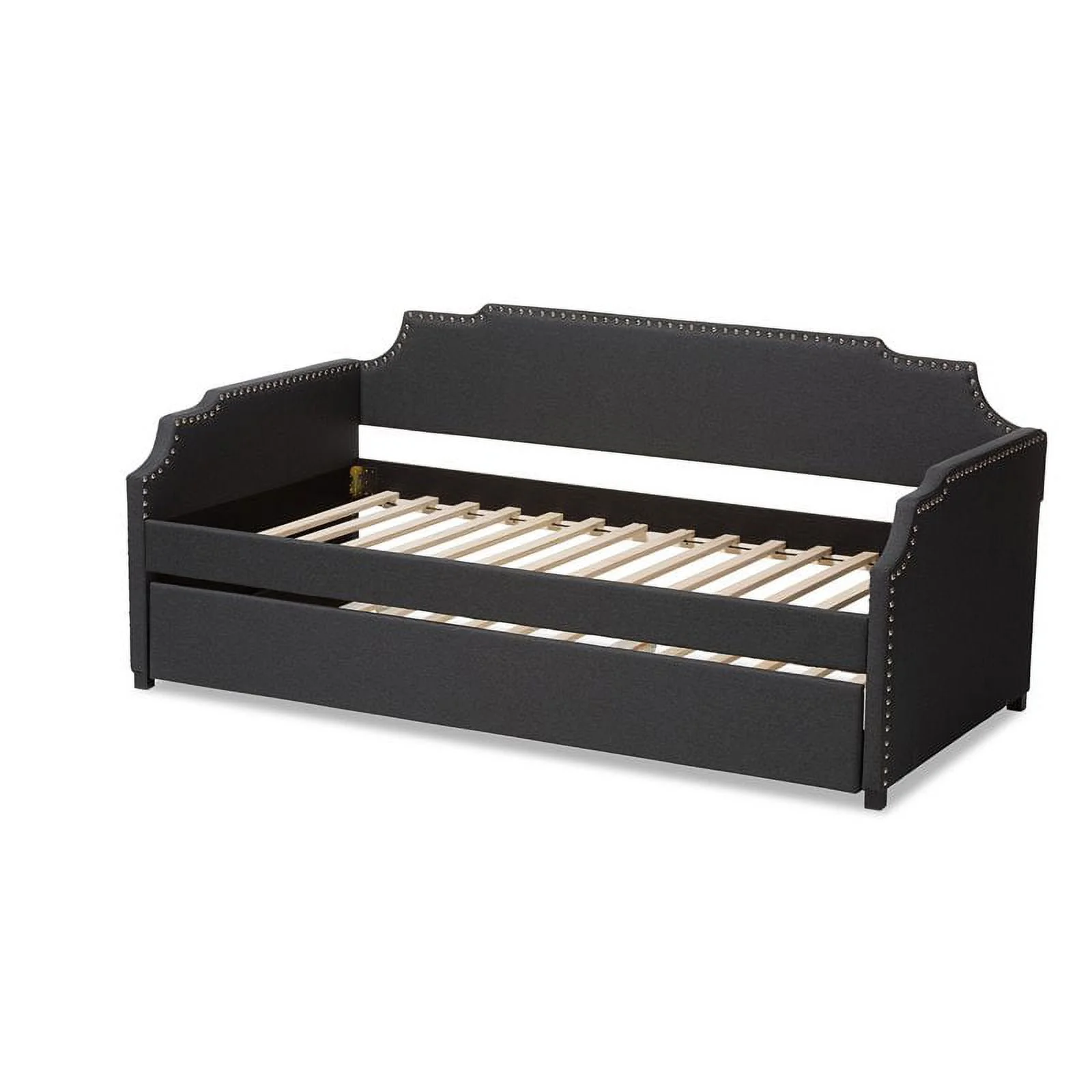 Bowery Hill Fabric Upholstered Twin Size Daybed with Trundle Bed in Charcoal