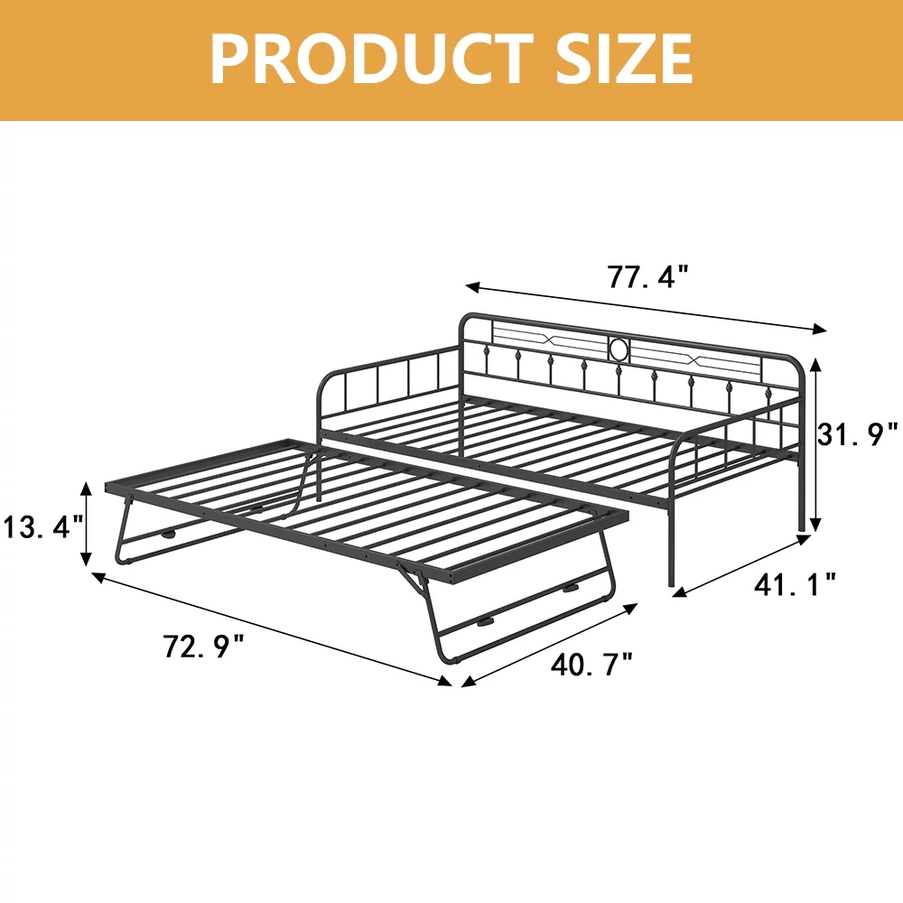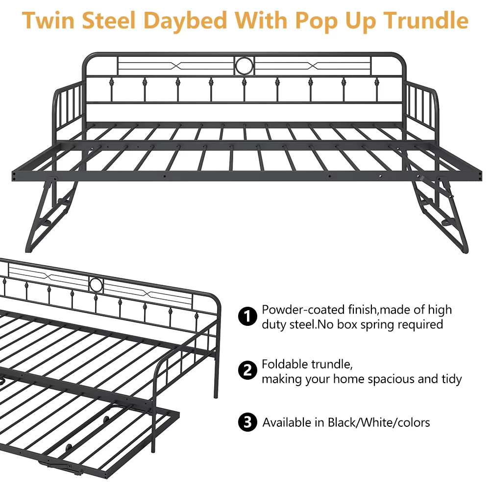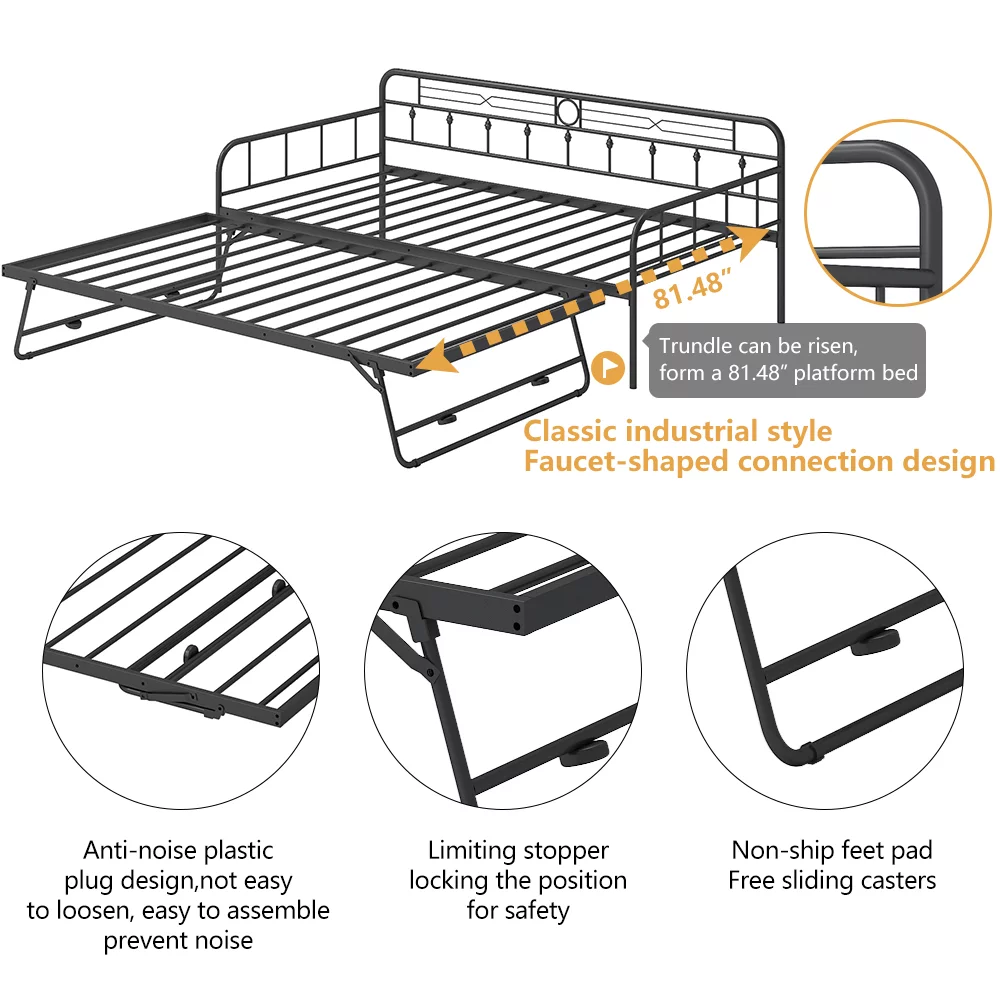 Bowery Hill Fabric Upholstered Twin Size Daybed with Trundle Bed in Charcoal