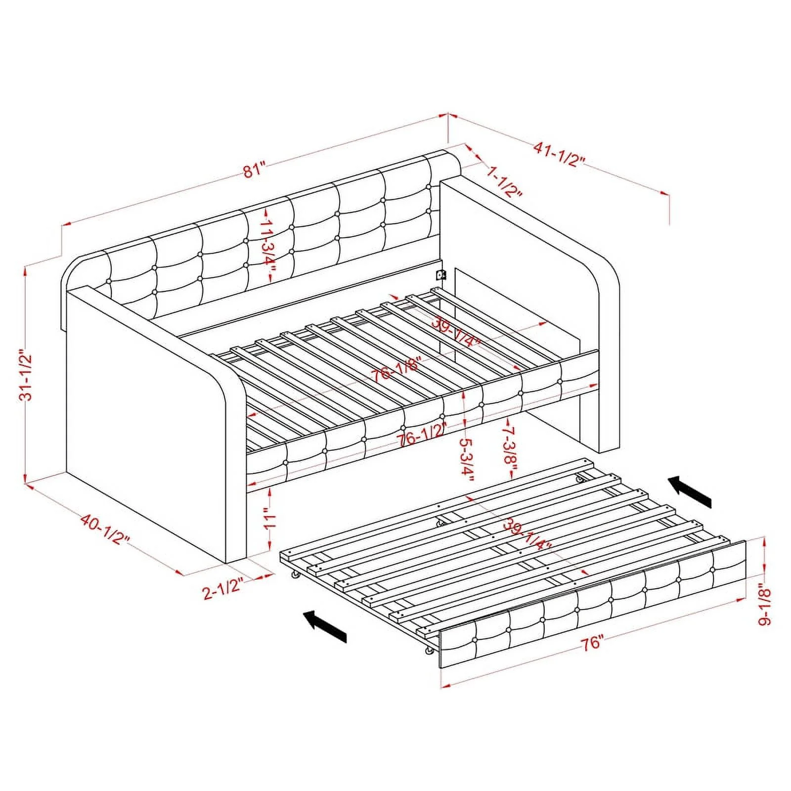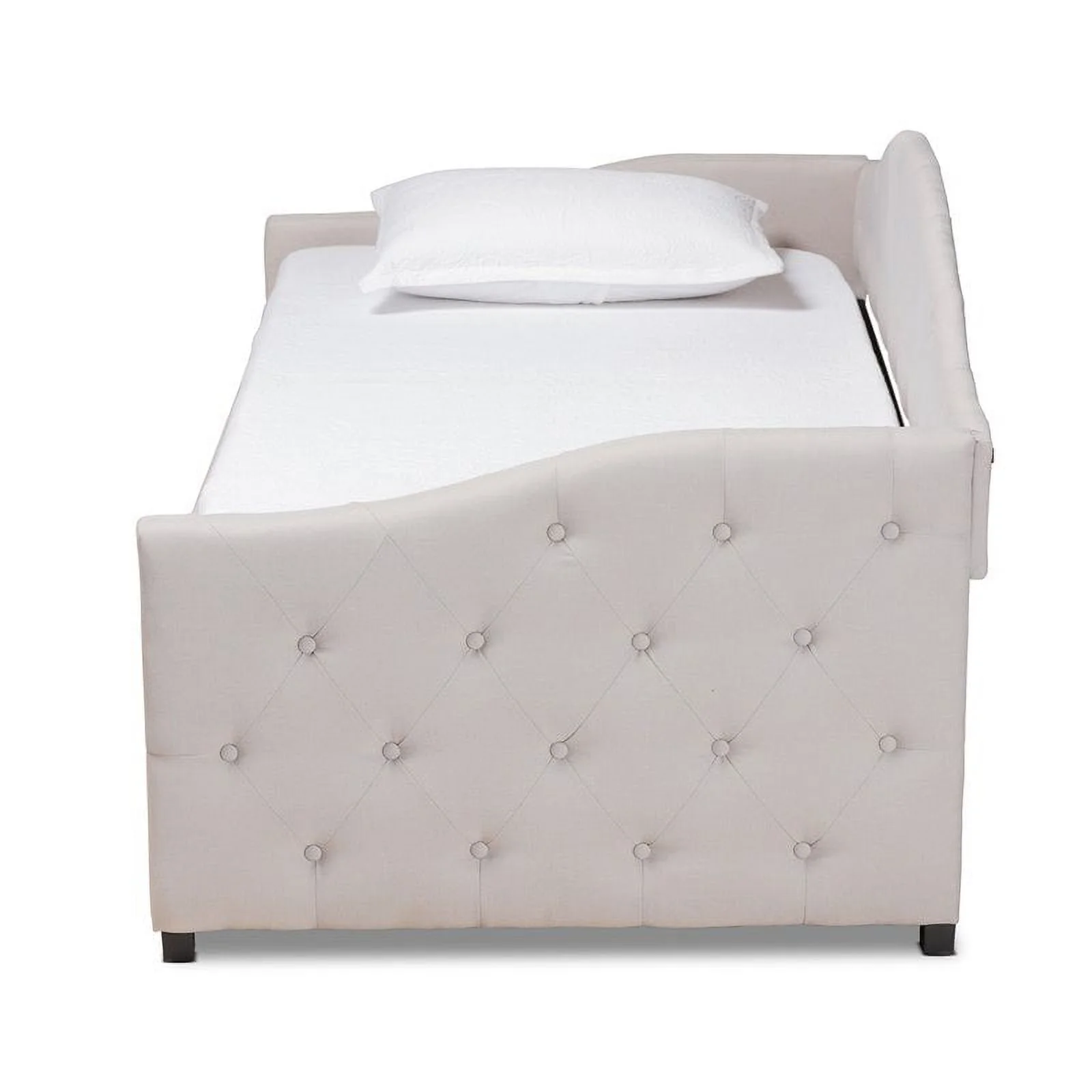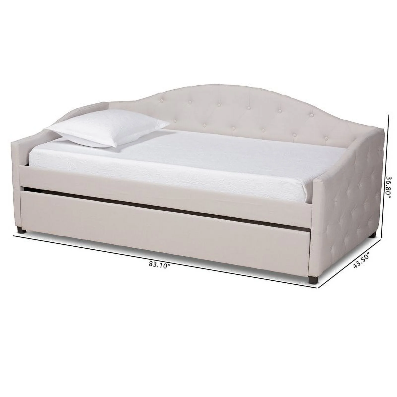 Bowery Hill Tufted Fabric with Nailhead Twin Daybed and Trundle in Trina Beige