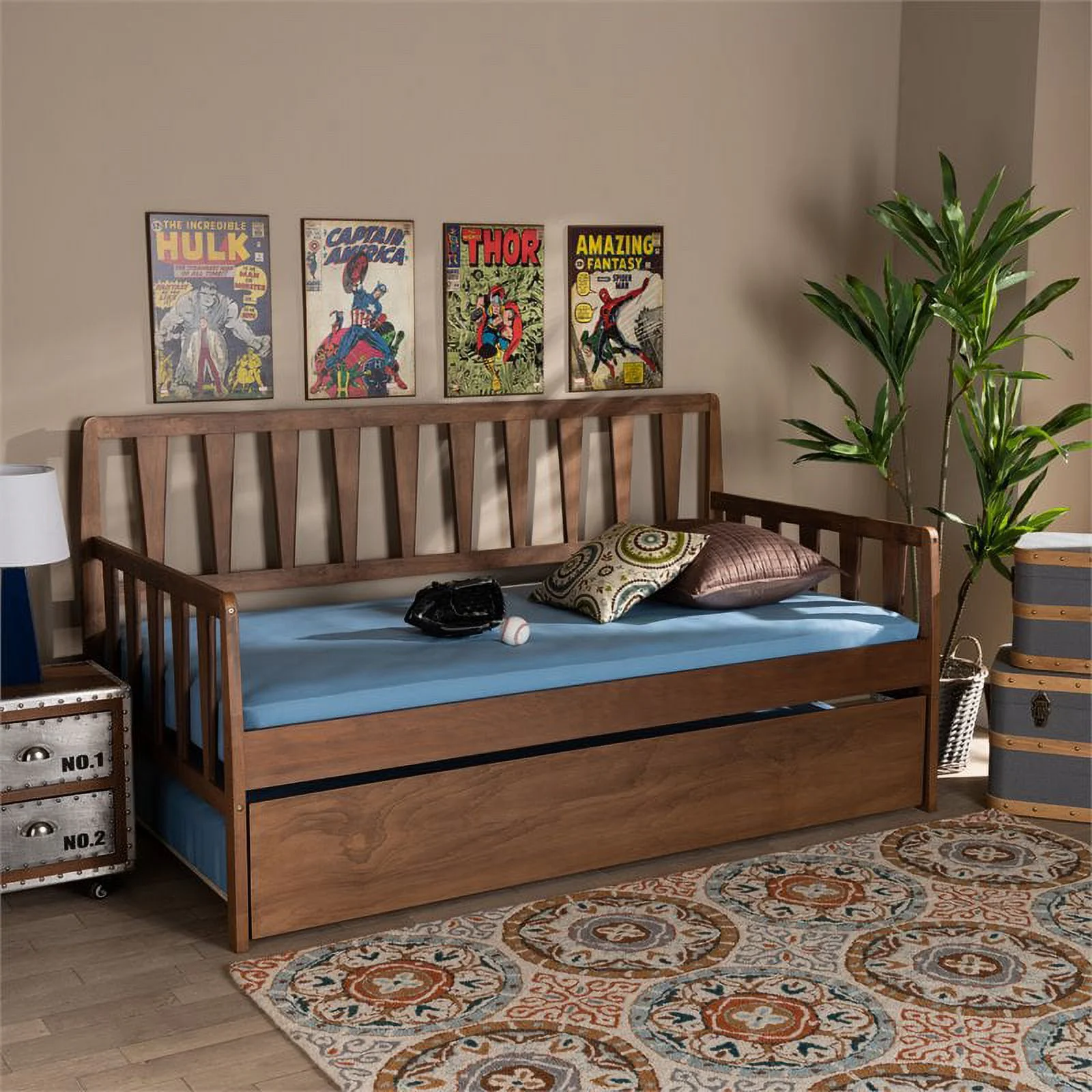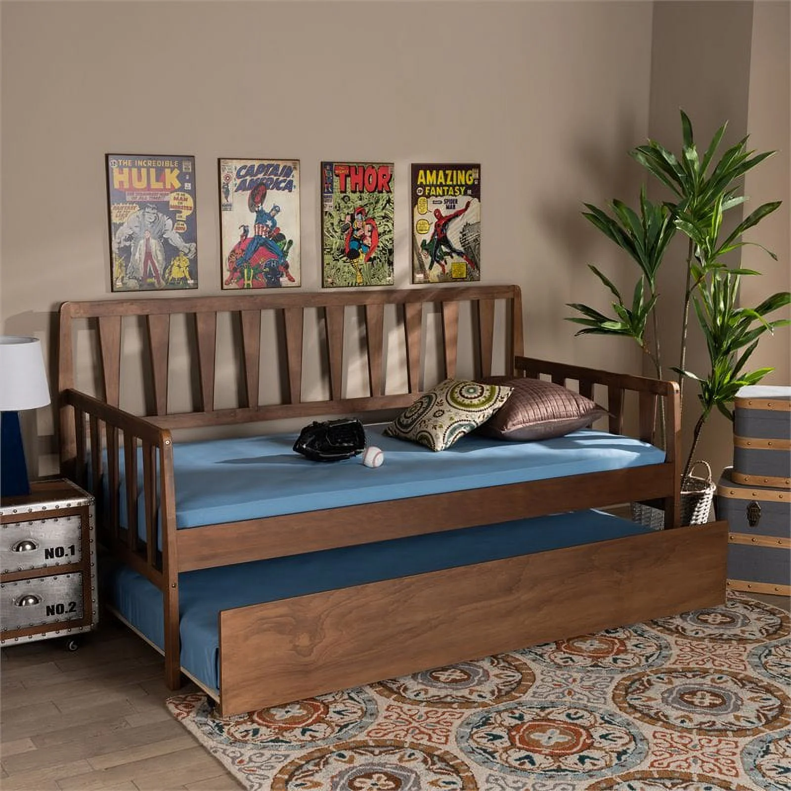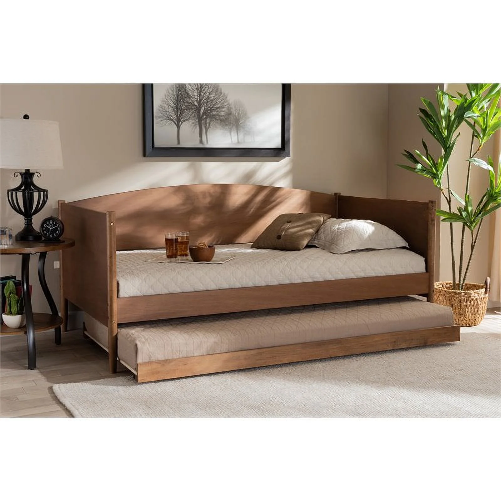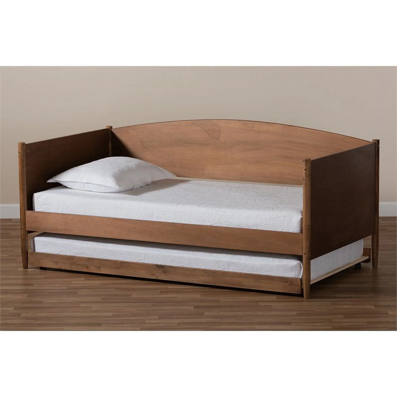 Bowery Hill Walnut Finished Wood Twin Size Daybed with Roll-Out Trundle