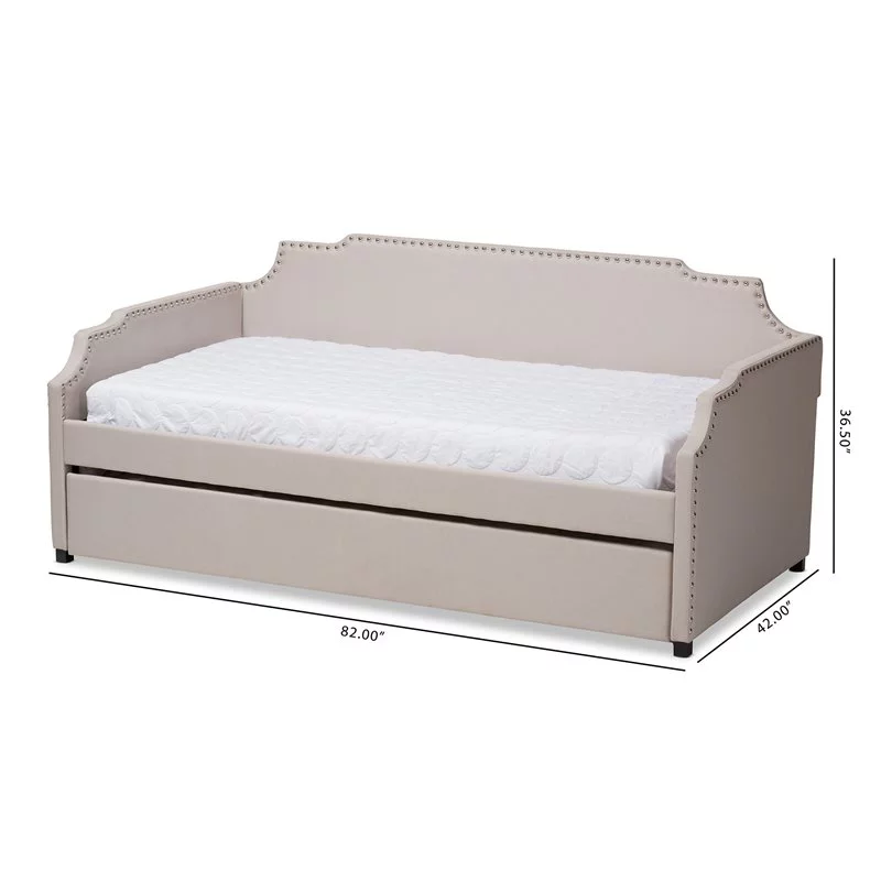 Bowery Hill Fabric Upholstered Twin Size Daybed with Trundle Bed in Beige