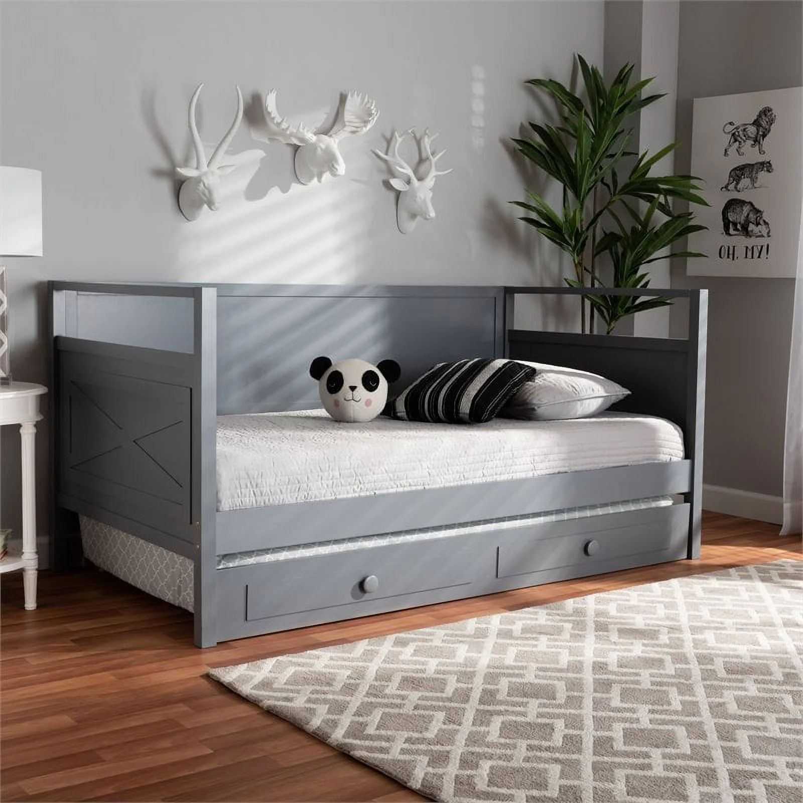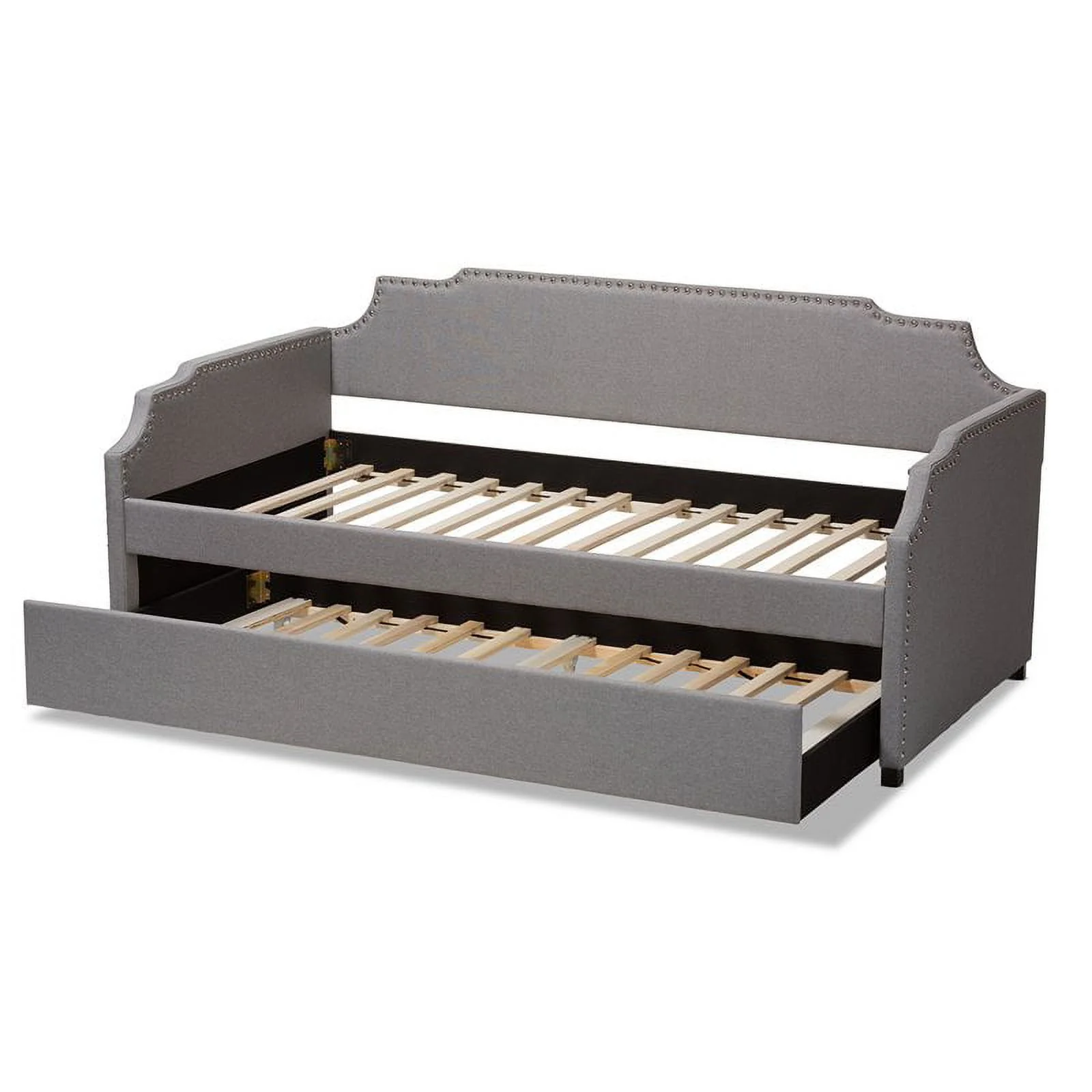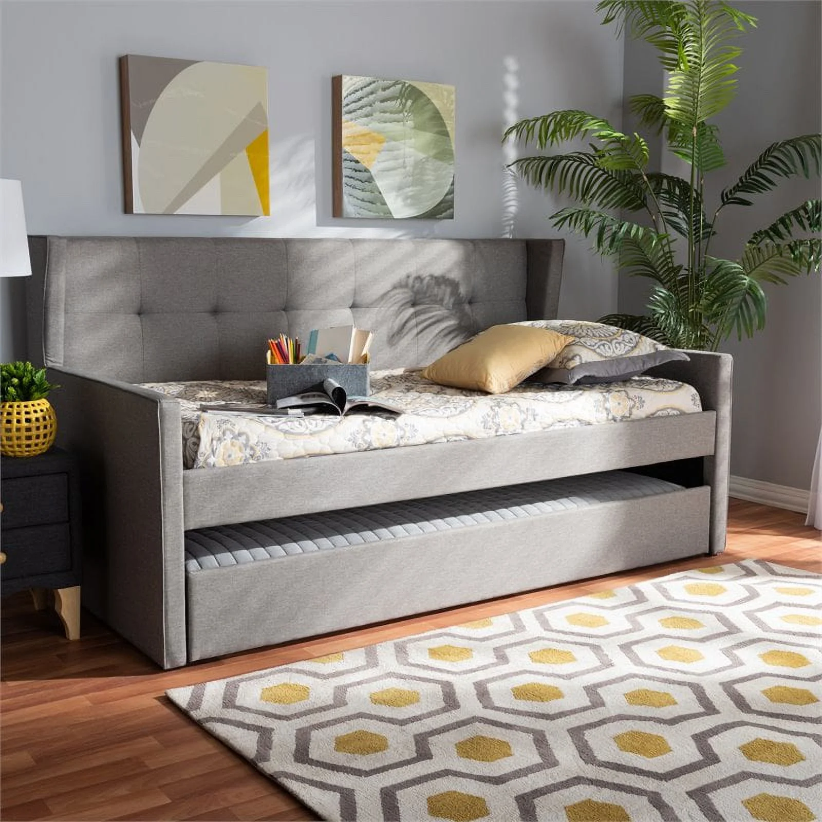 Bowery Hill Contemporary Upholstered Fabric Twin Daybed with Trundle in Gray