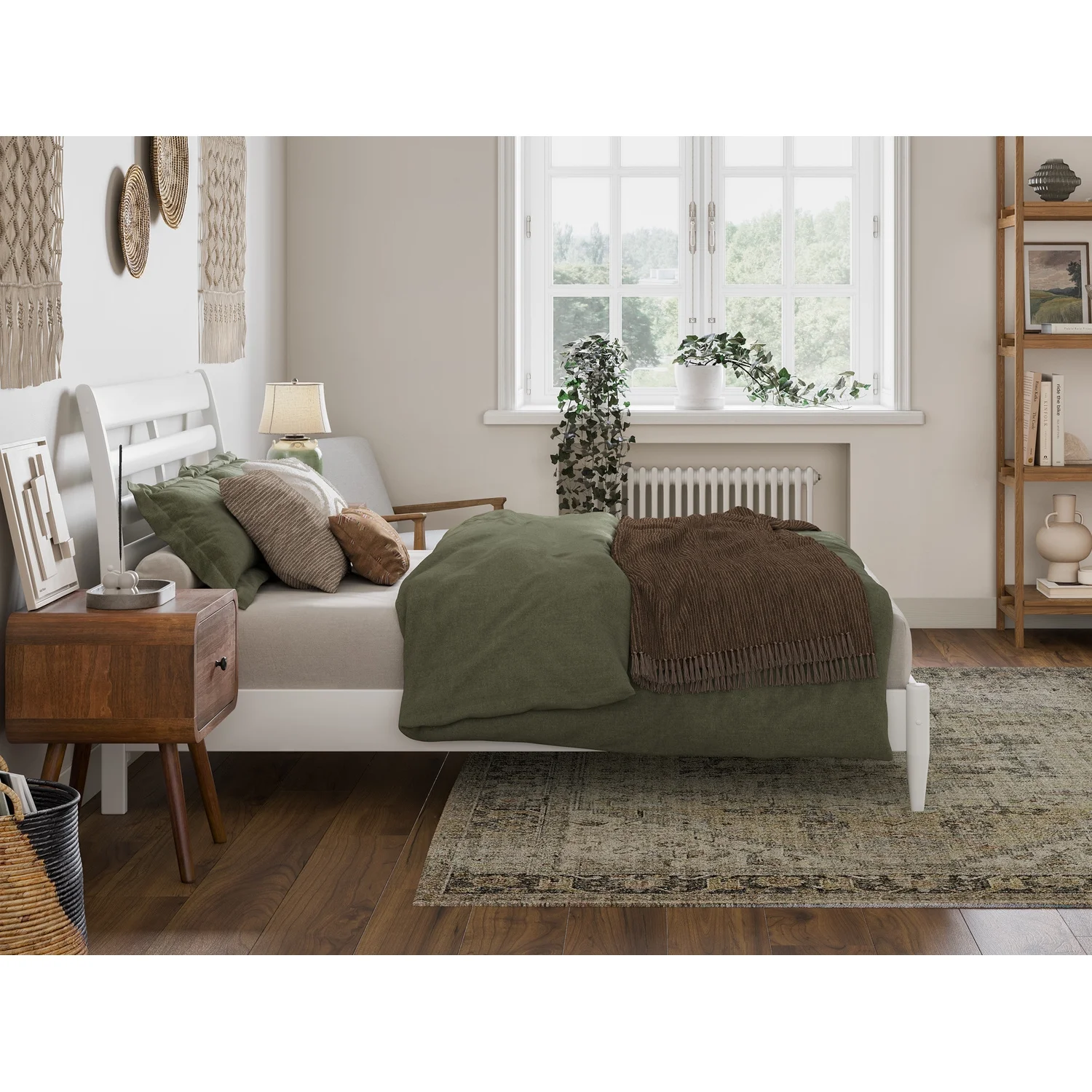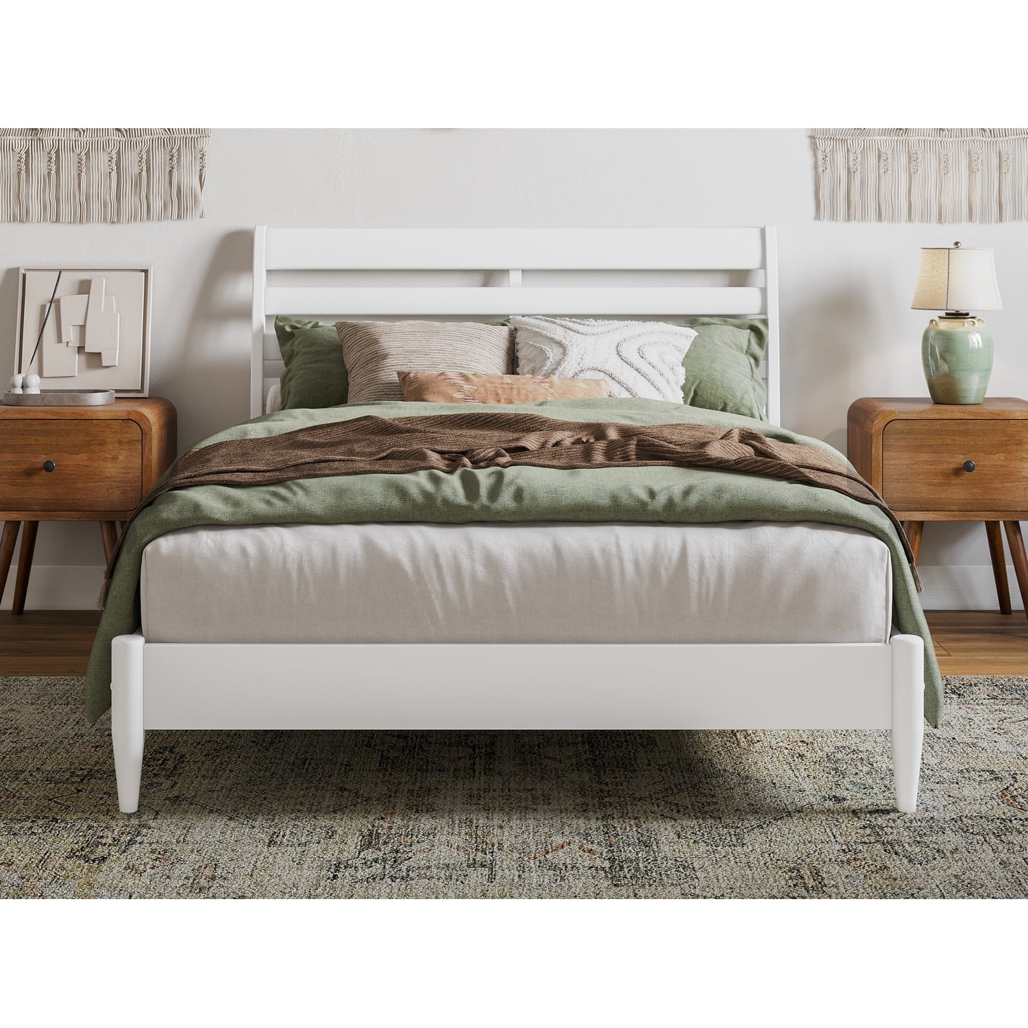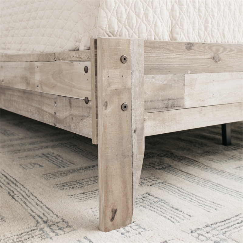 Home Square 2-Piece Set with Headboard & Queen Platform Bed in Whitewash