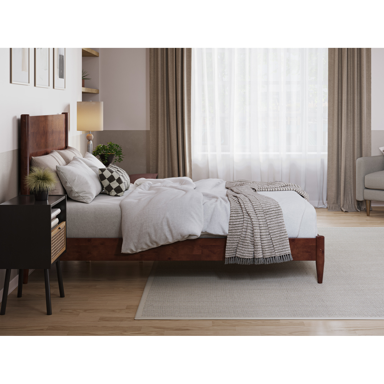 Home Square 2 Piece Bedroom Set with Queen Headboard and Platform Bed in Mocha