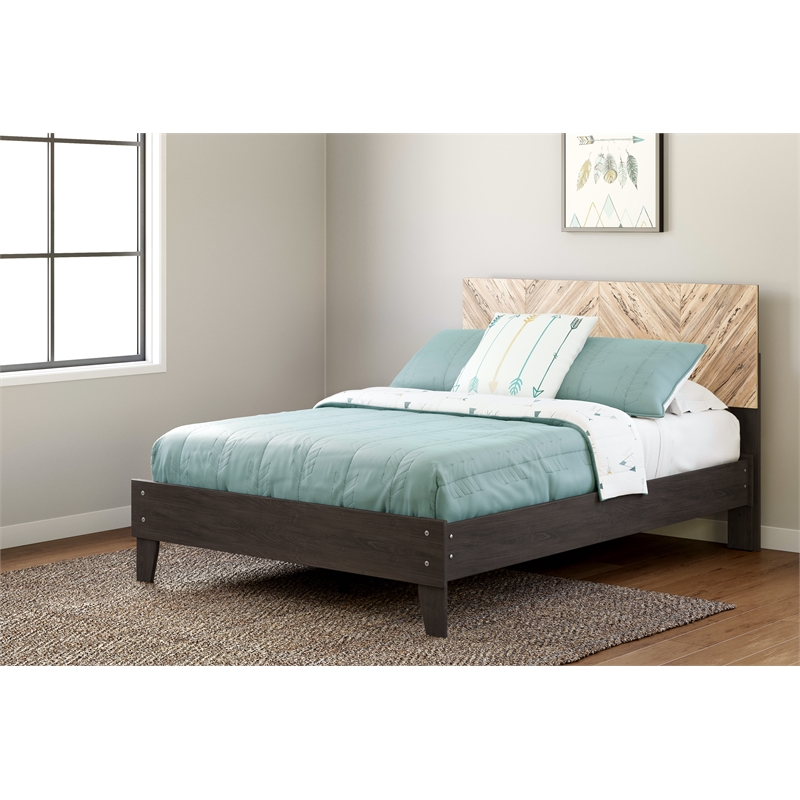 Home Square 2-Piece Set with Wood Headboard & Full Platform Bed in Black