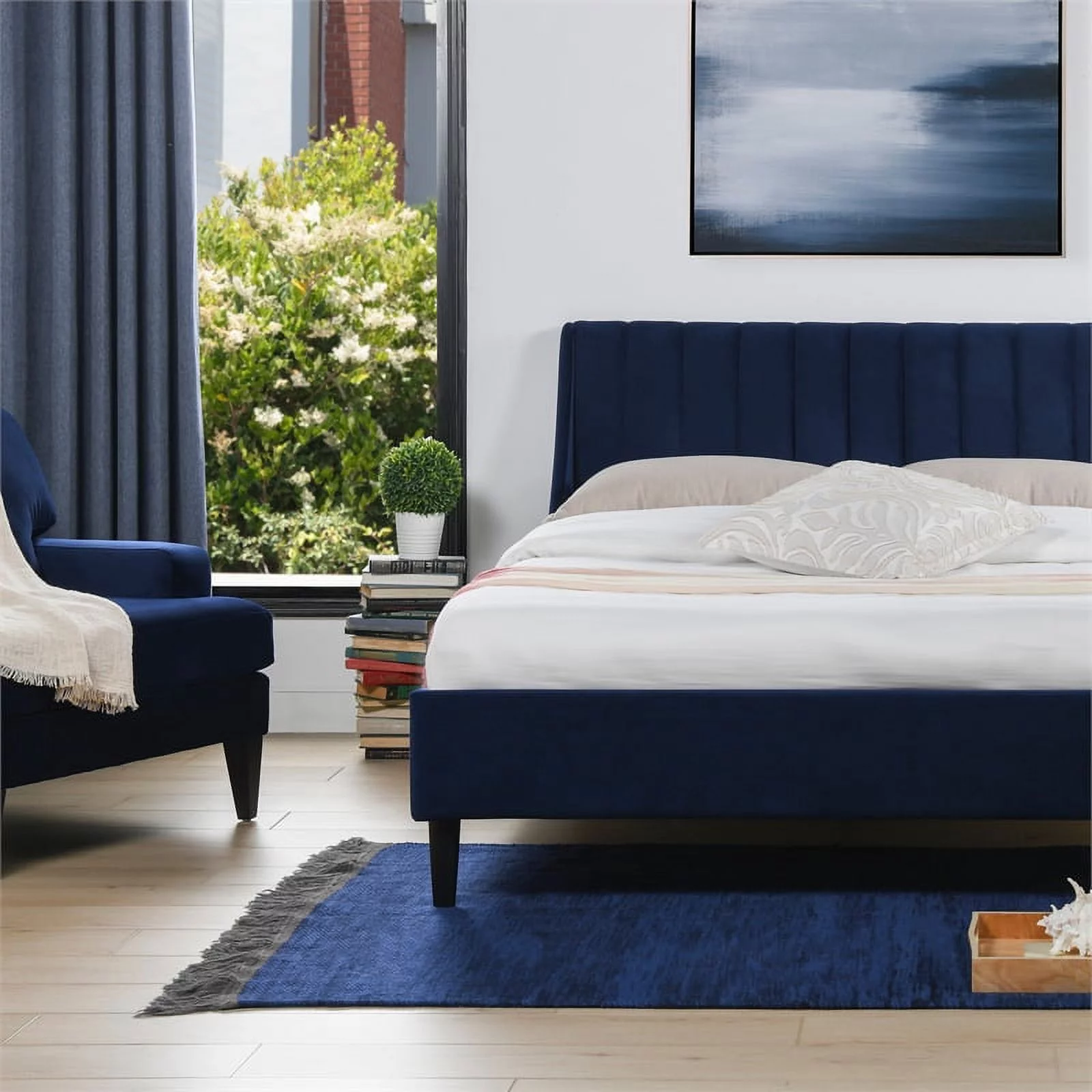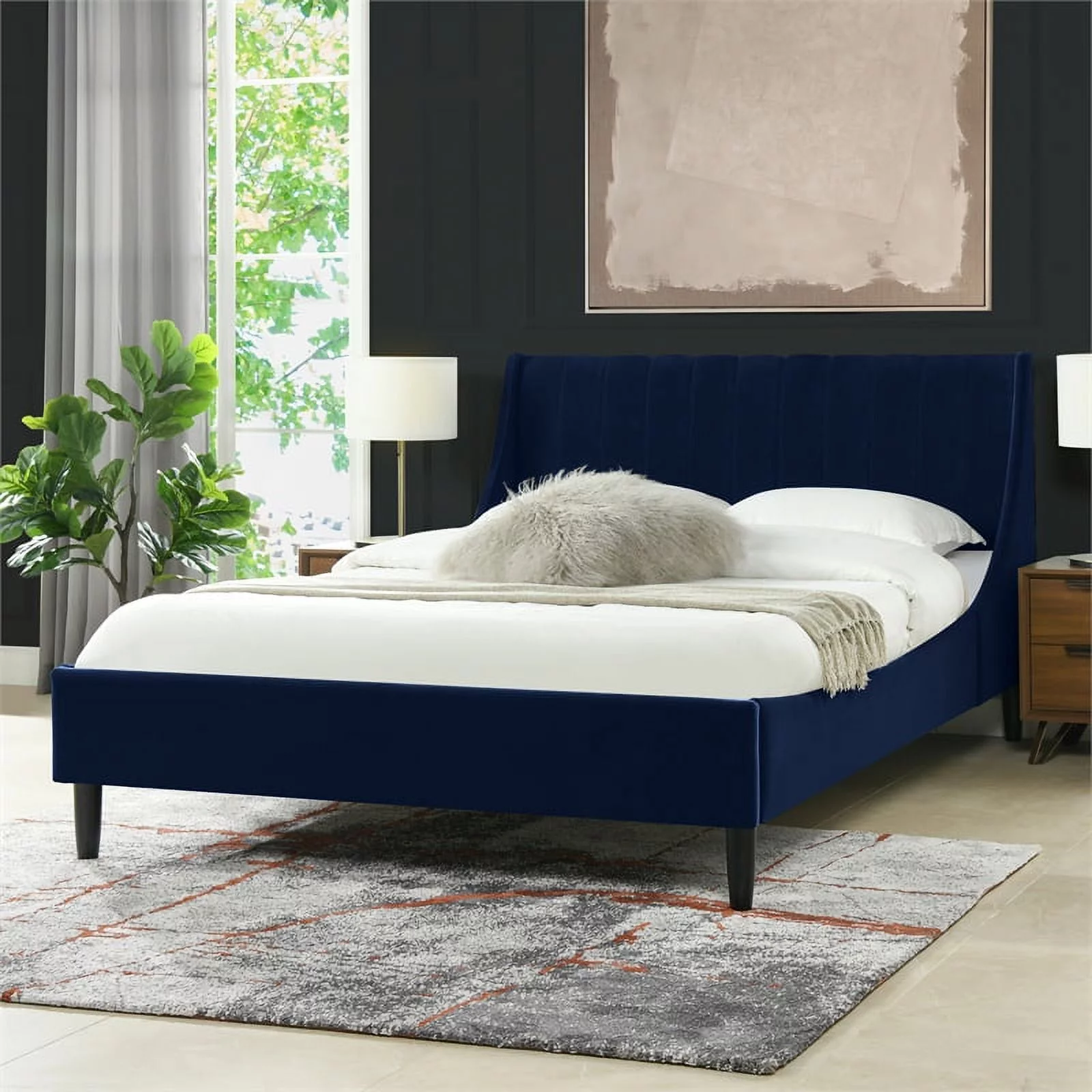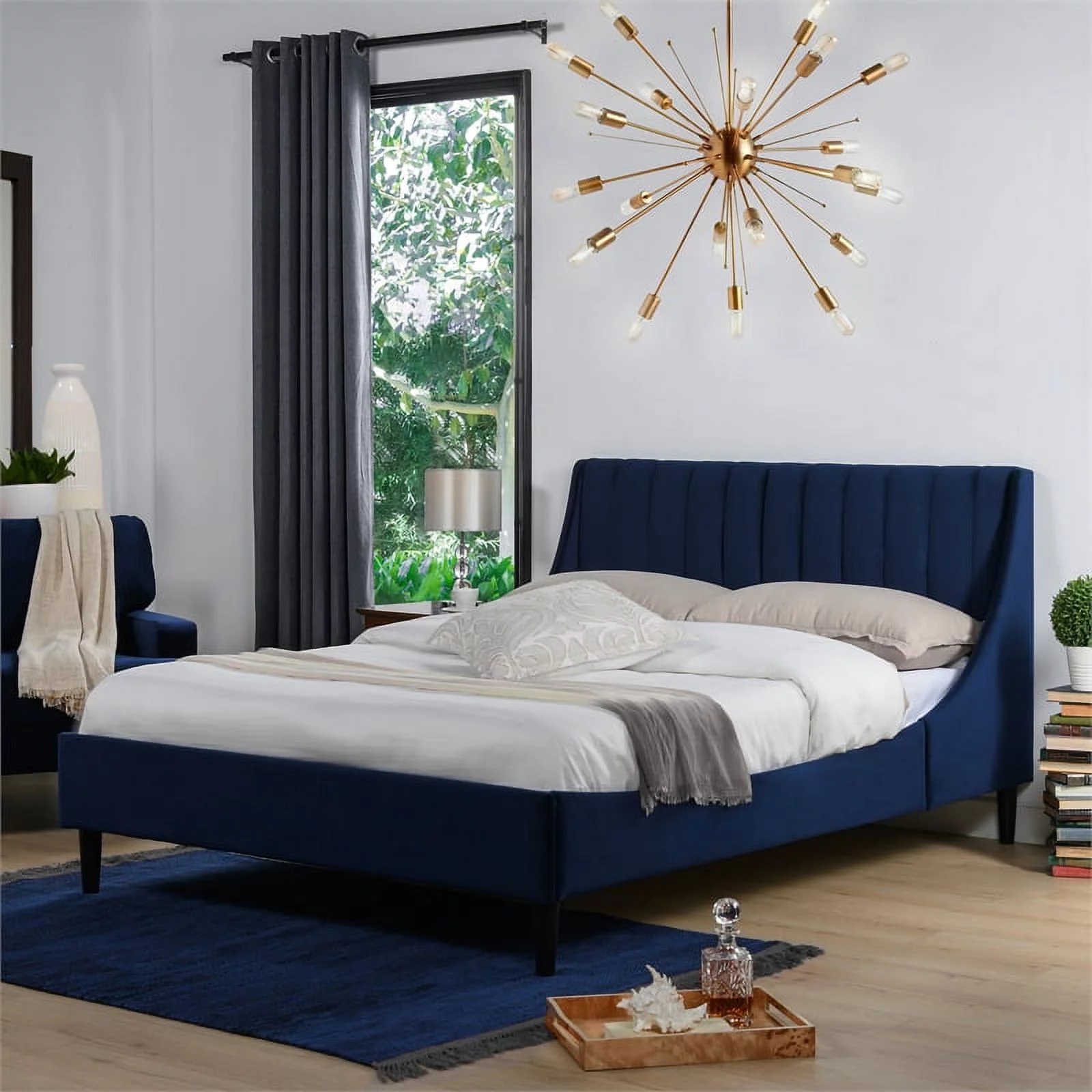 Sandy Wilson Home Aspen Tufted Headboard Platform Bed Set Queen Navy Blue Velvet