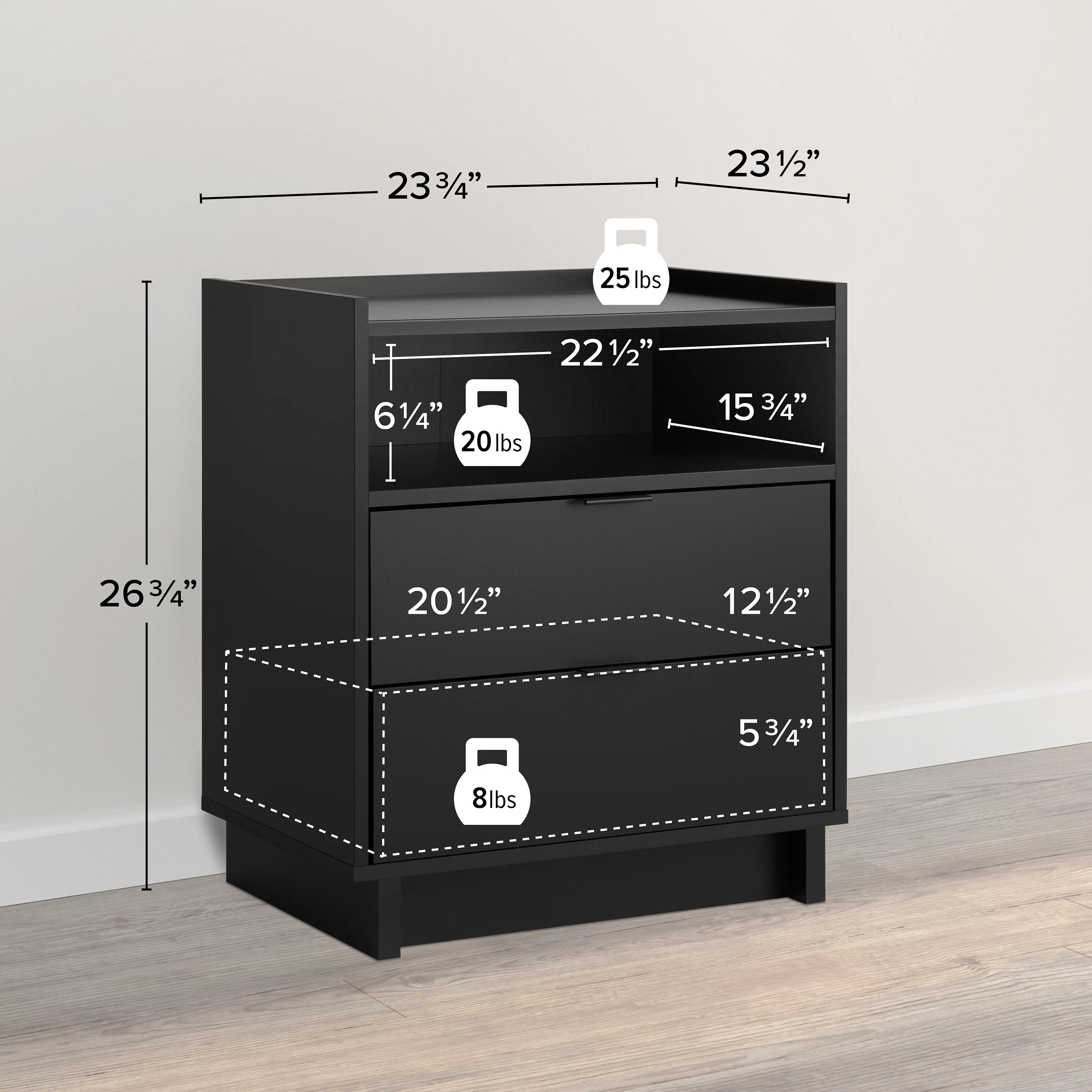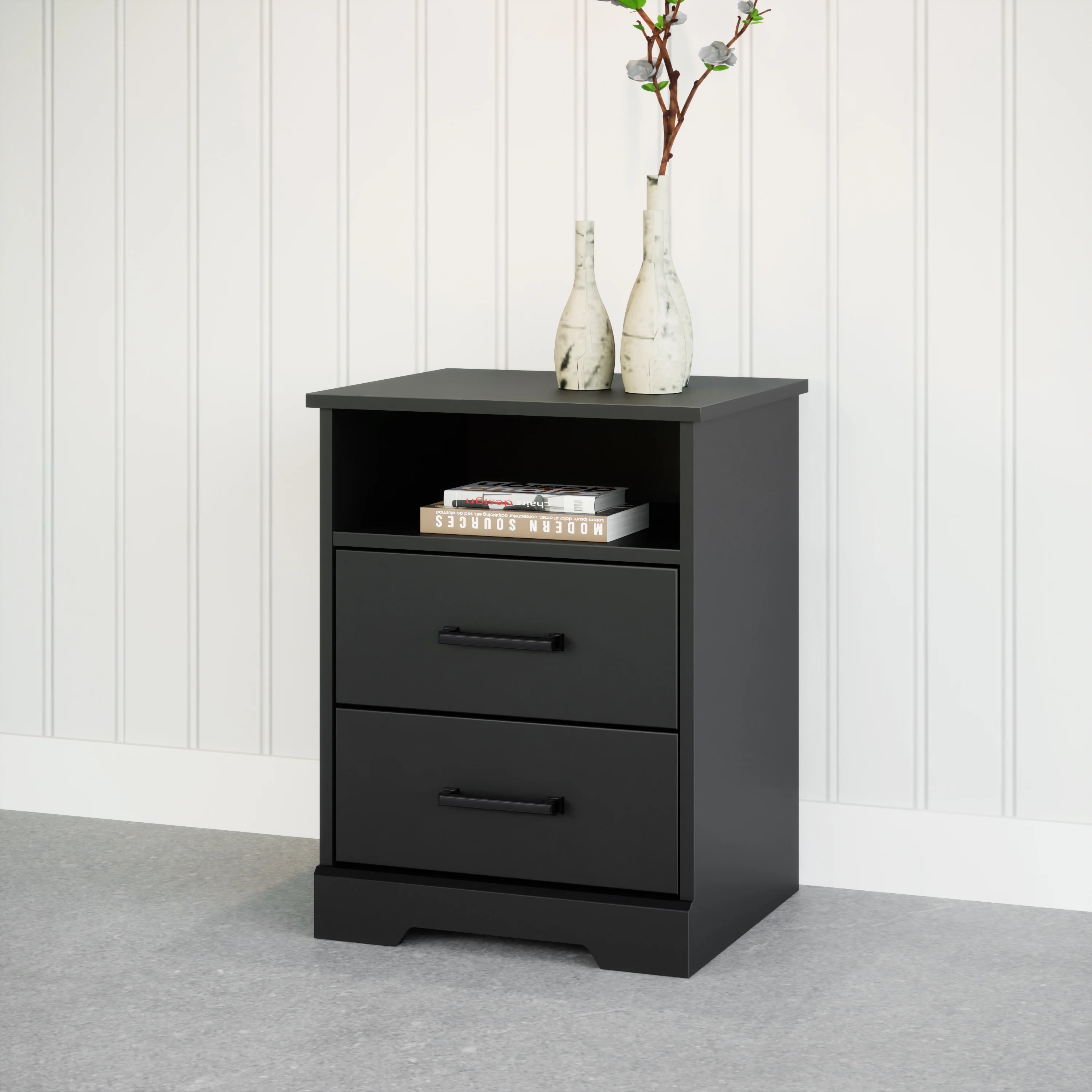 South Shore Step One 1-Drawer Nightstand - End Table with Storage Black
