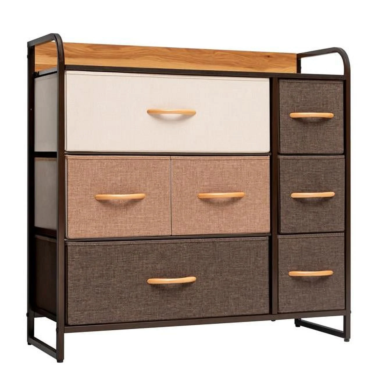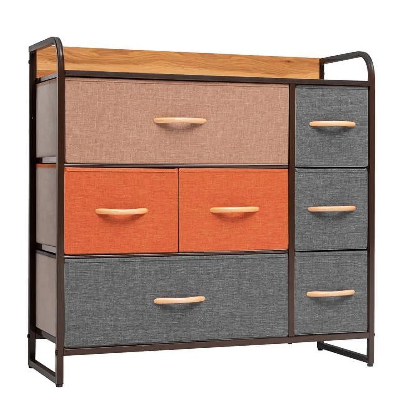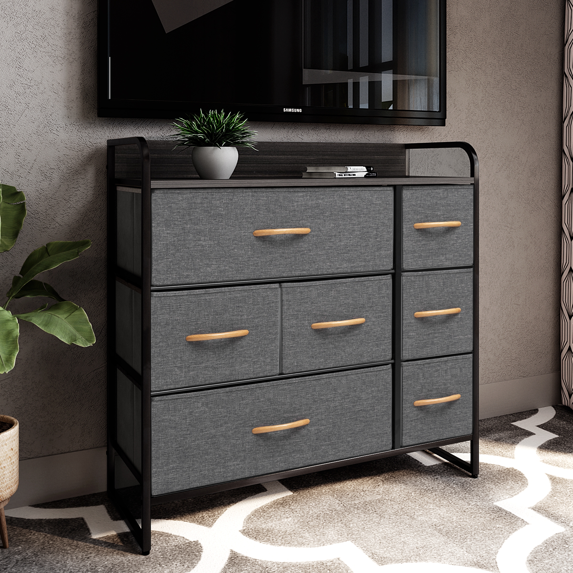 HomeRoots 484688 32 in. Steel, Fabric Seven Drawer Dresser, Gray & Black