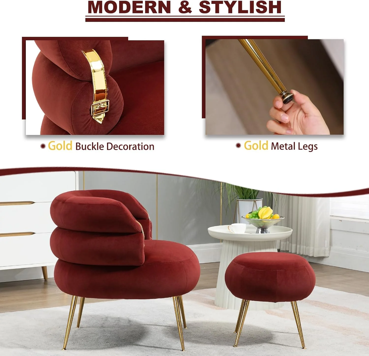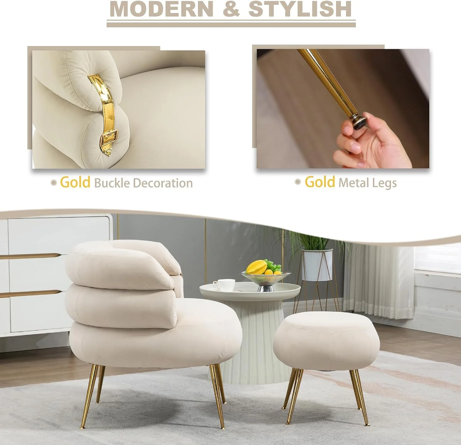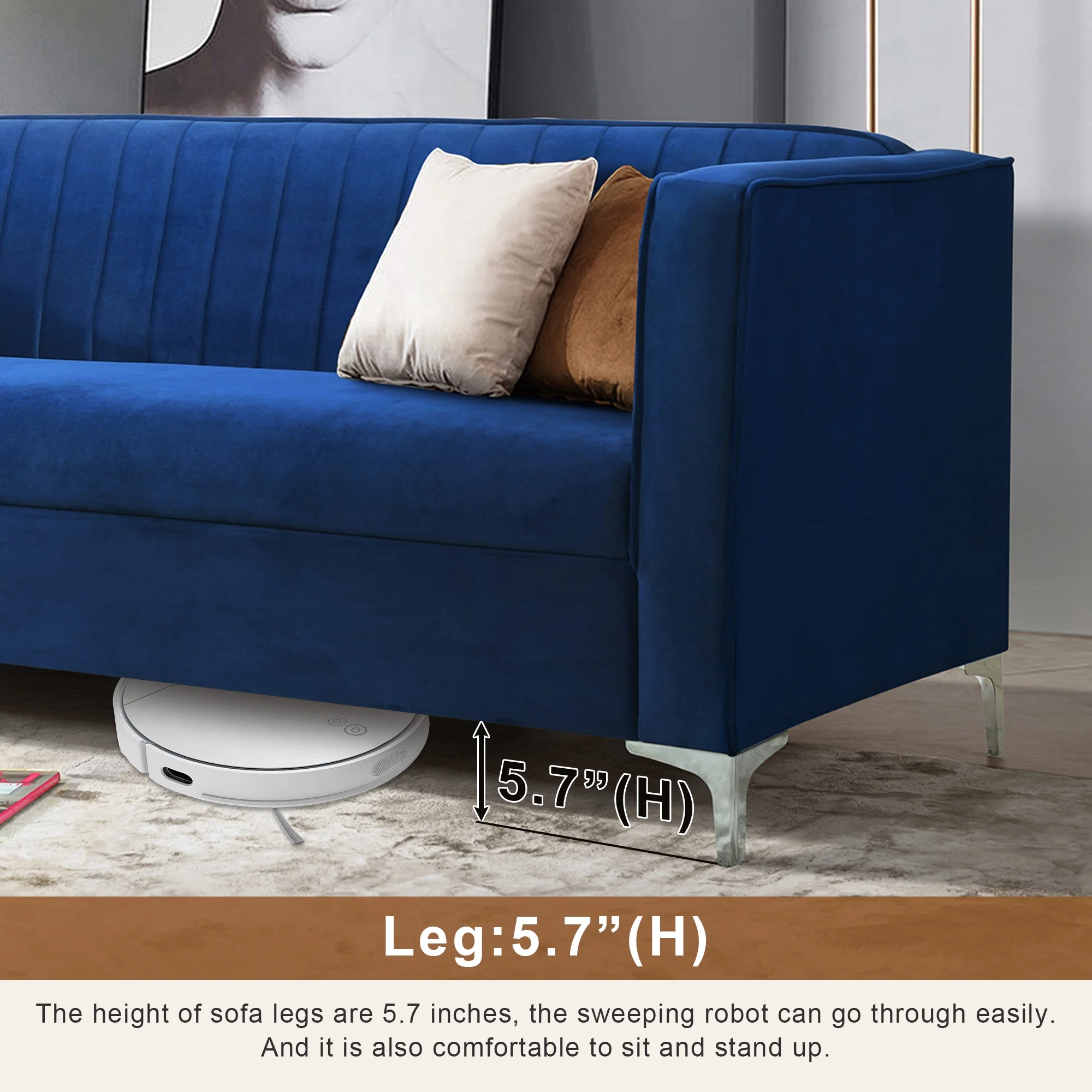 Mid-Century Modern Velvet Sofa, Upholstered Couch Loveseat with Metal Legs Removable Cushions for Living Room Bedroom Office