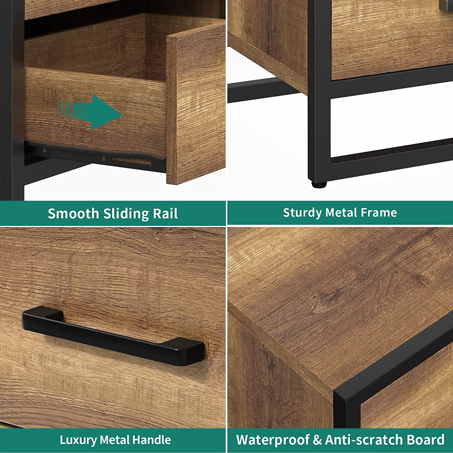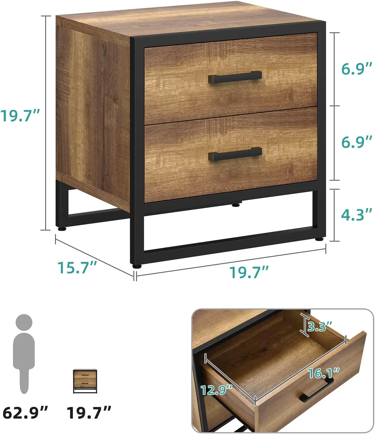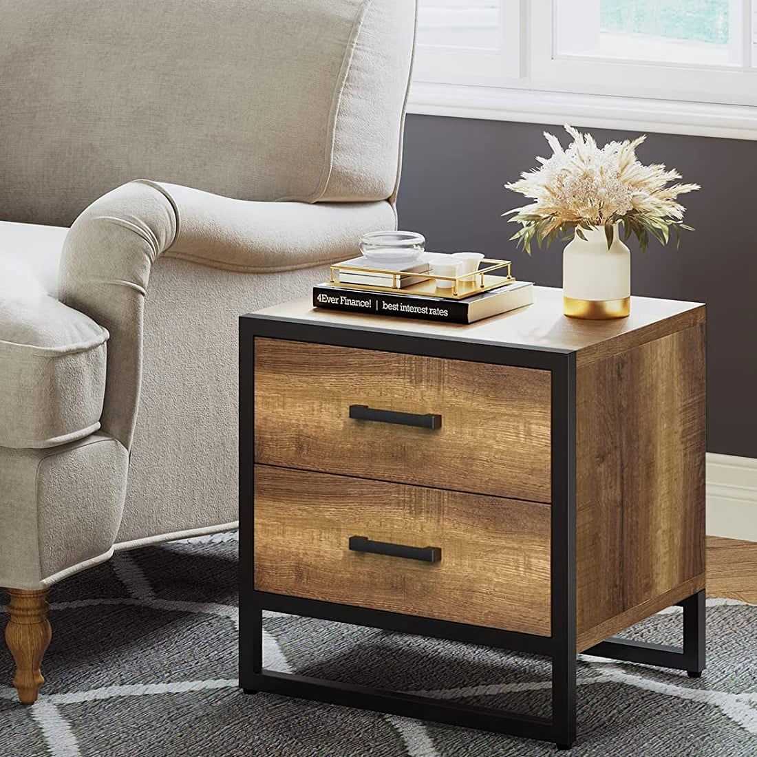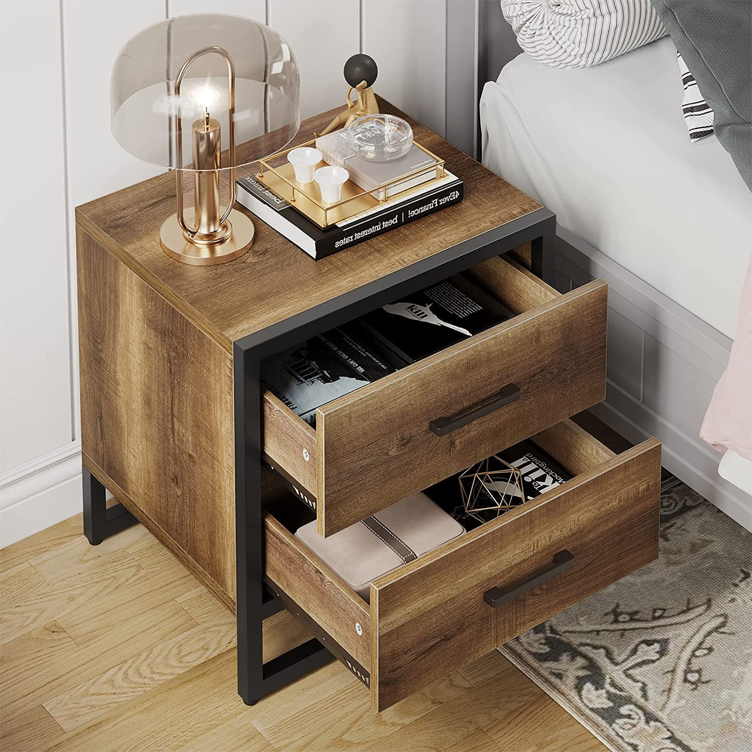 DEXTRUS Farmhouse Side Table with 2 Drawers End Table Nightstand for Bedroom Living Room, Brown
