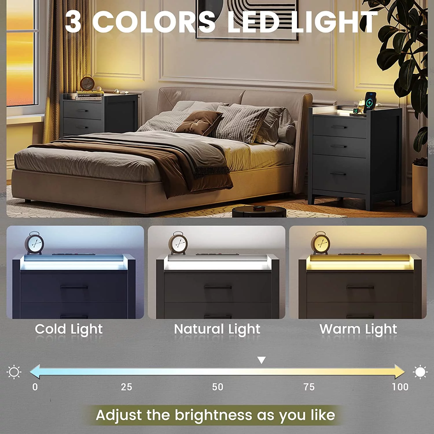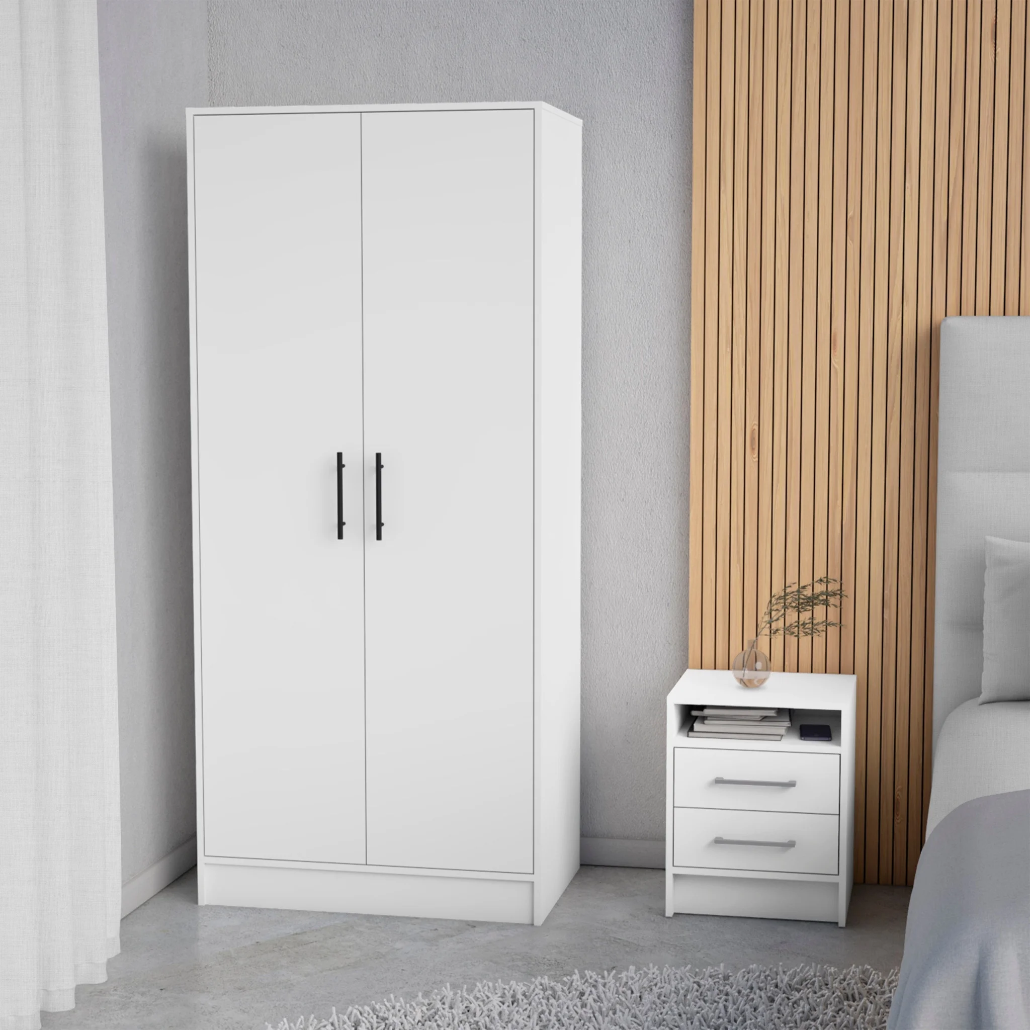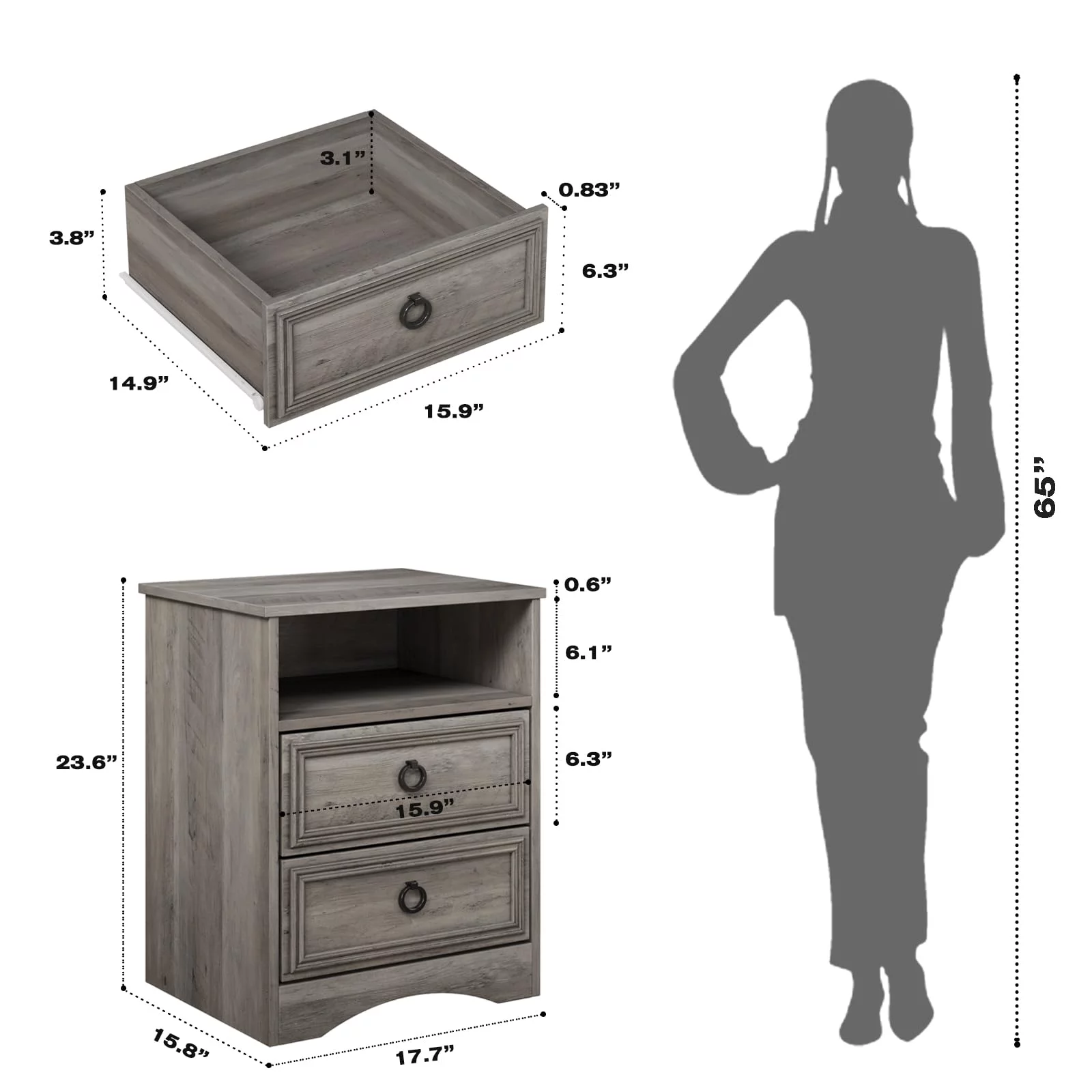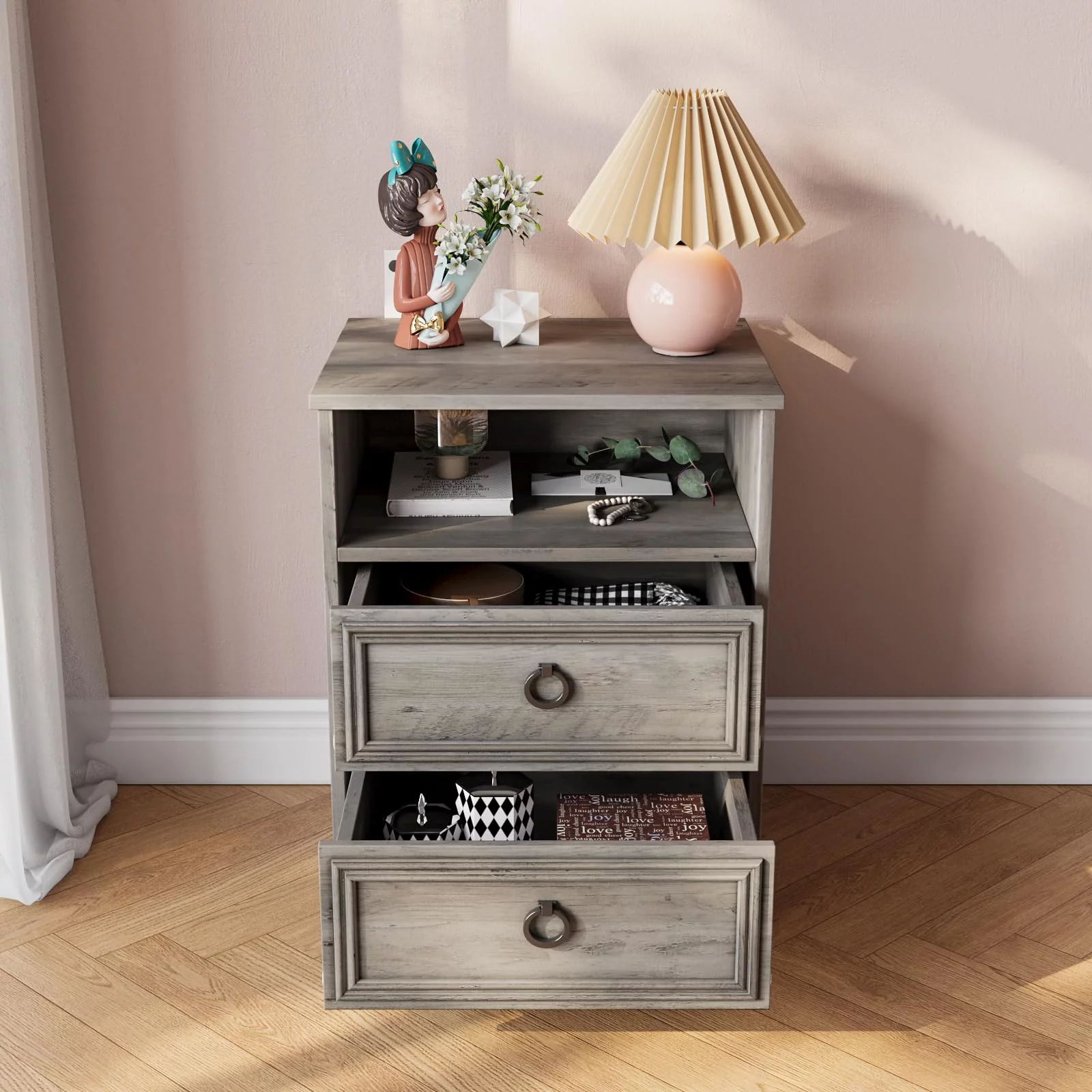 Furpezoo Nightstand Set of 2, Bedroom Bedside Table with 2 Drawers, Compartment ,Gray