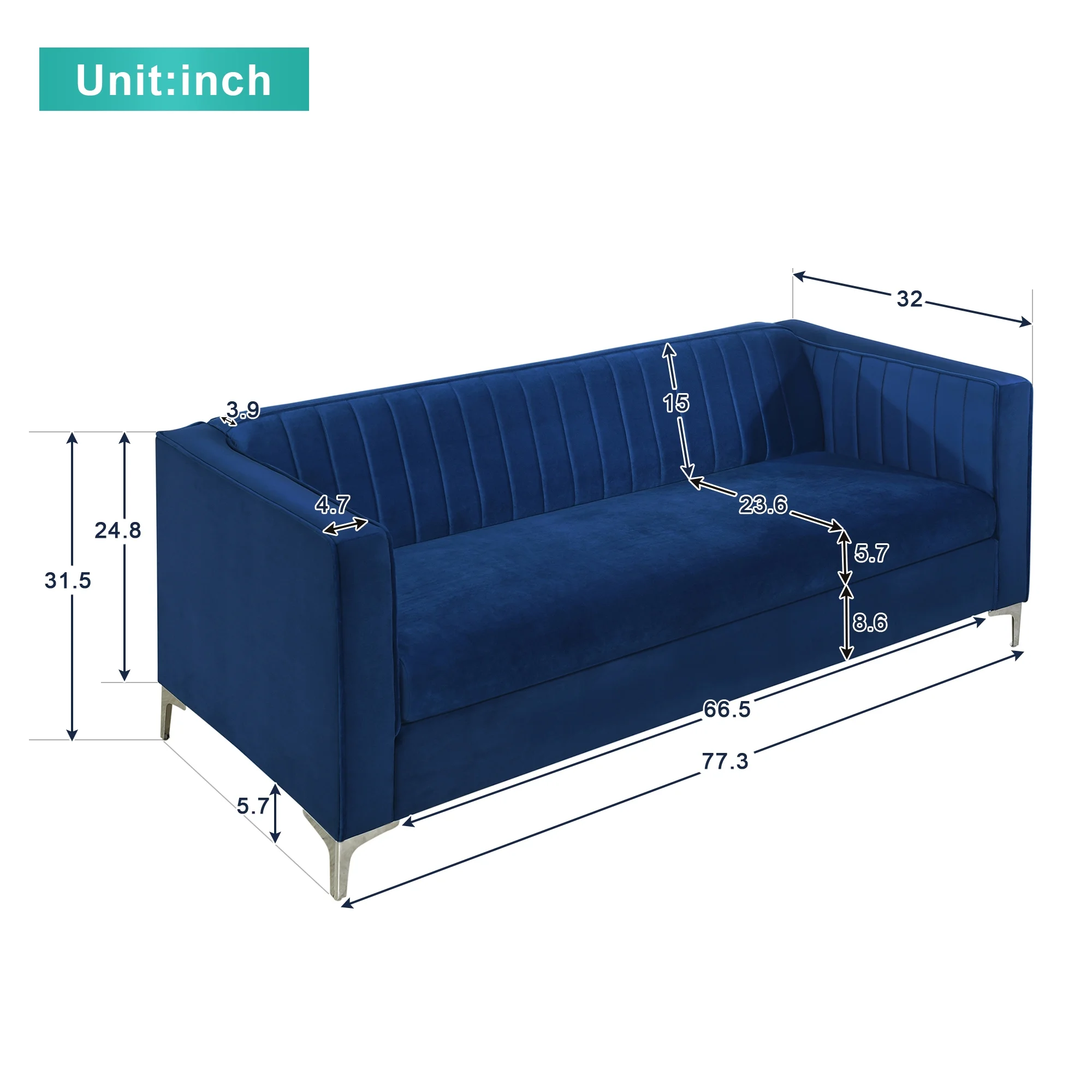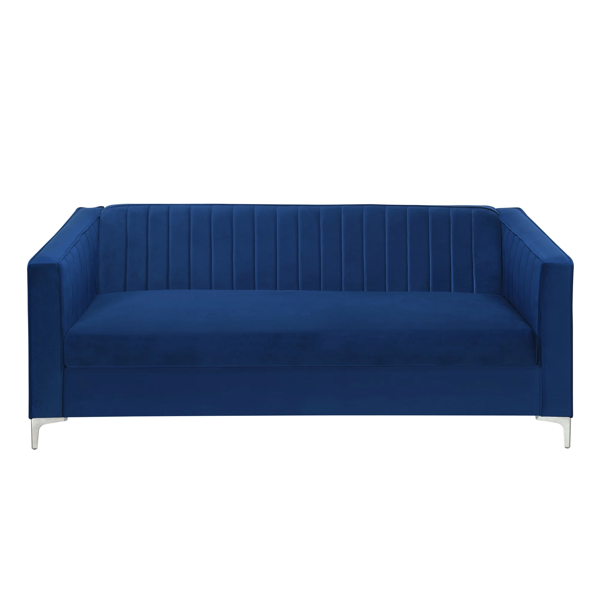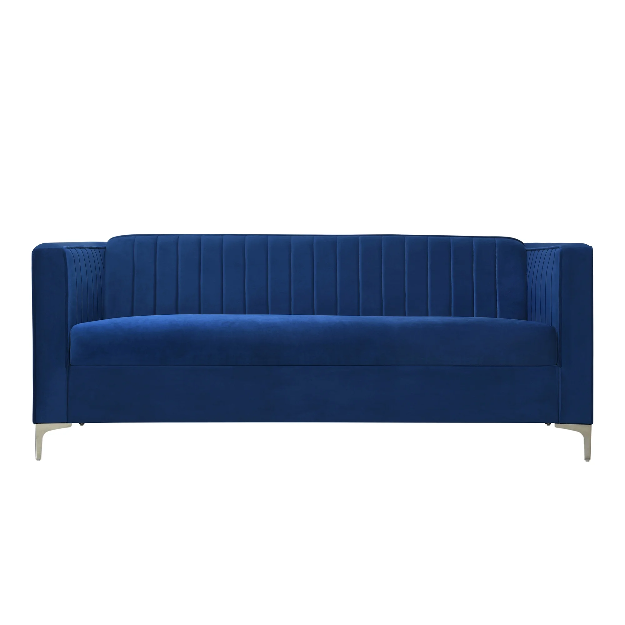 Iconic Home Rosa Sofa Velvet Upholstered Single Cushion Seat Vertical Channel Quilted Back Platform Base Design