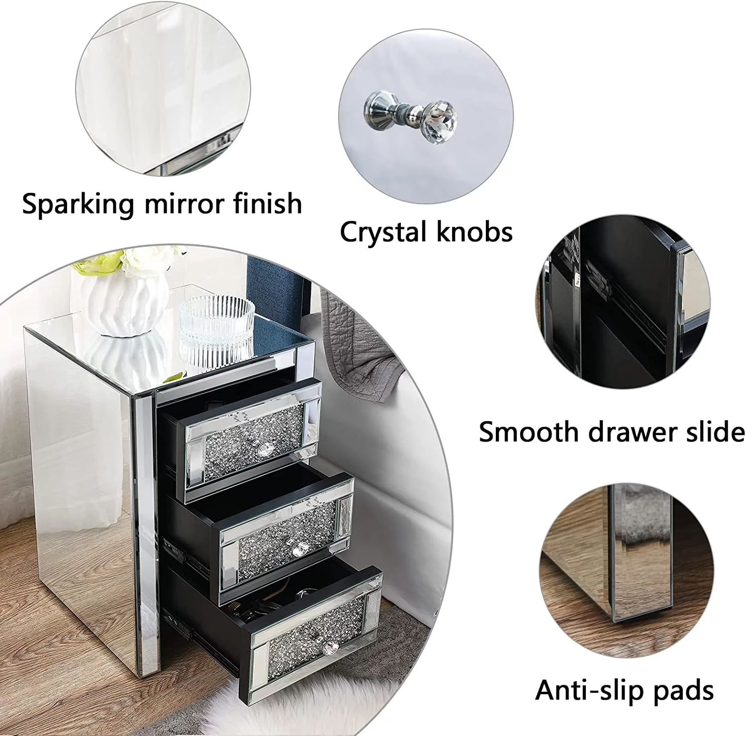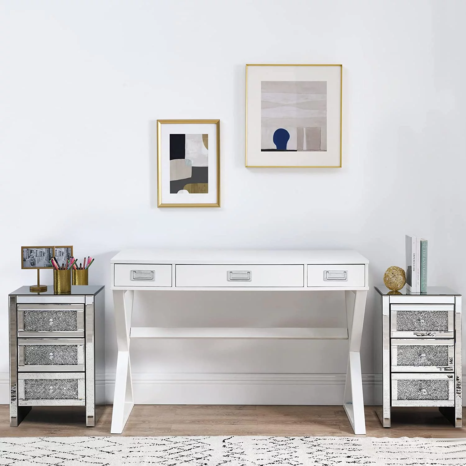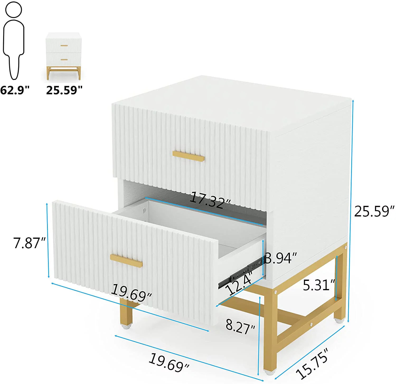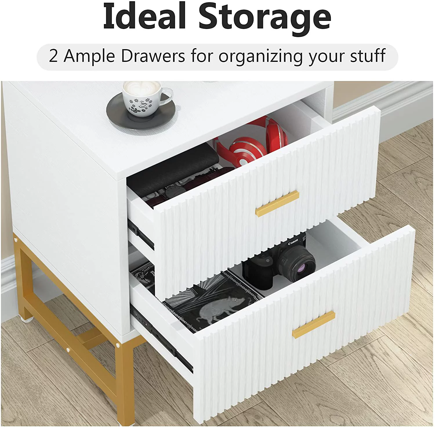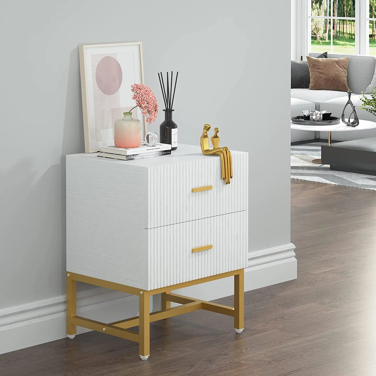Tribesigns Nightstand Bedside Table with 2 Drawers Living Room Side End Table White and Gold