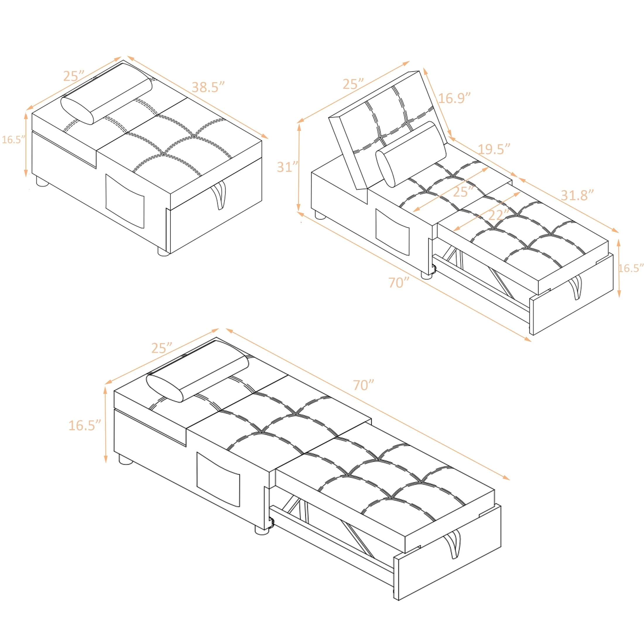 JOMEED Multi Function Folding Single Sofa Convertible Sleeper Bed, Gray