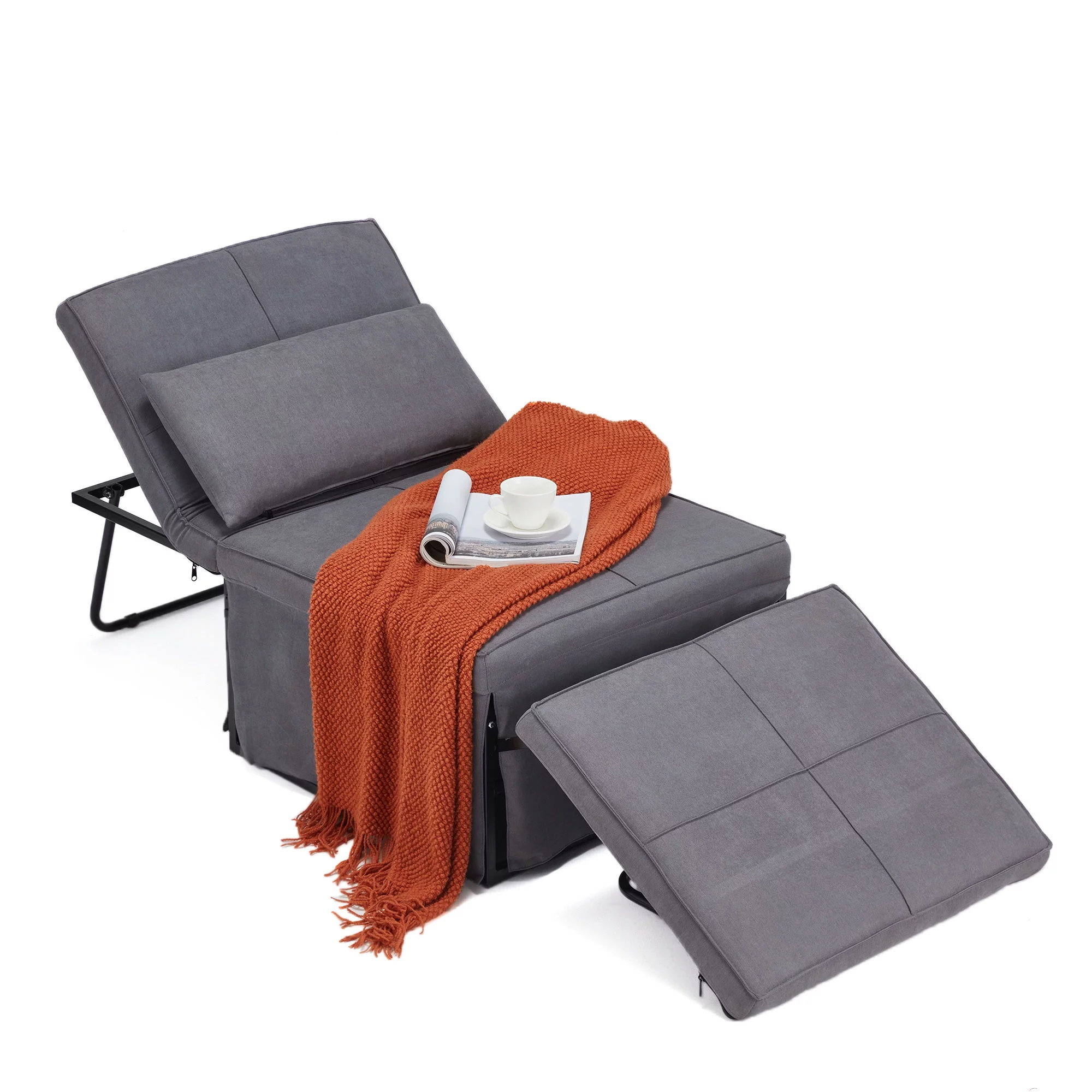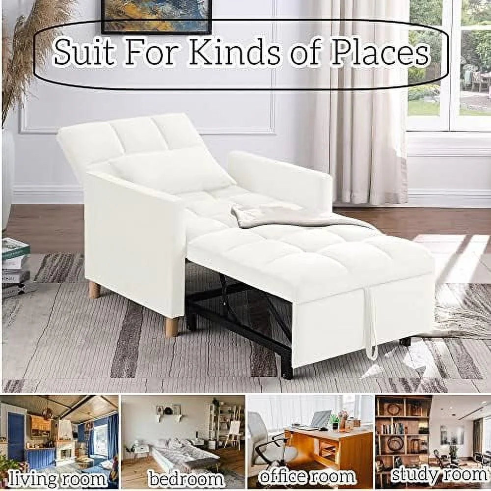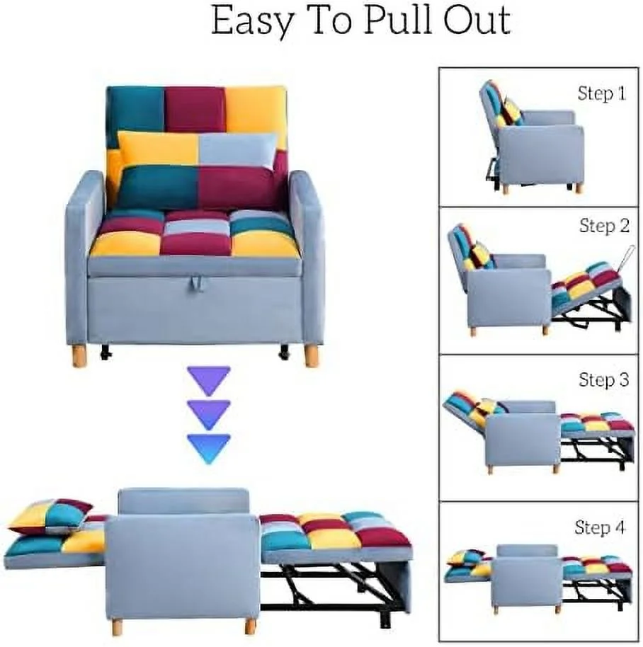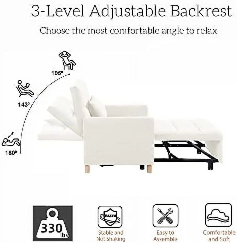 Noodeniya Pull Out Sofa Chair Bed, Convertible Sleeper Chair with Linen Fabric, Single Chair Bed for Living Room, Gray