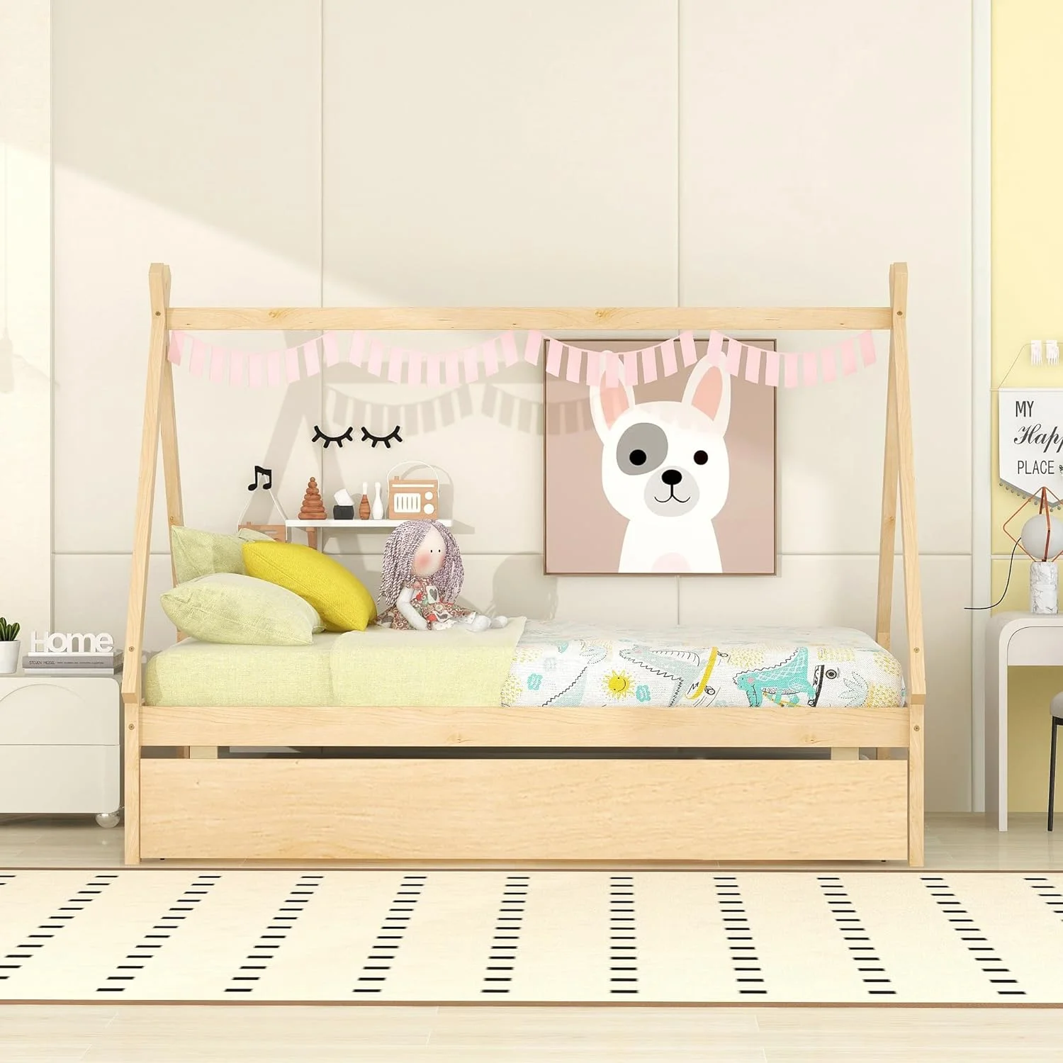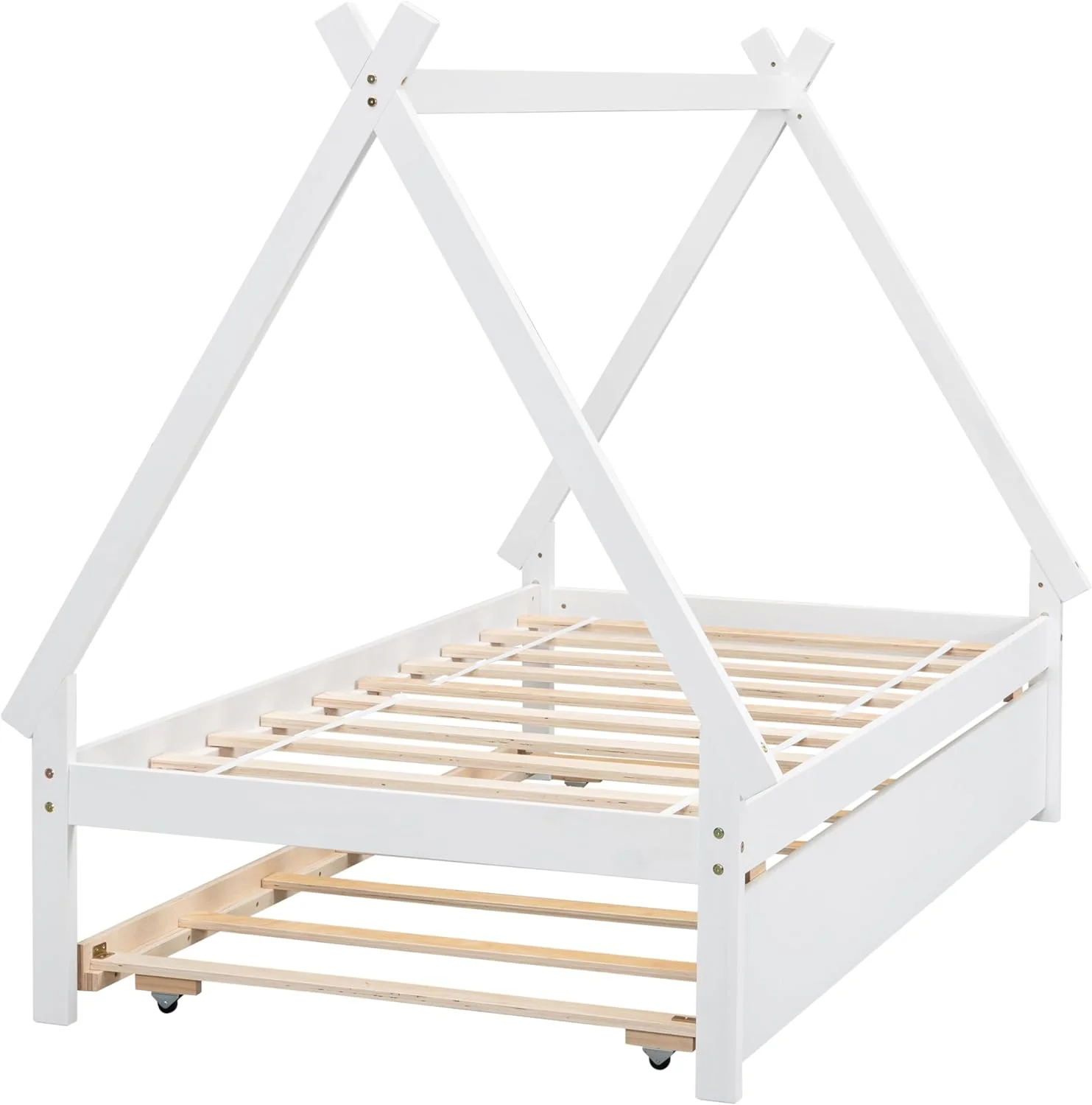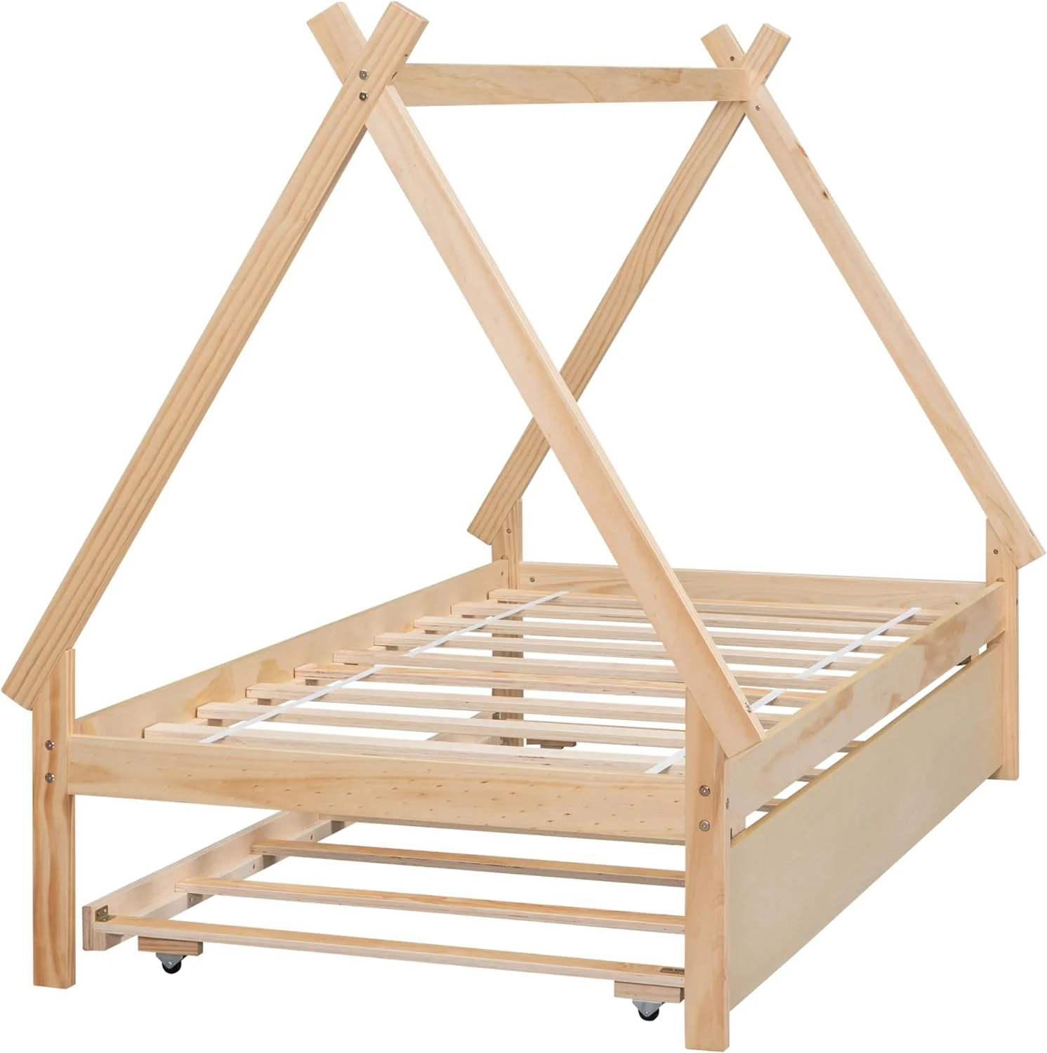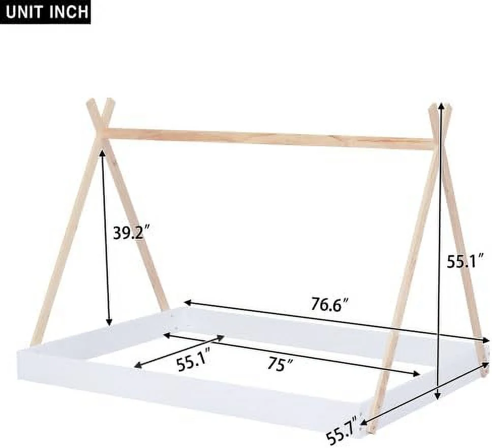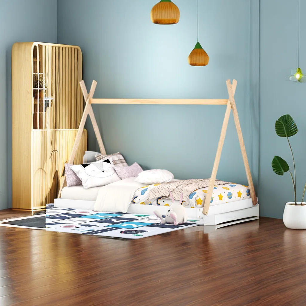 Size Tet Bed For Kids, Teepee Bed Frame With Trudle,Wood Motessori Bed For Girls Boys Bedroom Furiture, atural