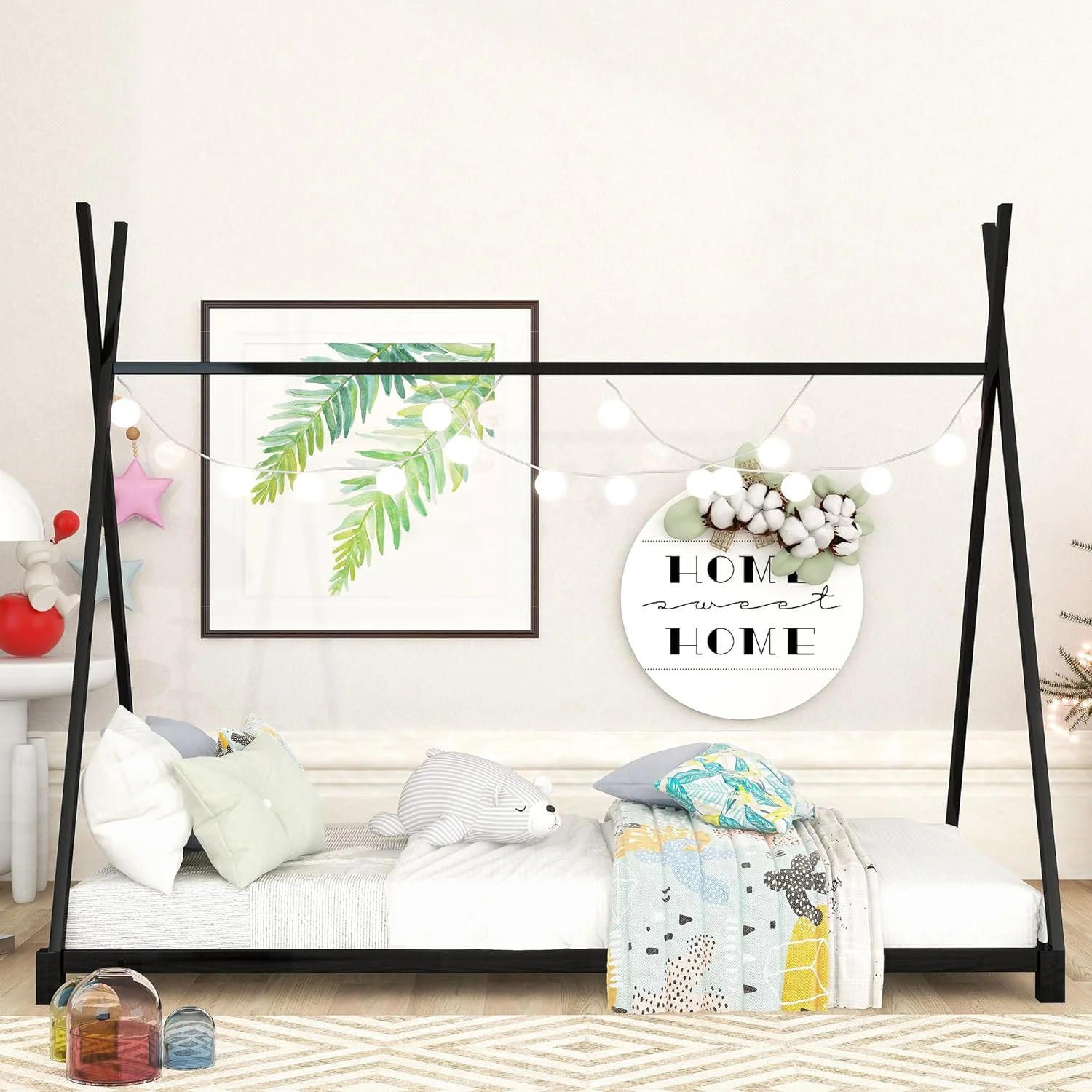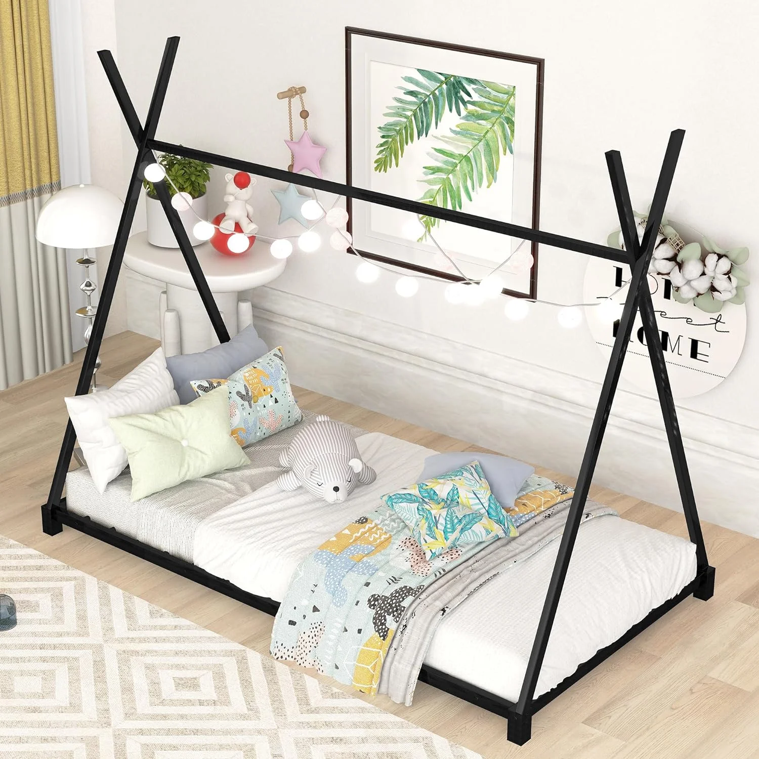 Full House Beds Metal Teepee Bed Frame, Full Size Montessori Bed, Playhouse Bed For Kids Boys Girls Teens
