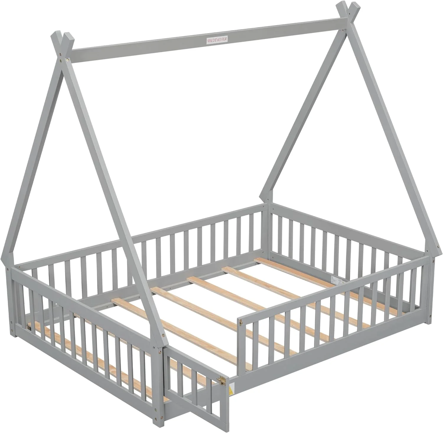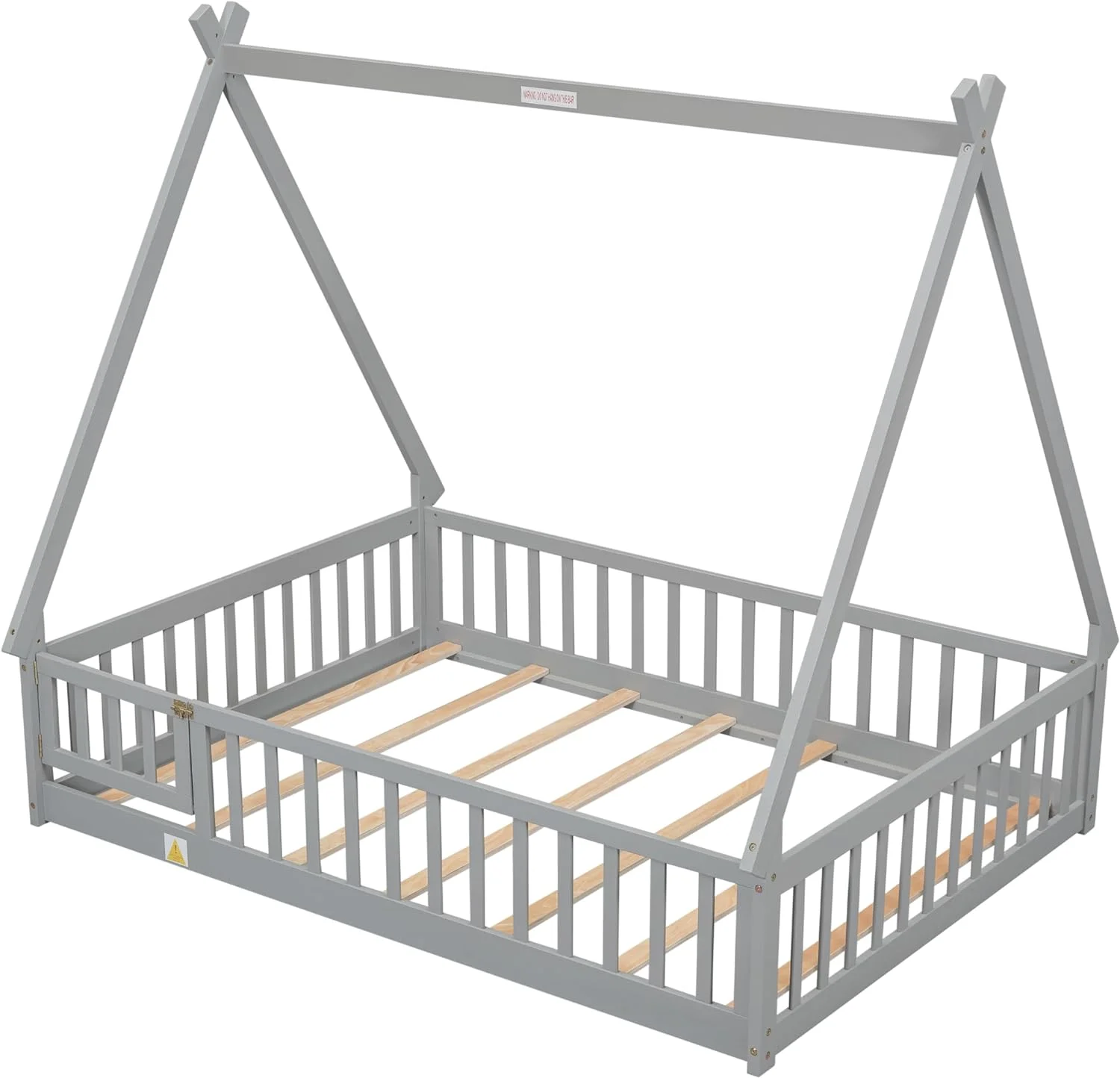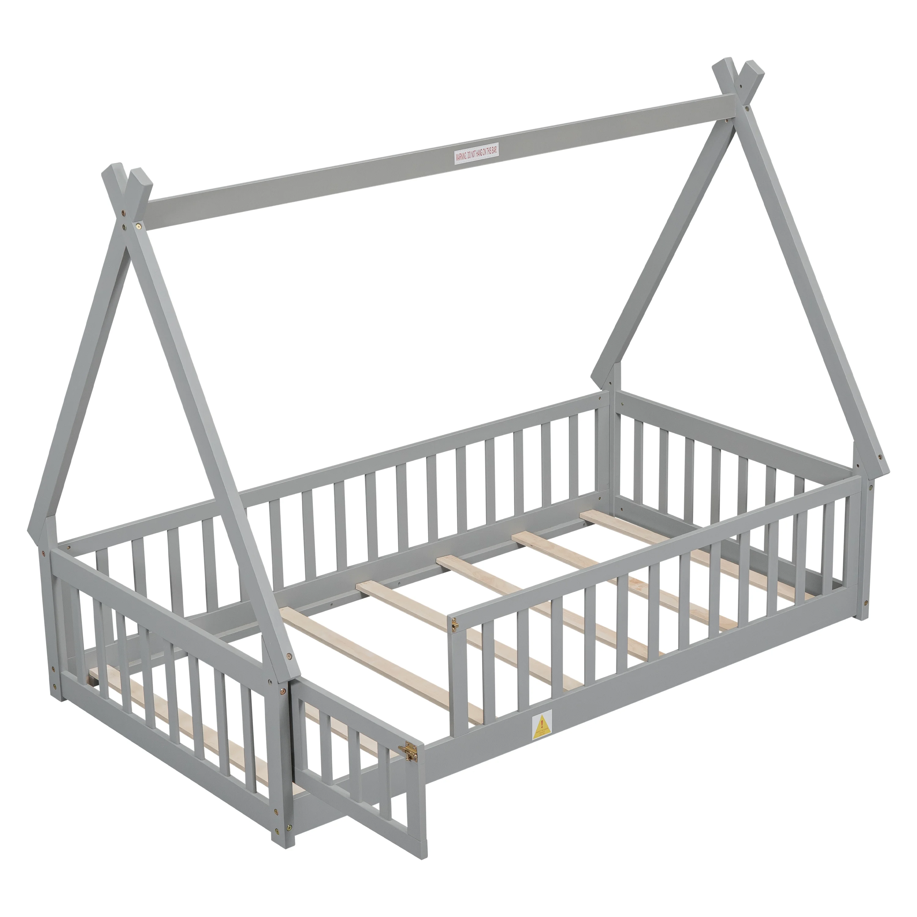 CoSoTower Twin Tent-Shaped Floor Bed, with Guardrails, Slats, Door ,Grey