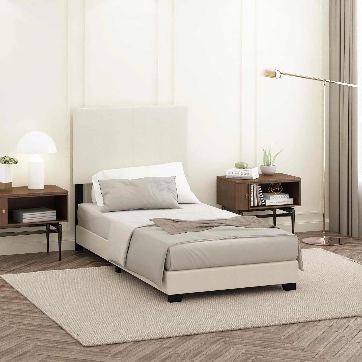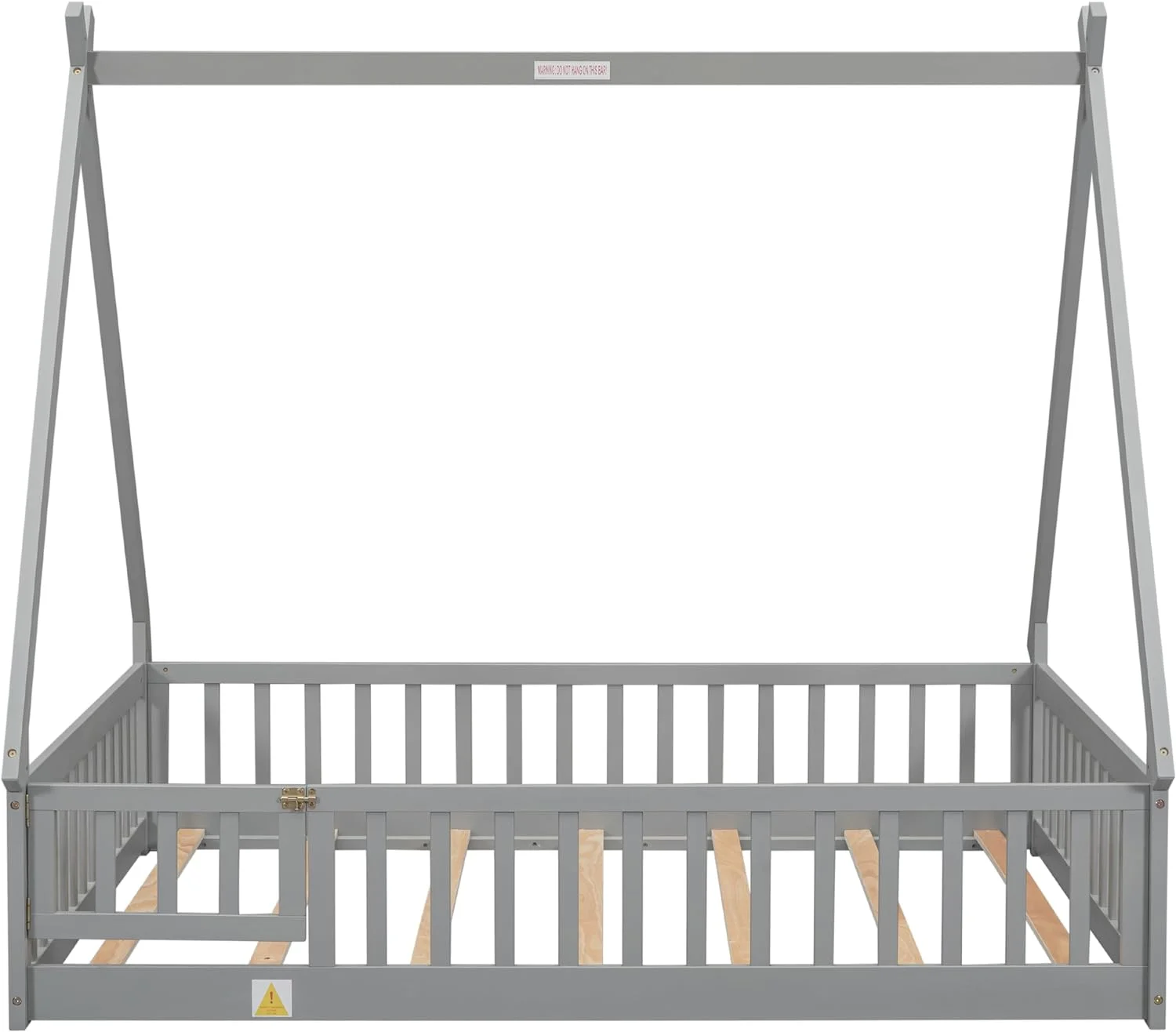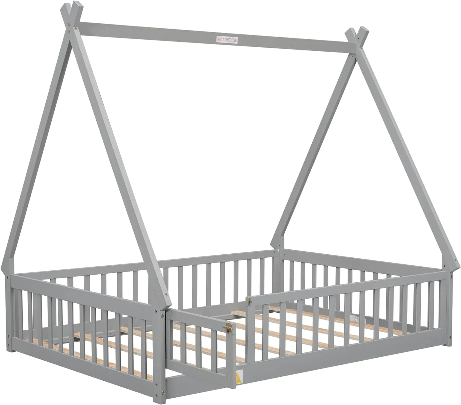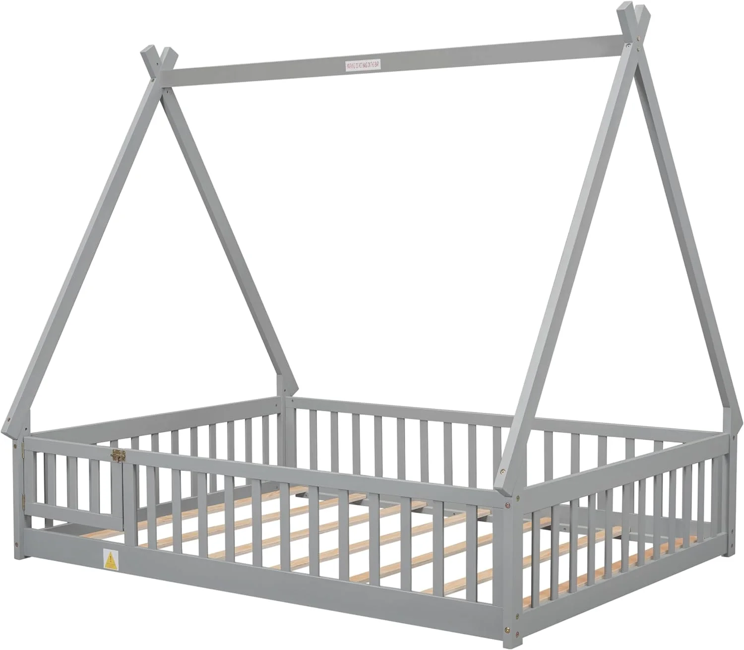 CoSoTower Twin Tent-Shaped Floor Bed, with Guardrails, Slats, Door ,Grey