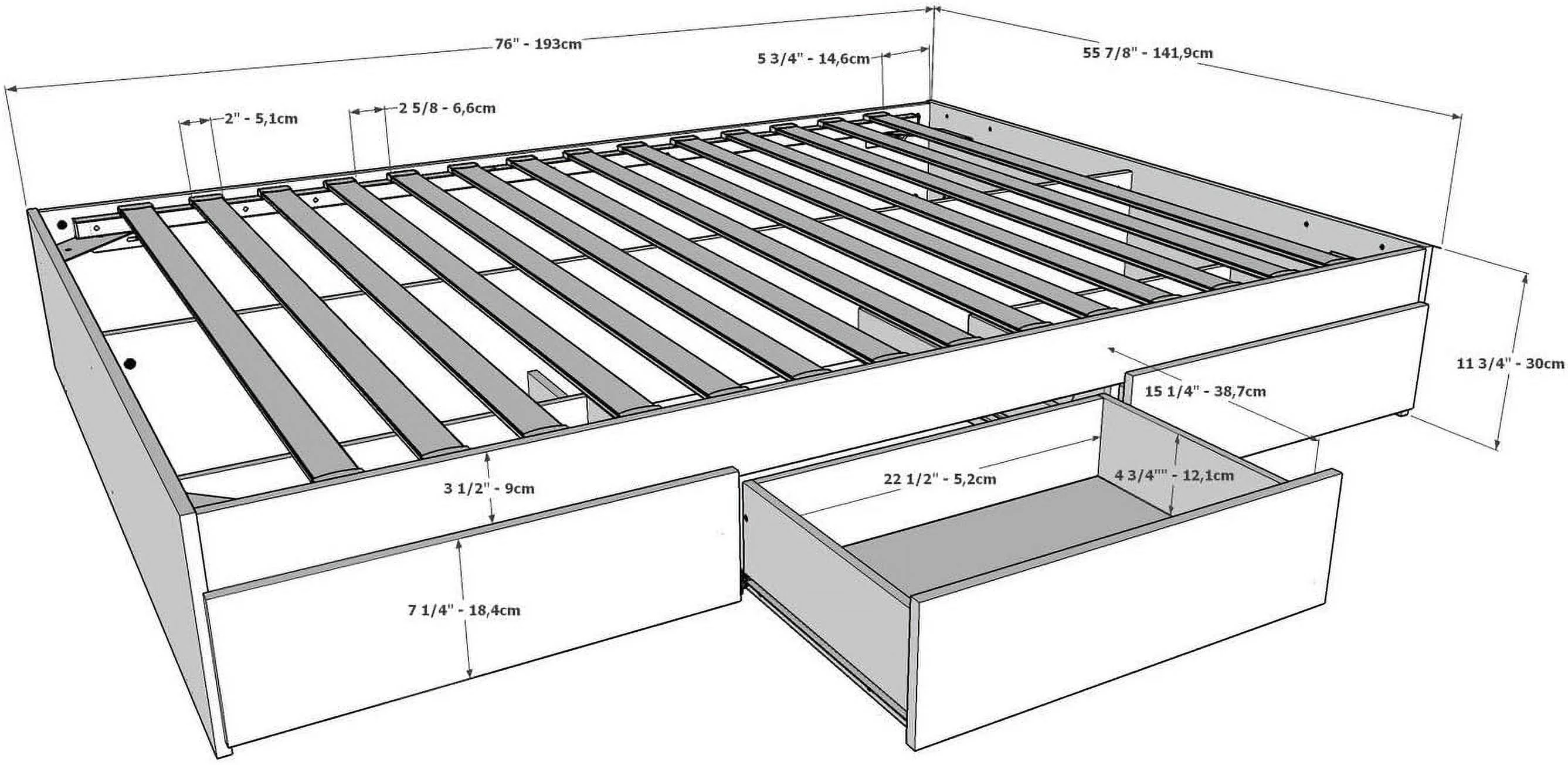 Cottage Kids Furniture TeePee Montessori Bed with Slats and 2 Guard Rails