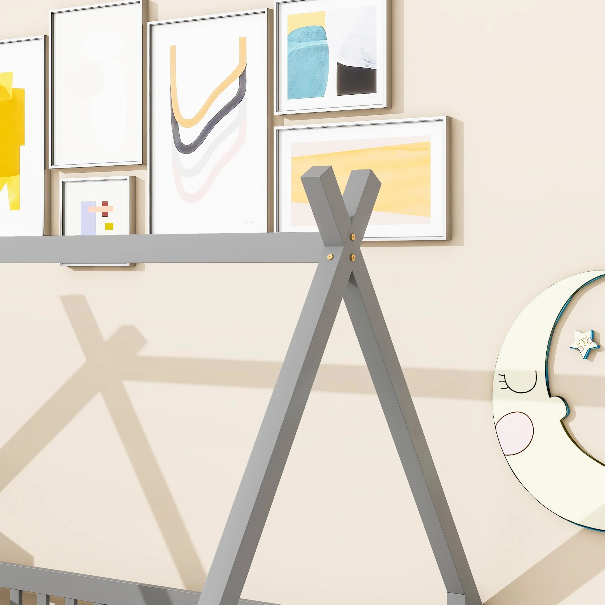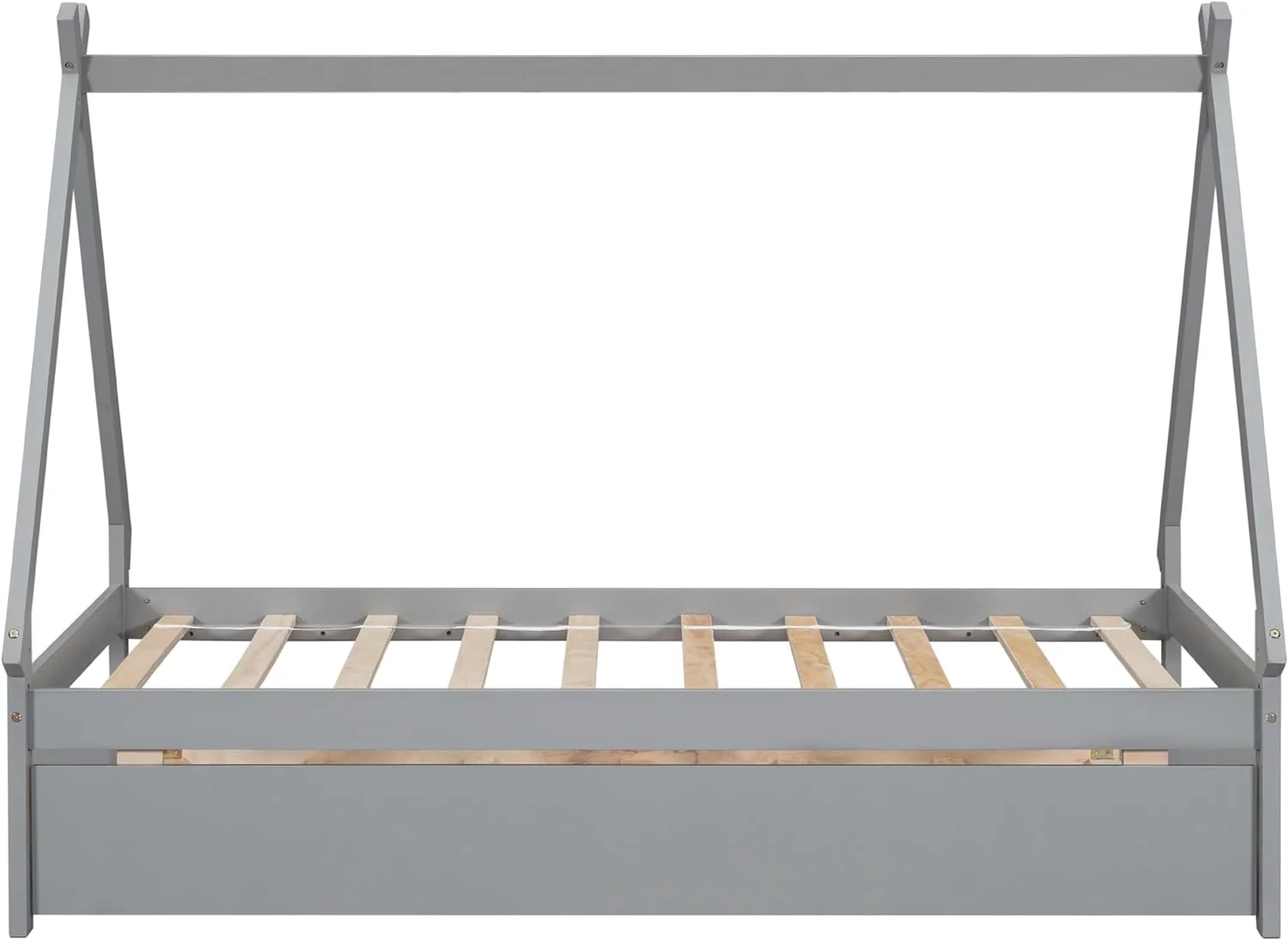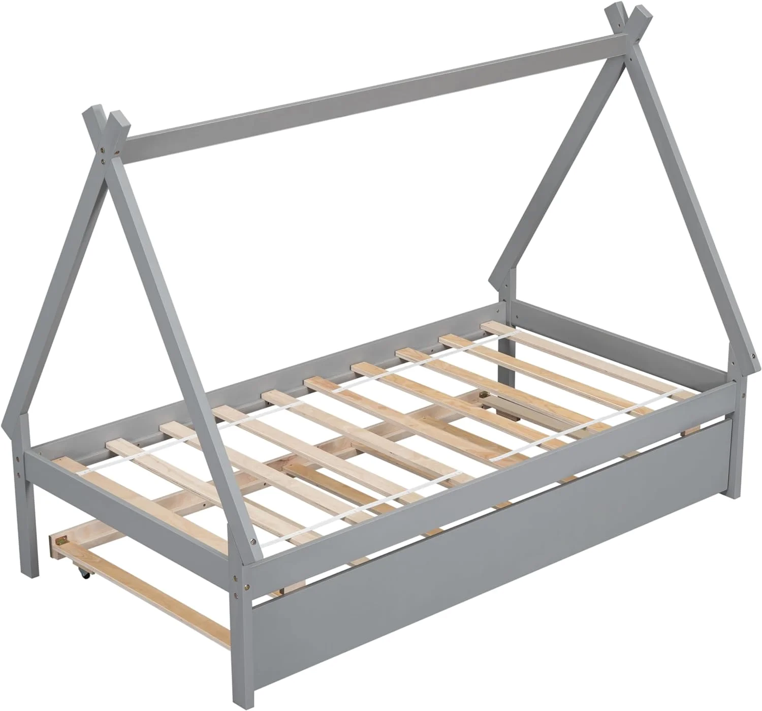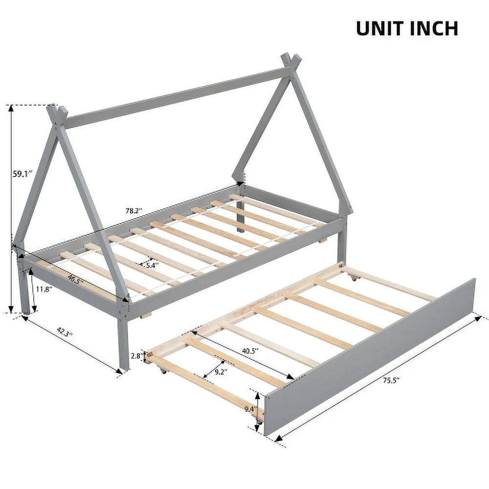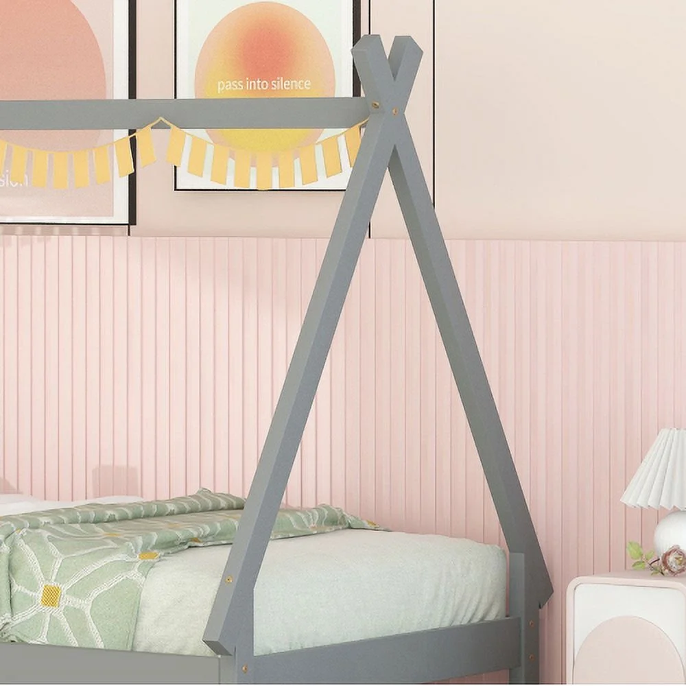 Size Tet Bed For Kids, Teepee Bed Frame With Trudle,Wood Motessori Bed For Girls Boys Bedroom Furiture, Grey