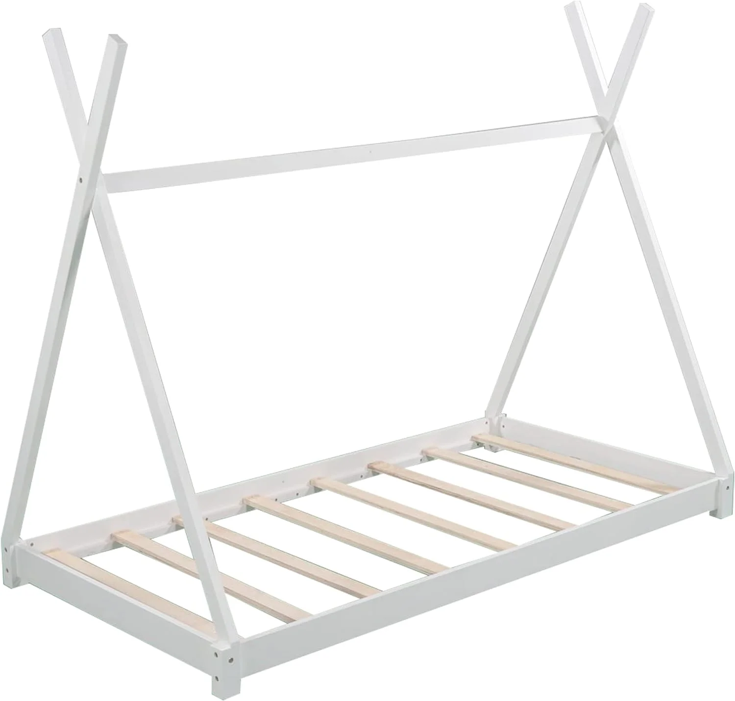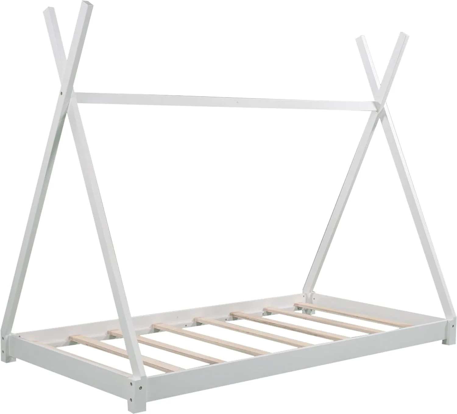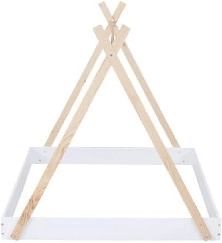 House Beds Wood Toddler House Bed Frame Montessori Style Teepee Bed For Kids Boys Girls Teens, White