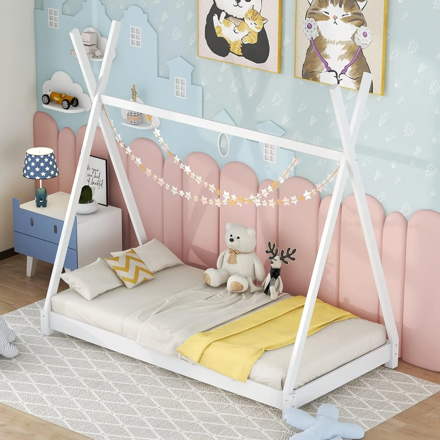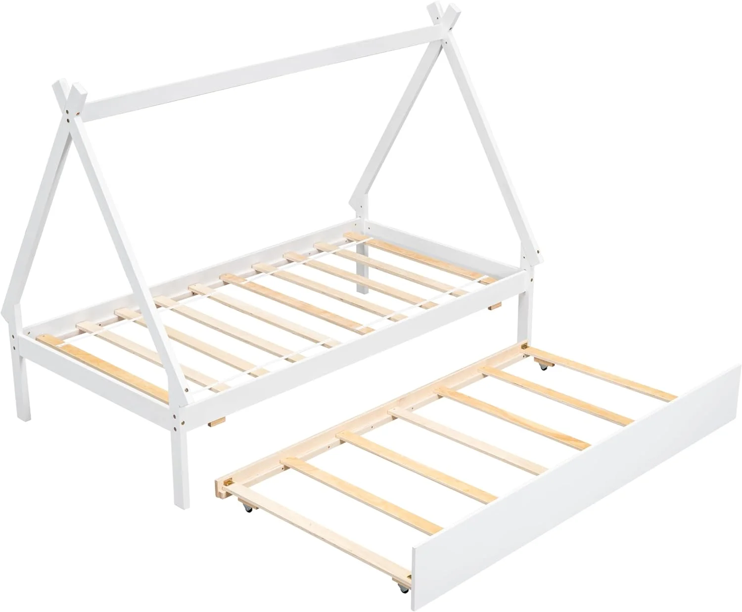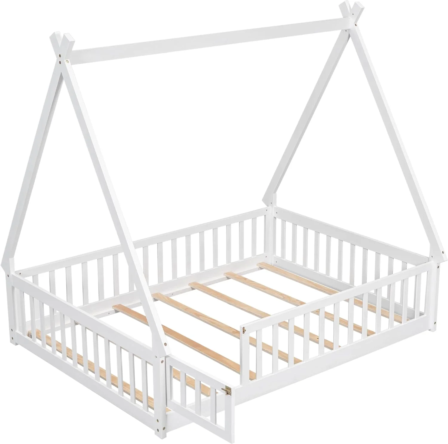 House Beds Wood Toddler House Bed Frame Montessori Style Teepee Bed For Kids Boys Girls Teens, White