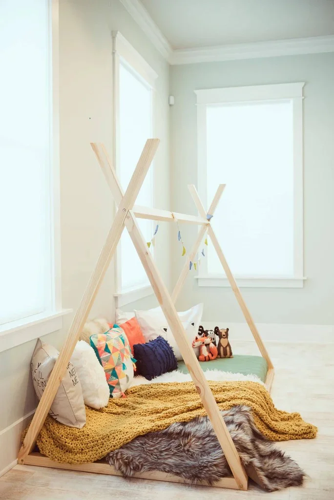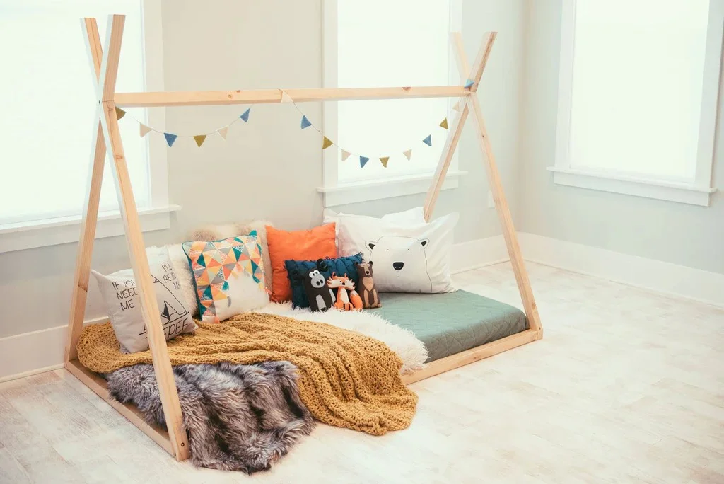 Cottage Kids Furniture TeePee Montessori Bed with Slats and Guard Rail