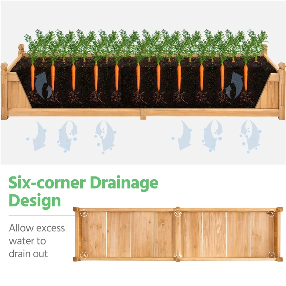 Topeakmart 90.5" L Wood Rectangular Garden Raised Planter Box for Garden, Light Brown