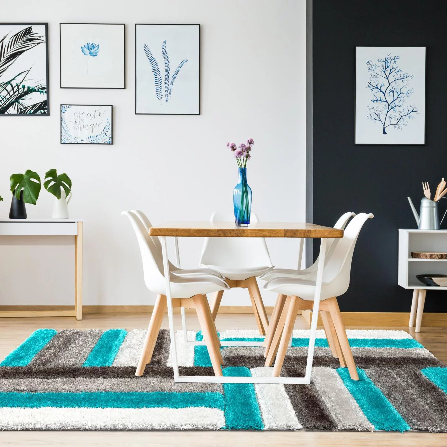 Luxe Weavers Shag Plush Geometric Turquoise 8x10 Area Rug, Indoor Carpet