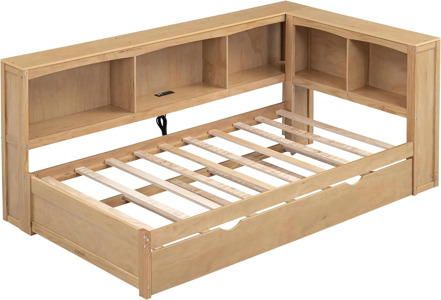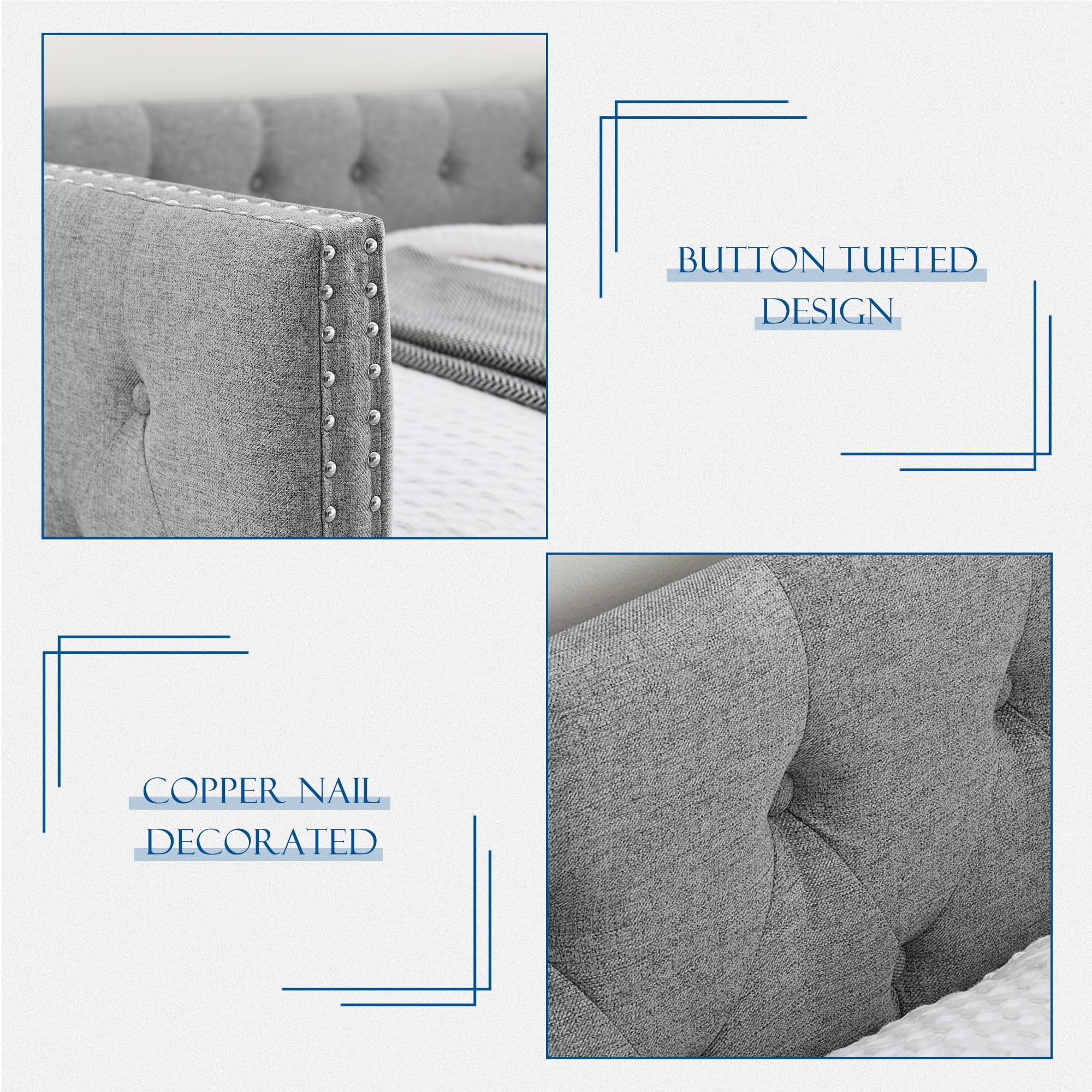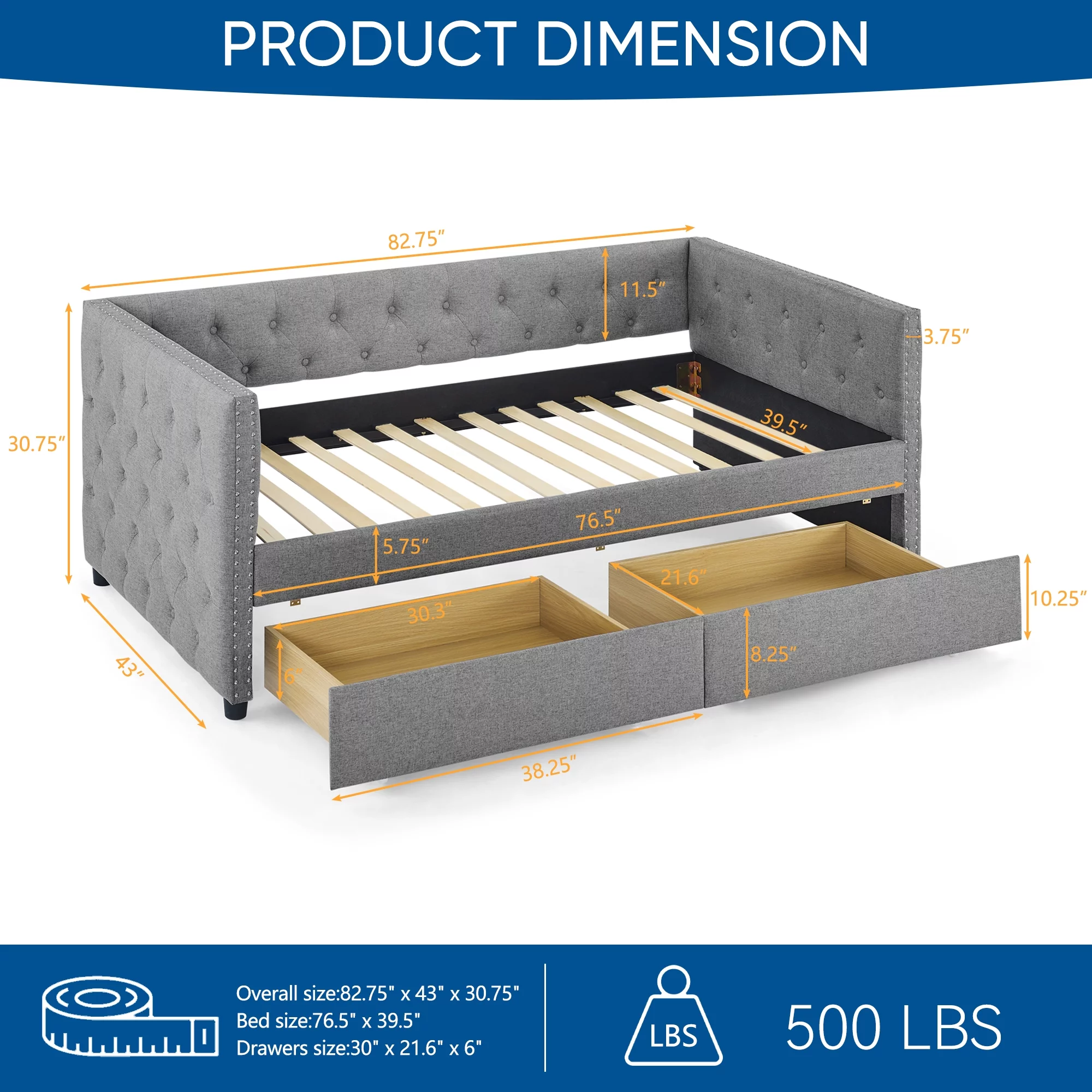 Muumblus Twin Size Daybed with Drawer, Upholstered Daybed with Button and Copper Nail, Gray