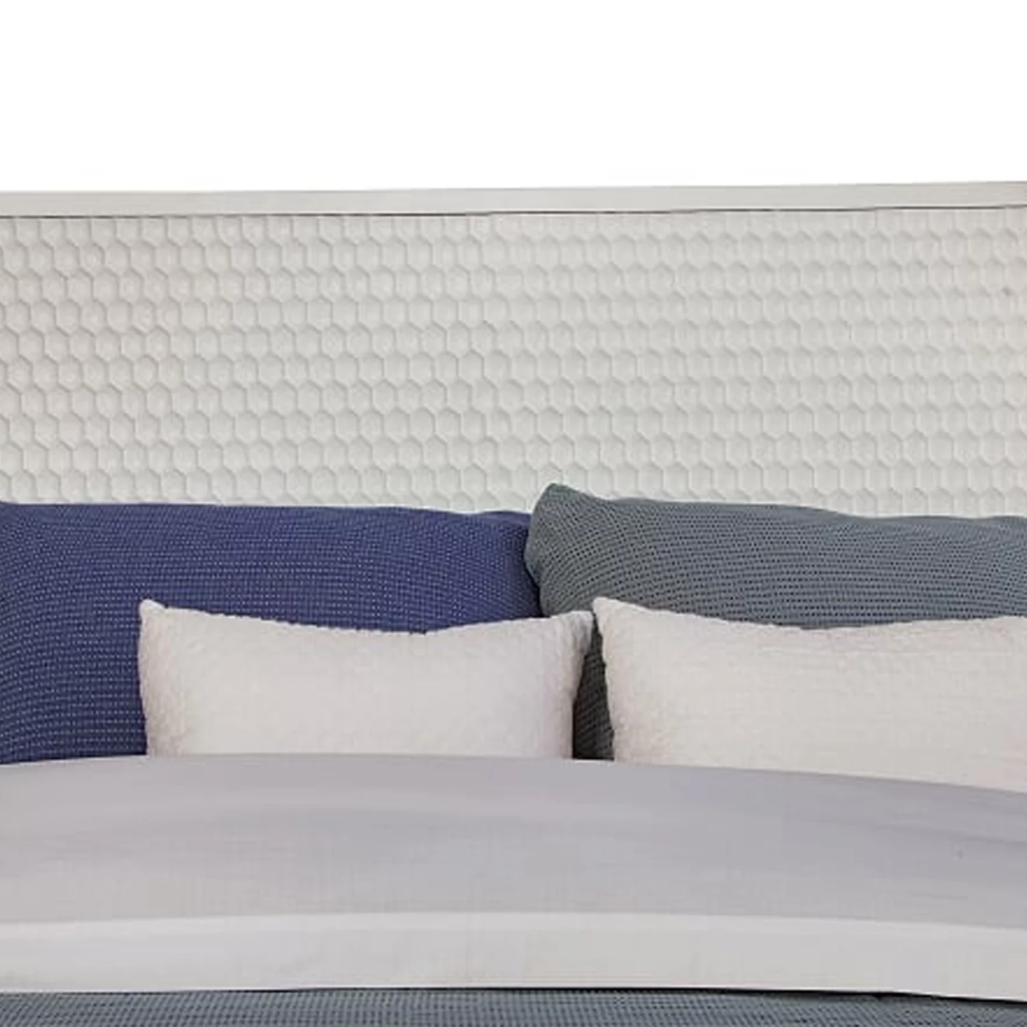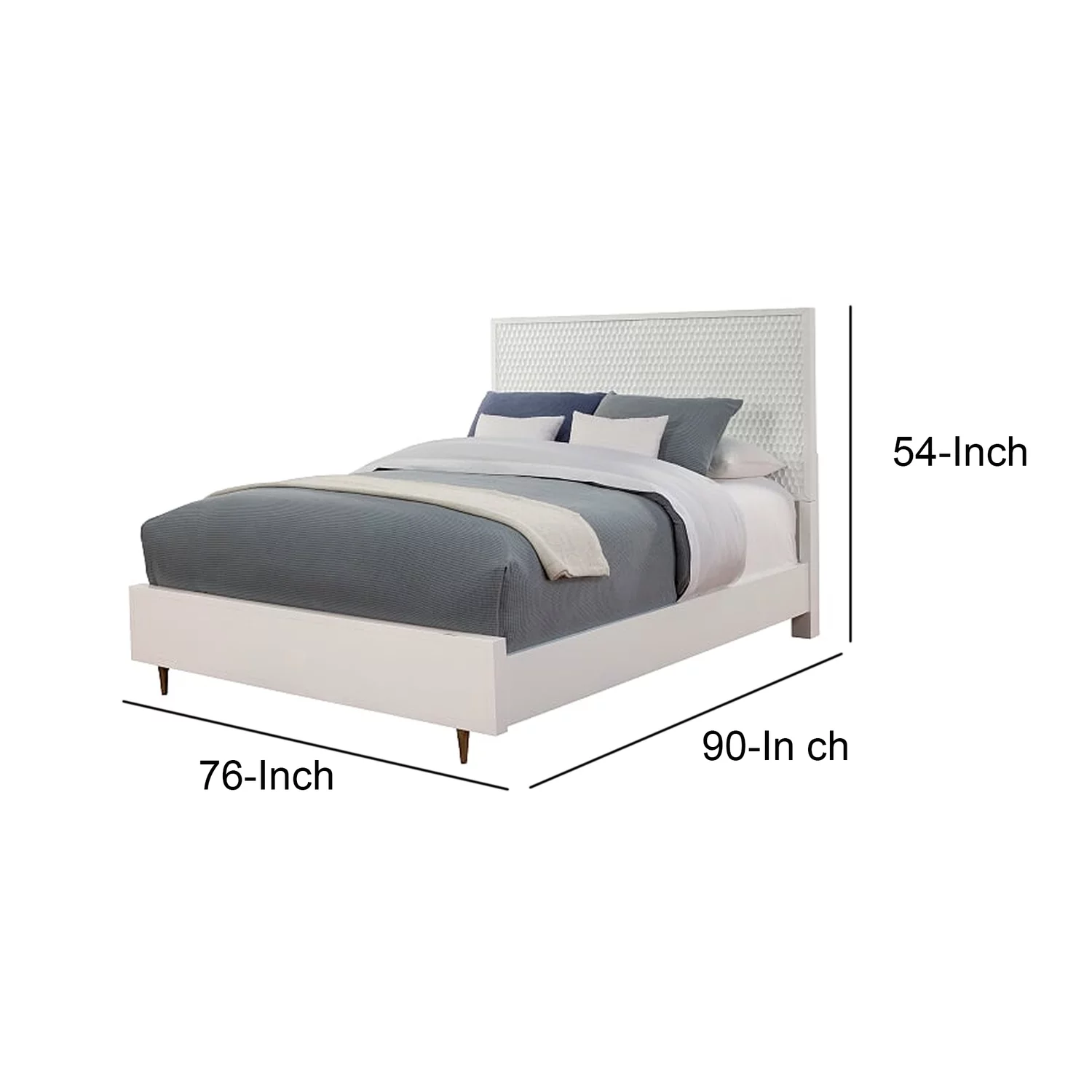 Benjara Wooden California King Bed with Honeycomb Design High Headboard, White