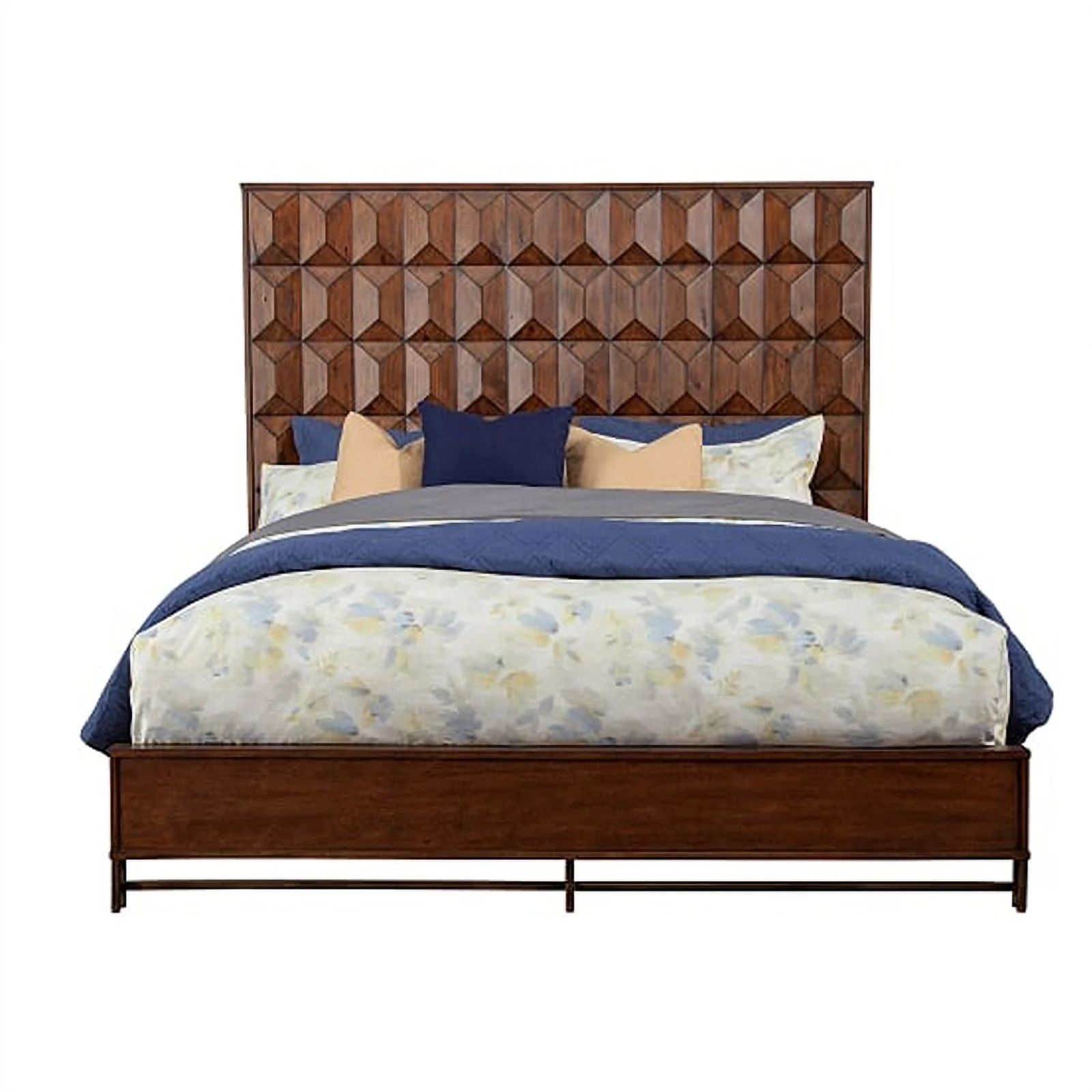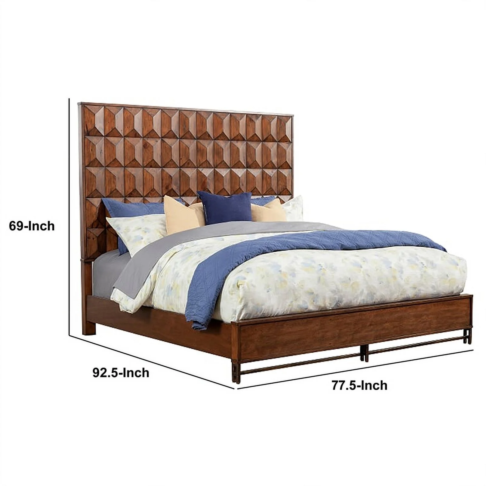 Wooden California King Bed with Honeycomb Design High Headboard Brown