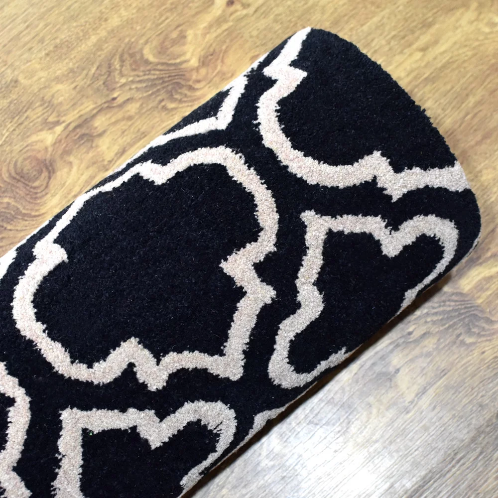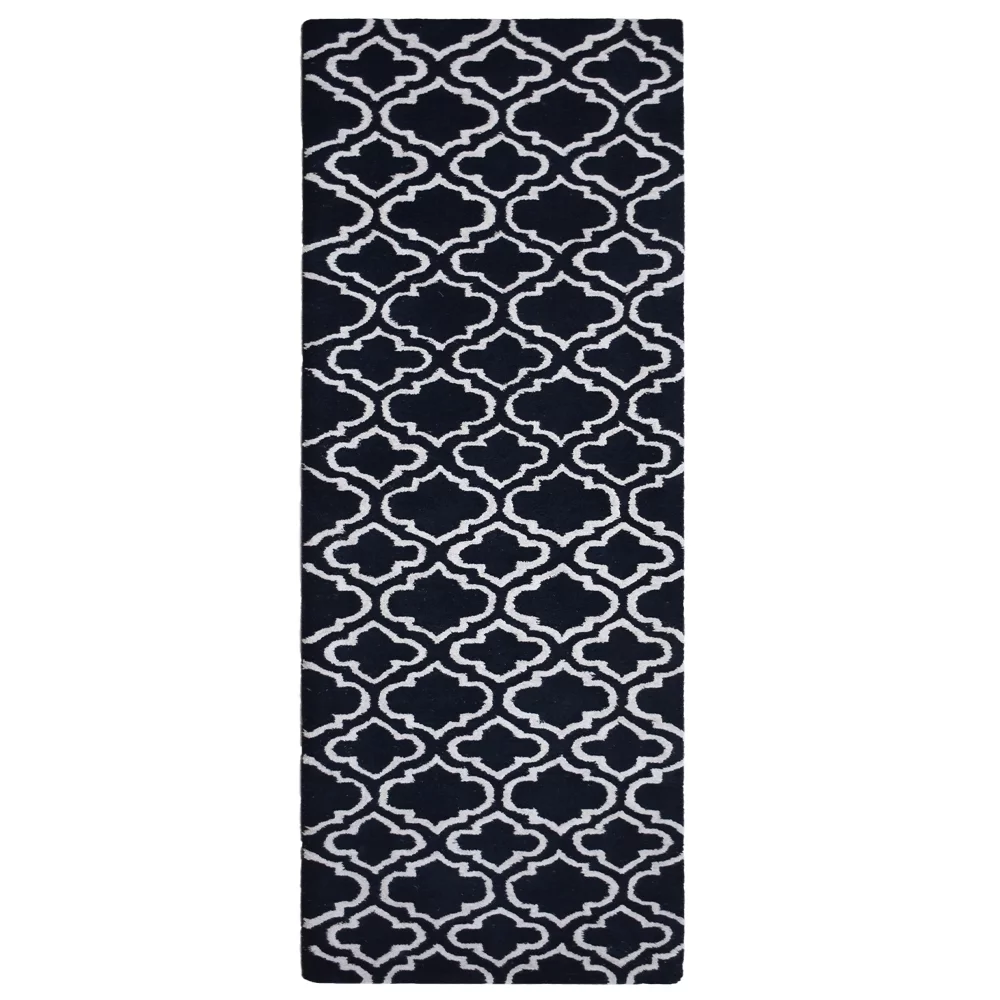 Rugsotic Carpets Hand Tufted, Geometric Wool Runner Area Rug, Black,White, 2'6"x8'
