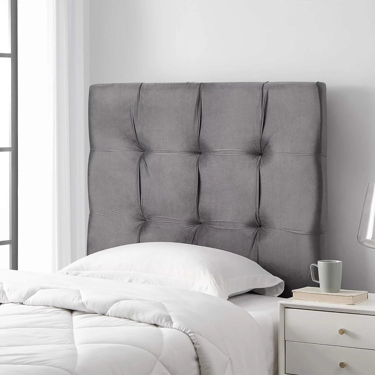 HBBOOMLIFE Tavira Allure® College Dorm Headboard - Tufted - Linen Gray