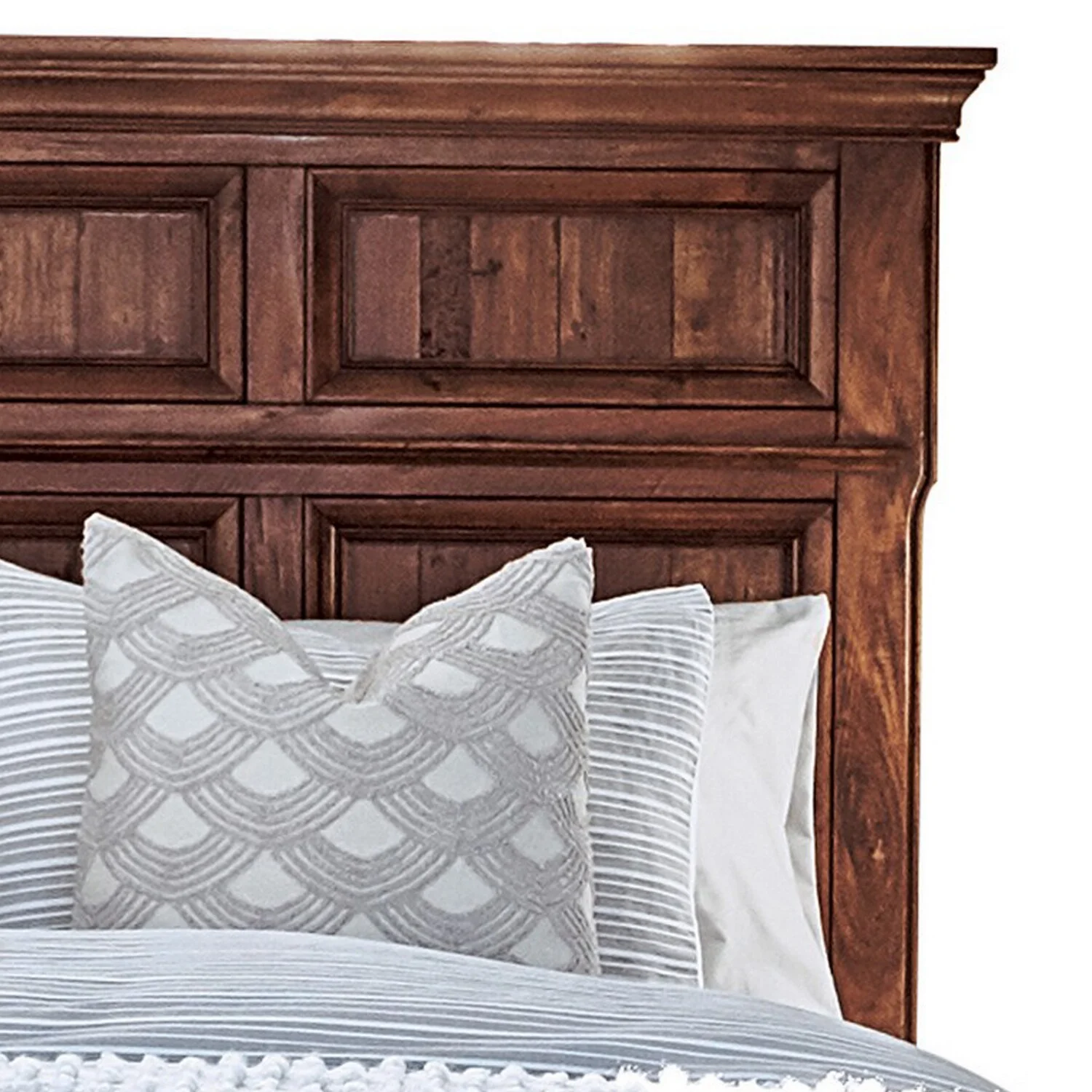 Benjara BM302792 Panel Headboard Crown Molded Trim Dan California King Size Bed, Brown