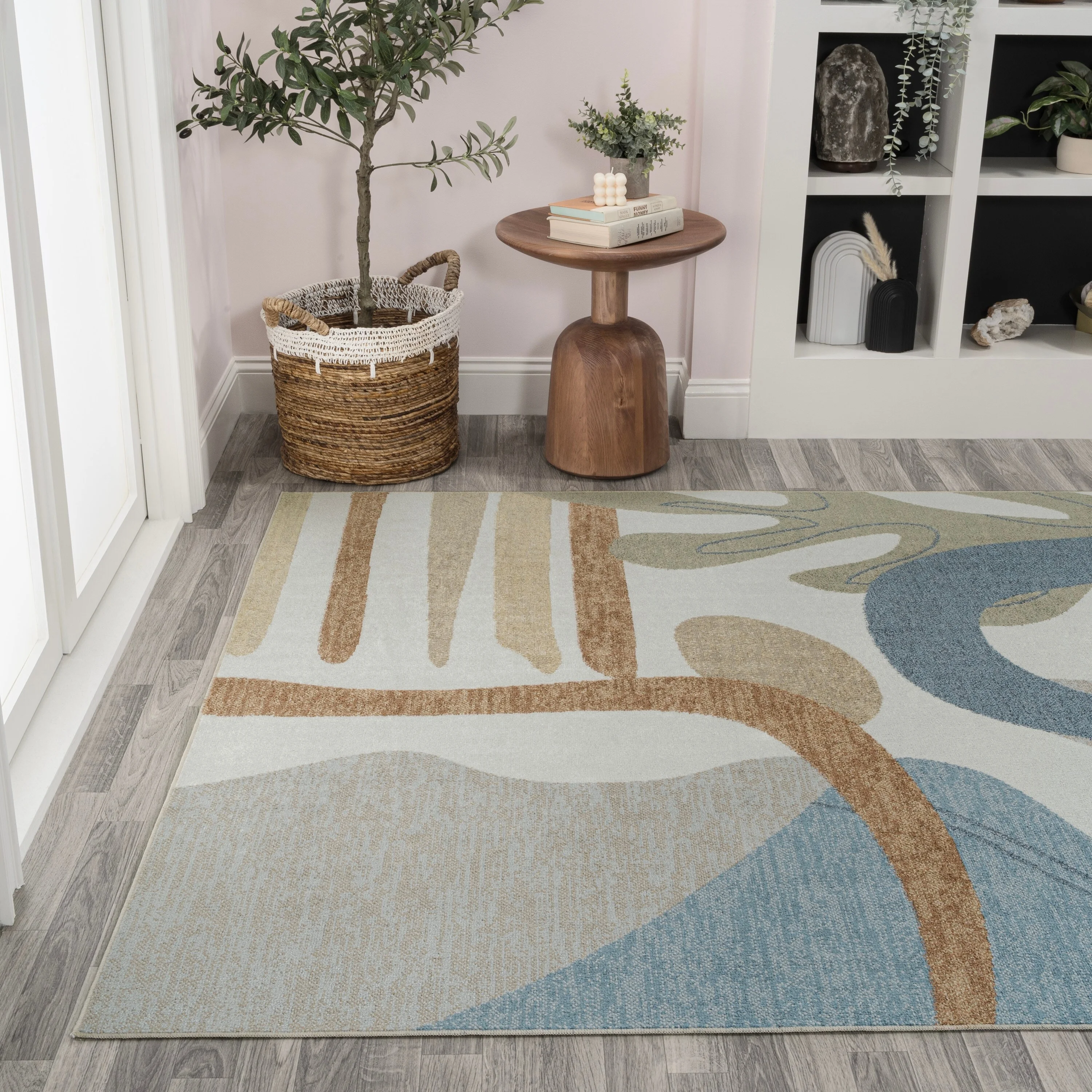 JONATHAN Y Weaver Abstract Glam Botanical Machine-Washable Cream/Multi Area Rug 4 X 6