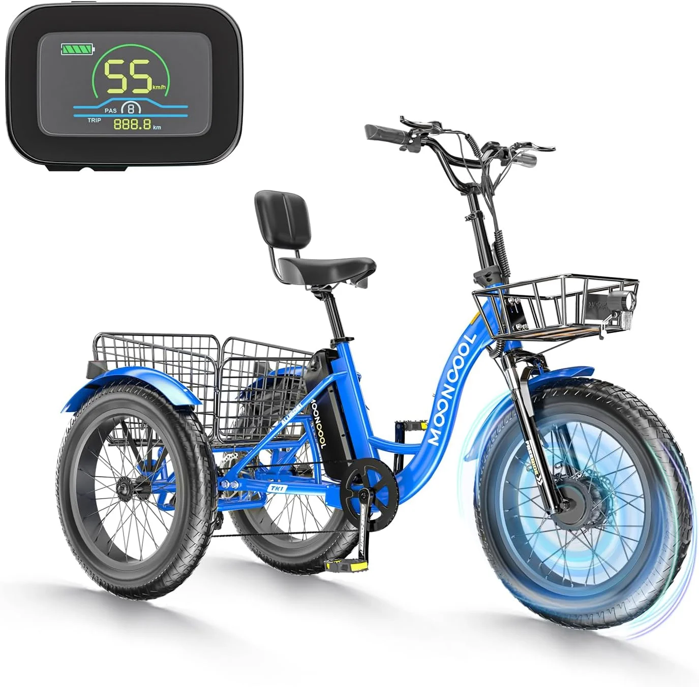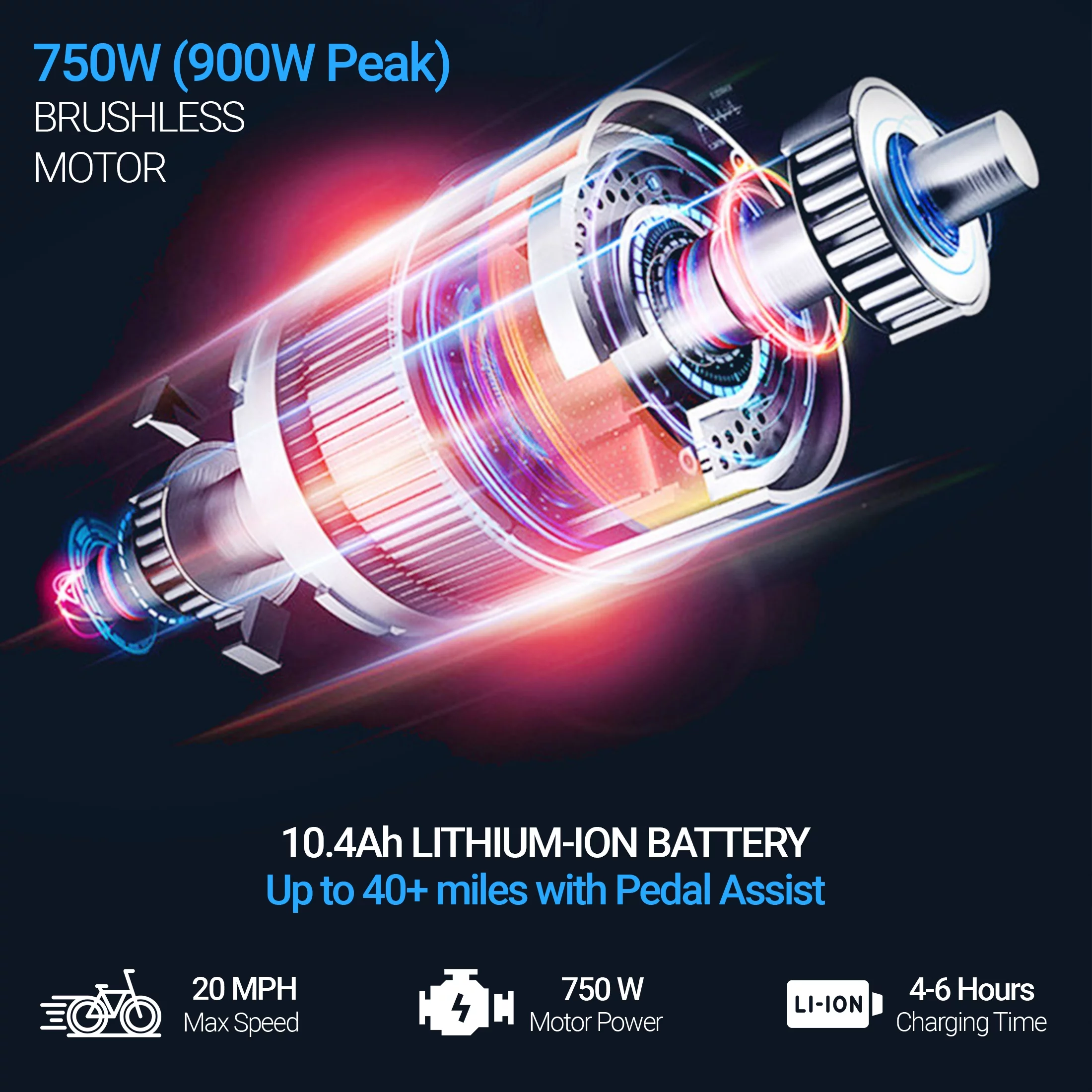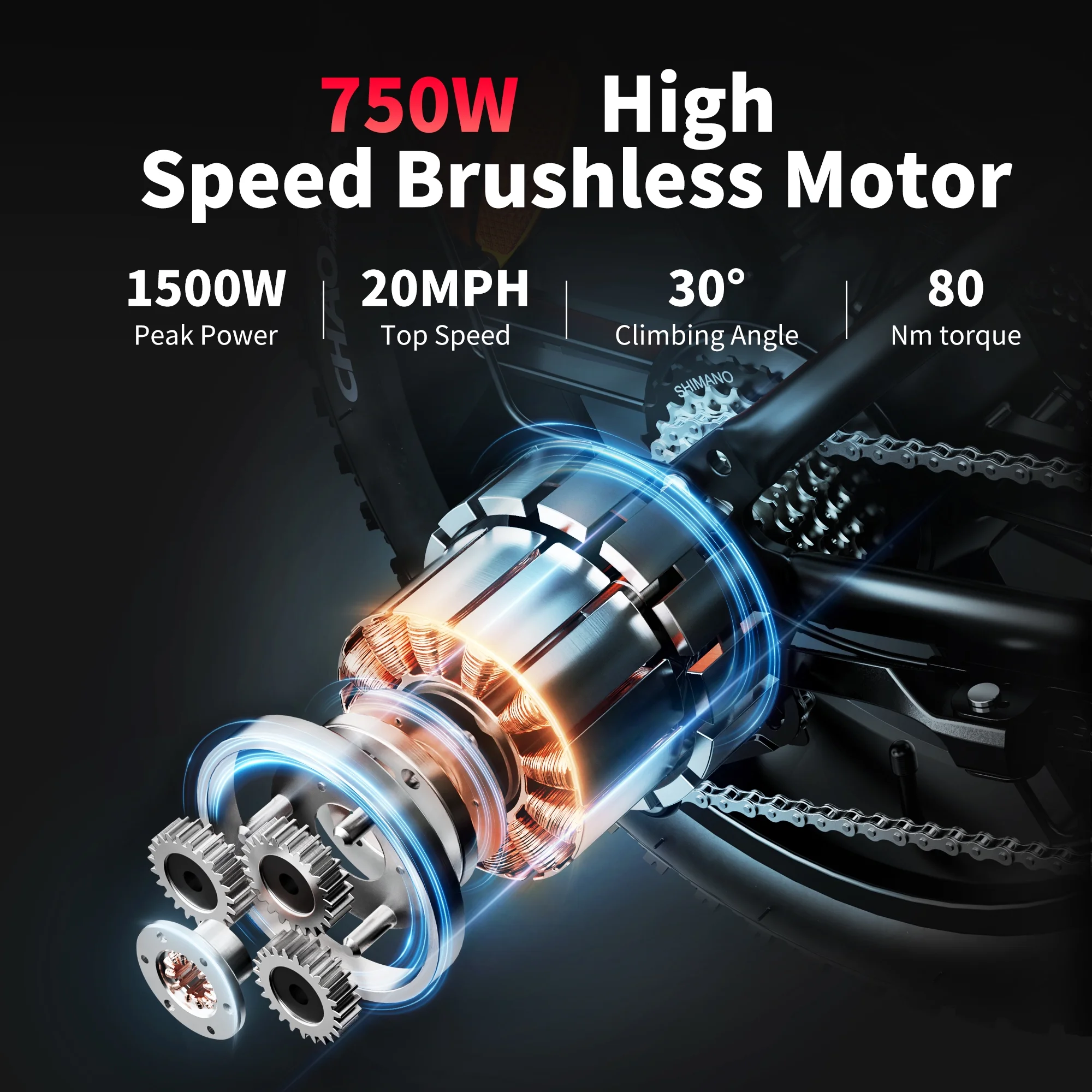 Electric Bike for Adults, 750W Motor 48V 15AH Removable Battery, 20" Tire Big Back Seat E-Bike with Pedal