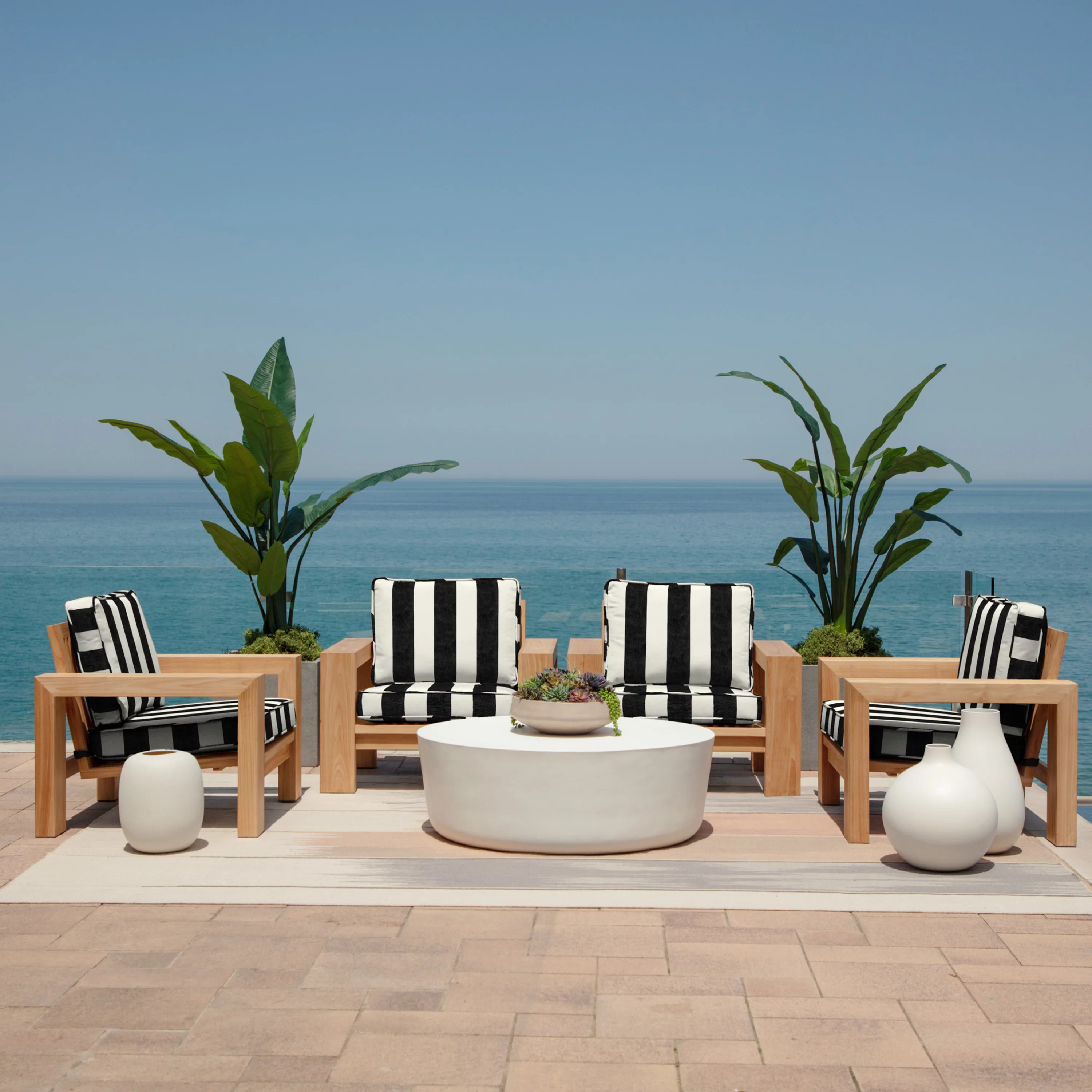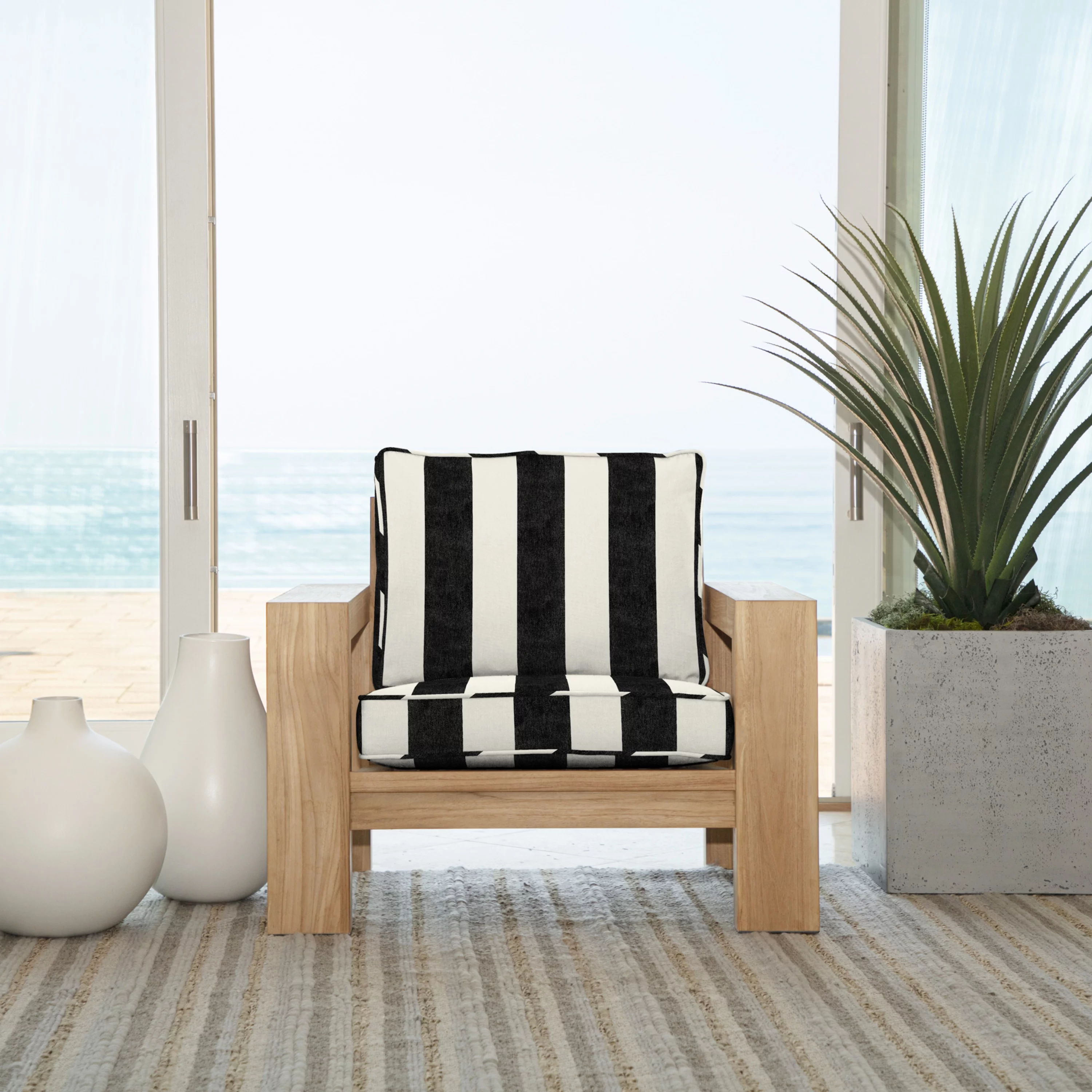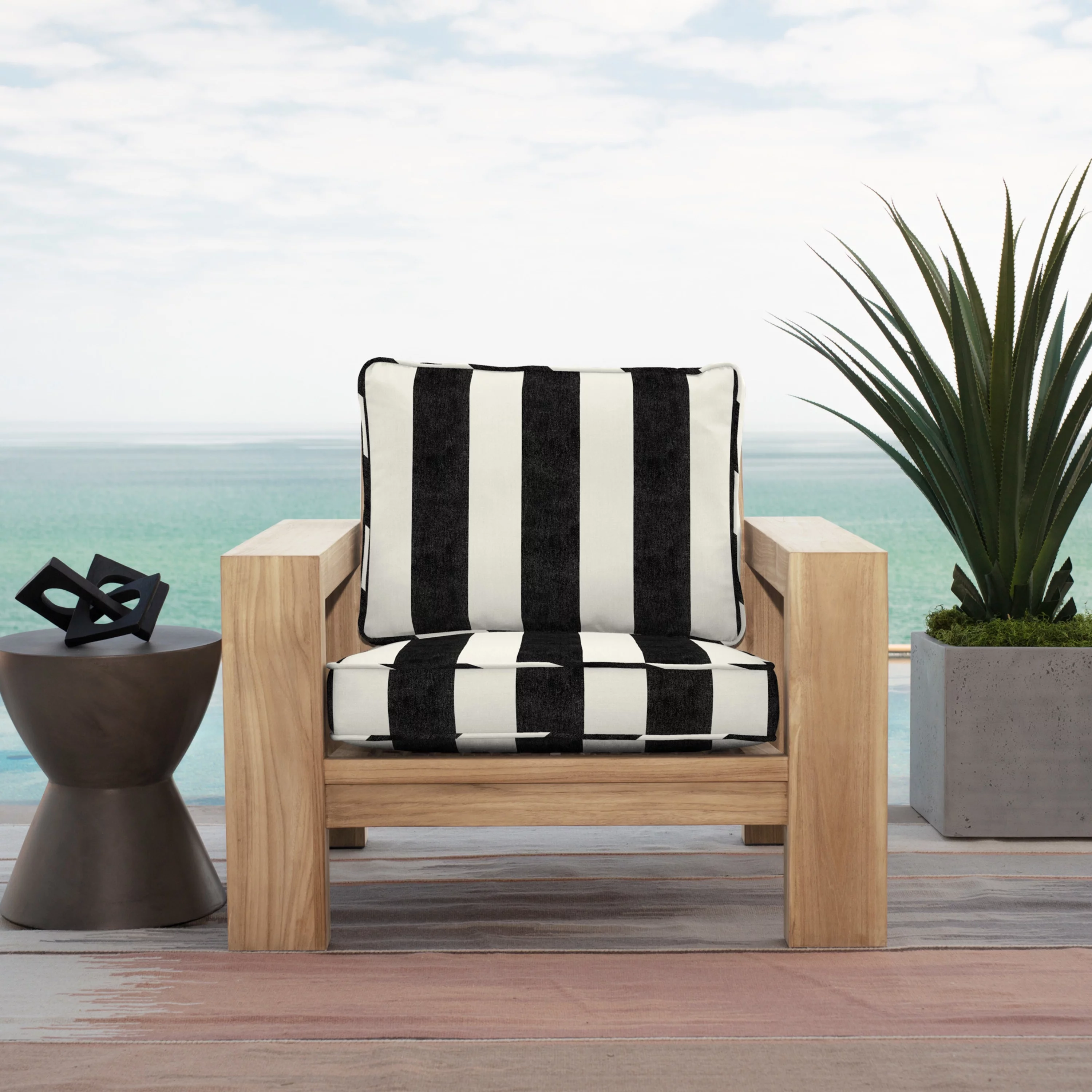 Arden Selections Oasis Outdoor Deep Seating Cushion Set 24 x 24, Onyx Black Cabana Stripe