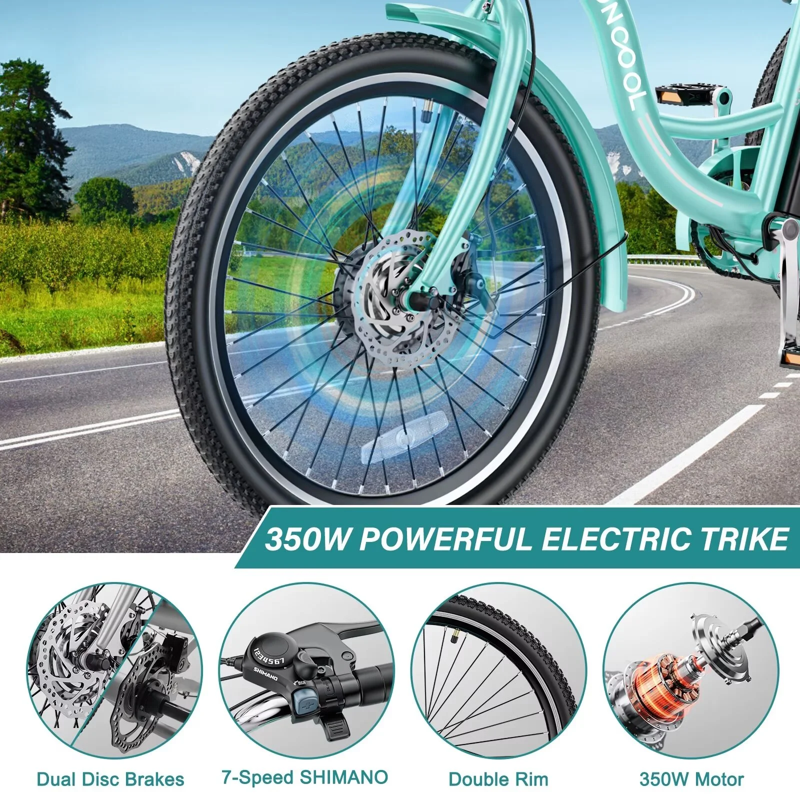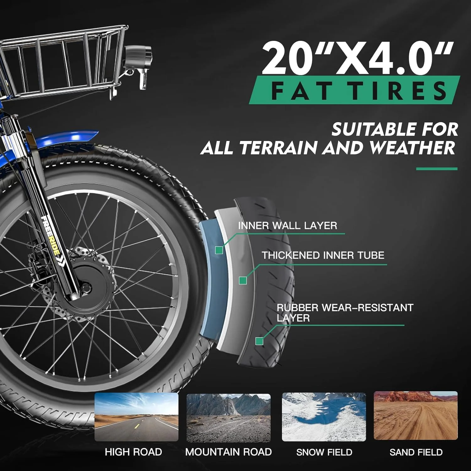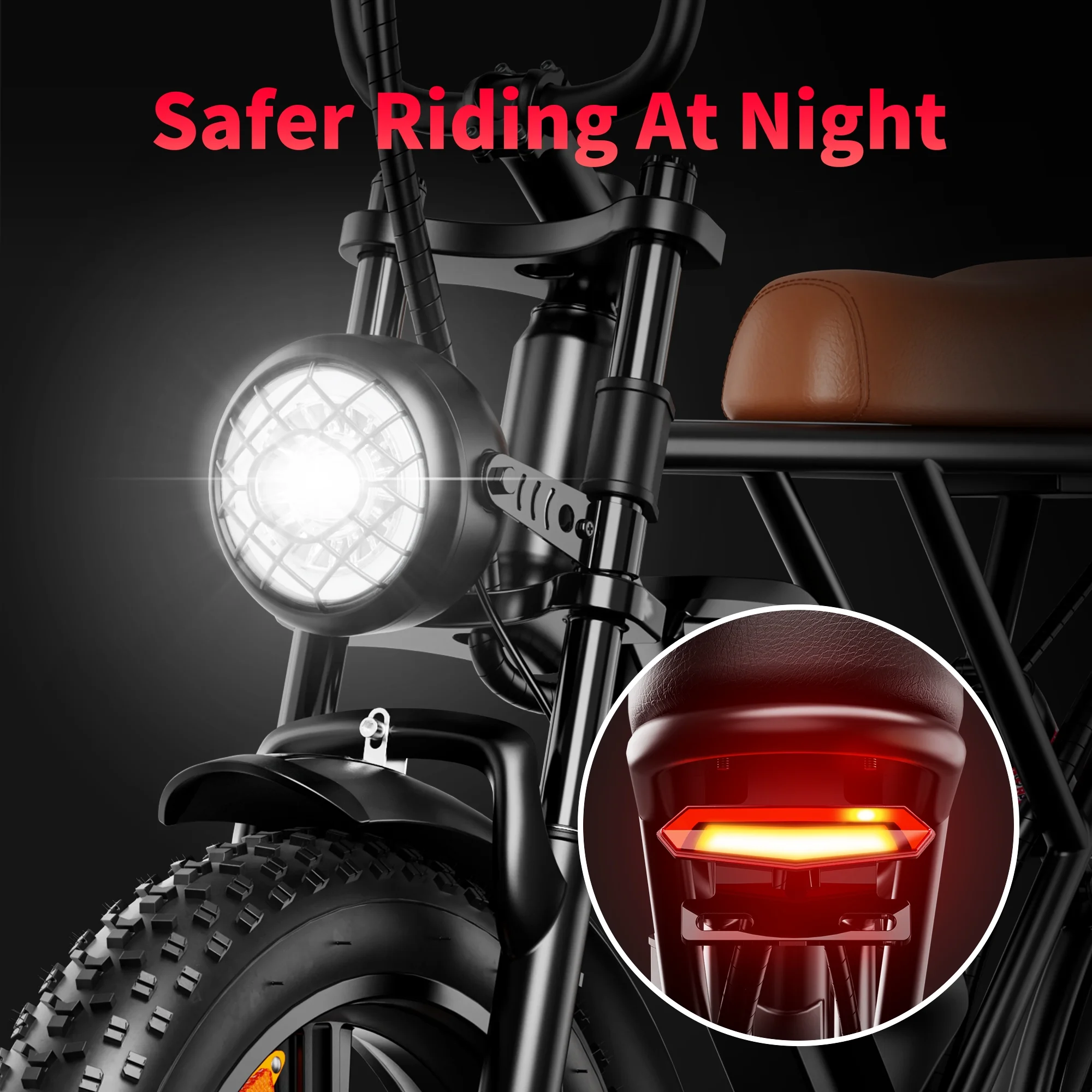 AMYET Electric Bike Adult E Bike E Bicycle Brown UL2849 48V/20Ah Dual Suspension 20" Fat Tire 20MPH & 68 Miles