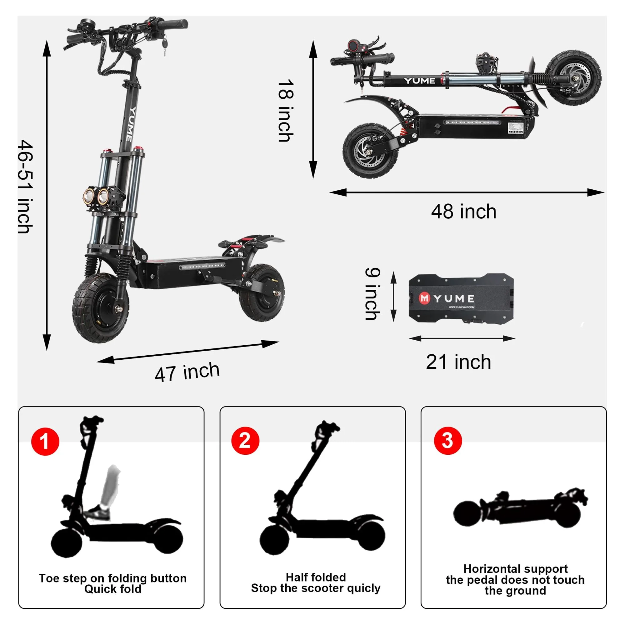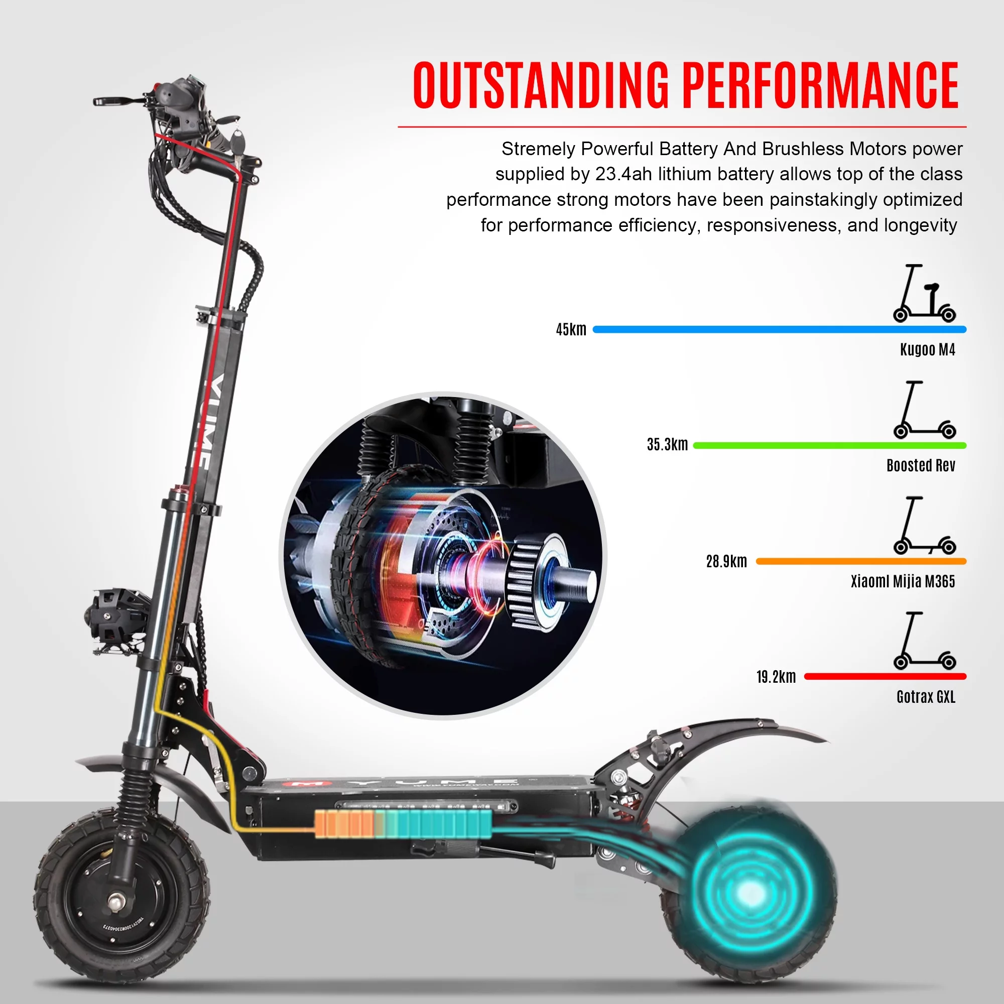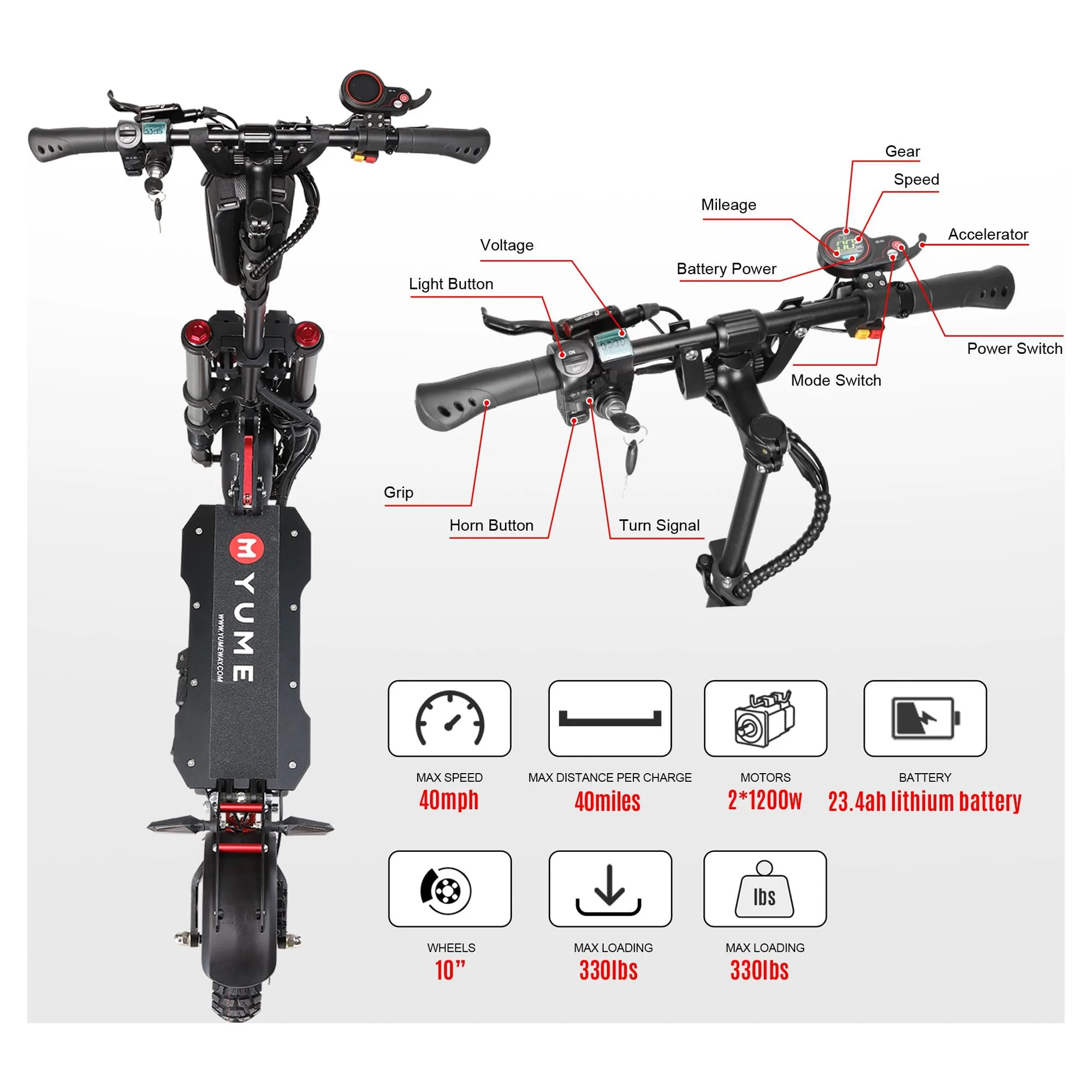 M YUME SCOOTER Y10 Electric Scooter for Adults 2400W 40 Miles 40 mph, Overall size: 1180*230*1380mm