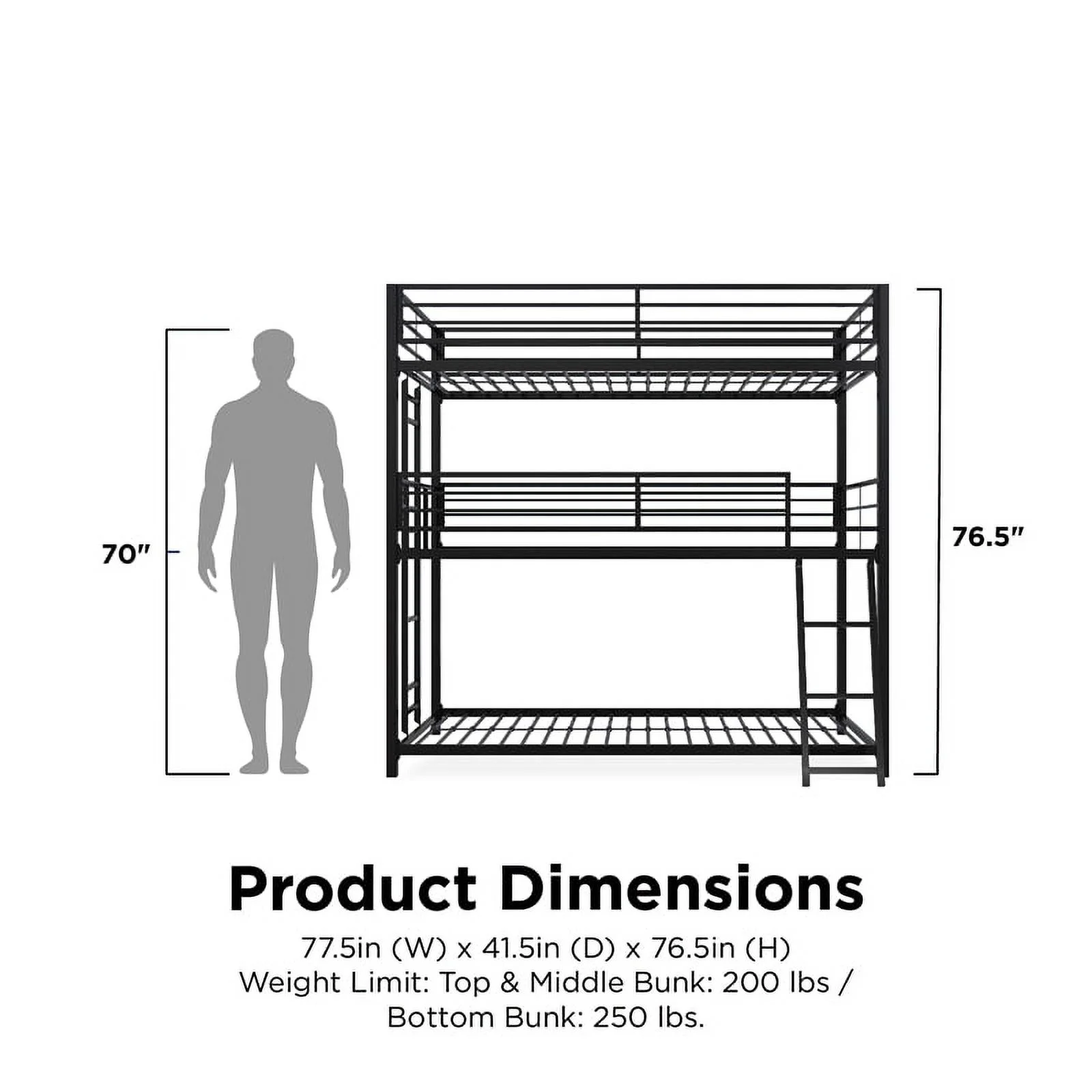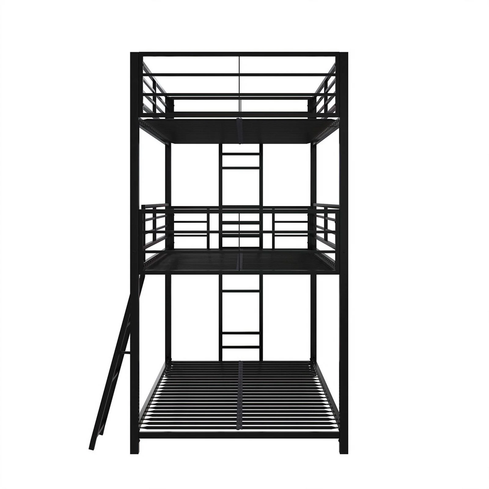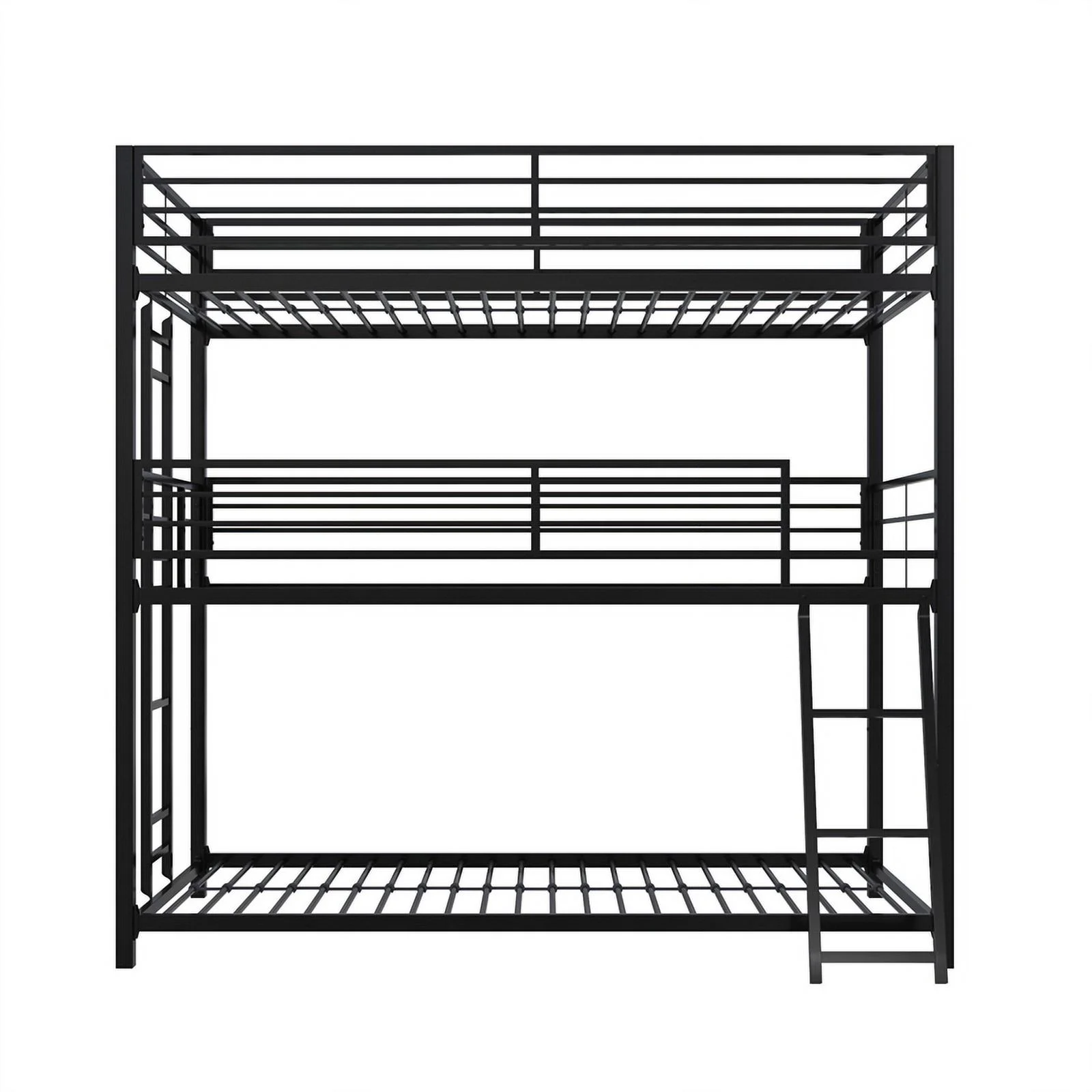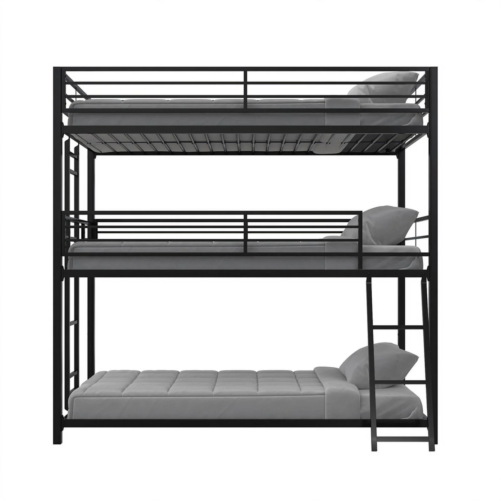 Pemberly Row Modern Steel Metal/Wood Triple Twin Bunk Bed in Sand Black