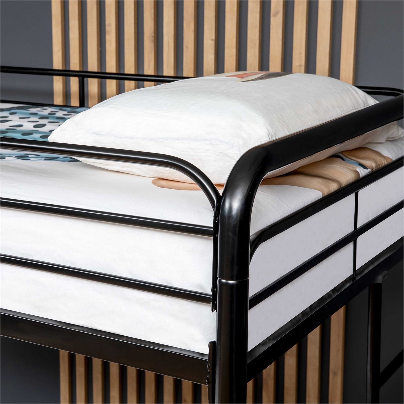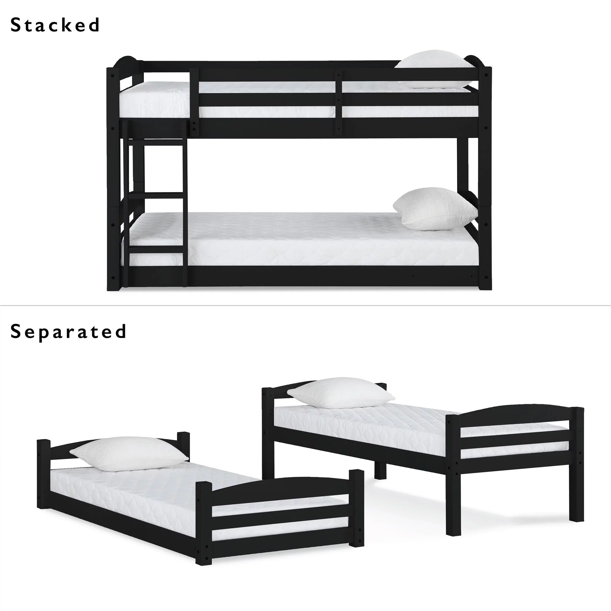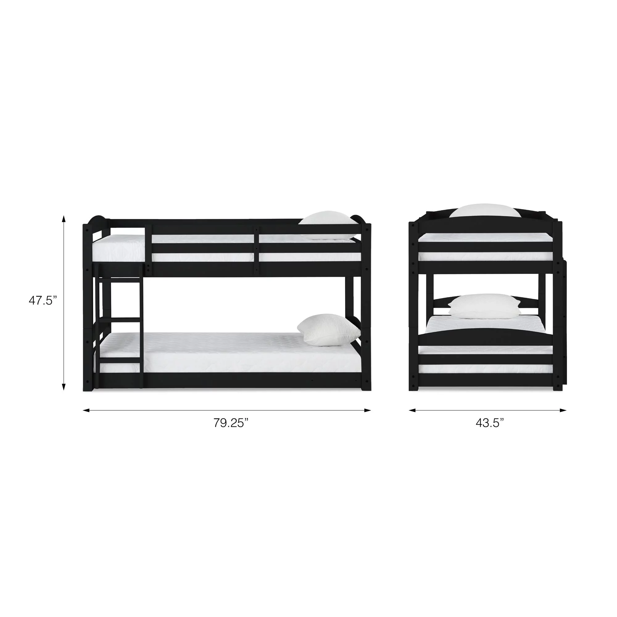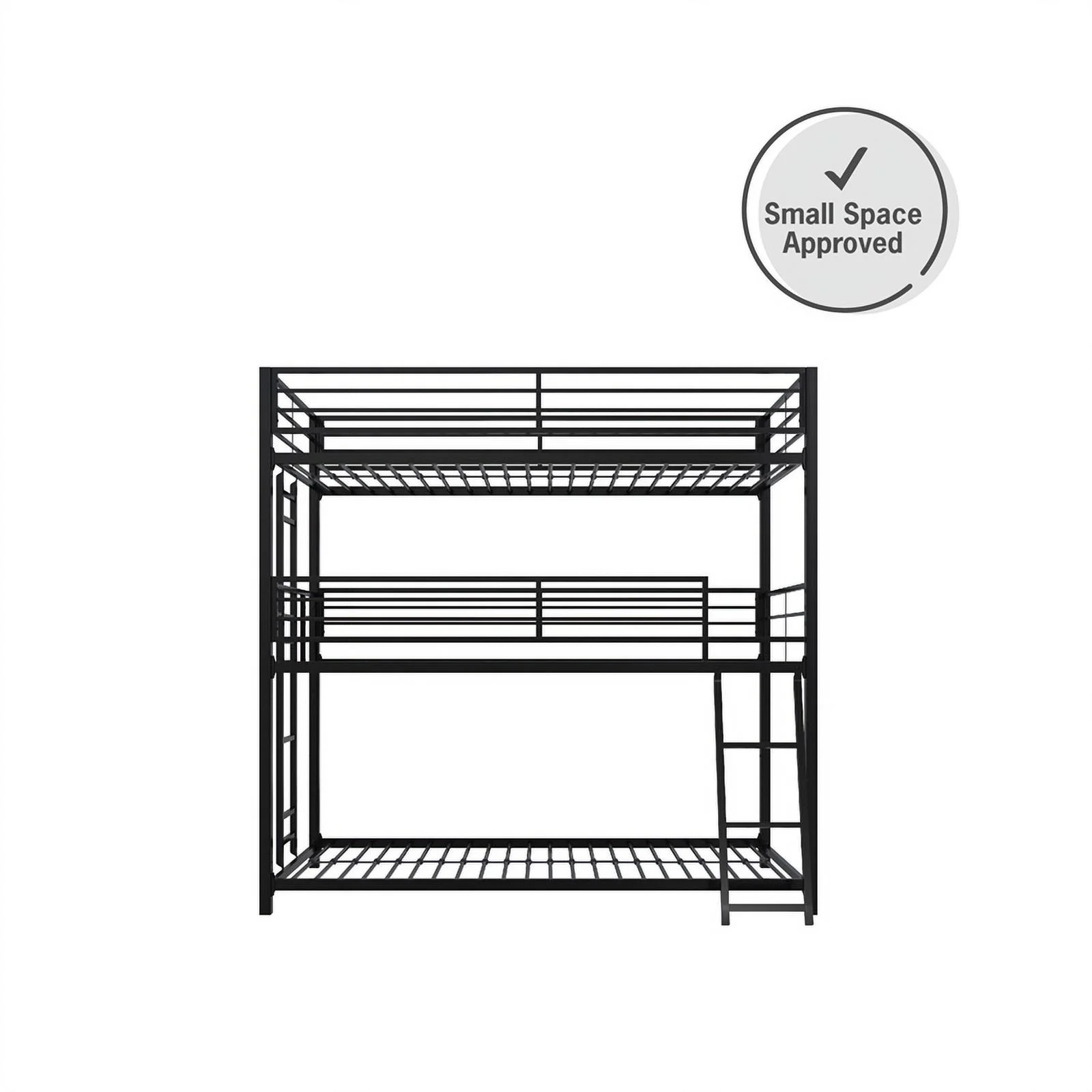 Pemberly Row Modern Steel Metal/Wood Triple Twin Bunk Bed in Sand Black